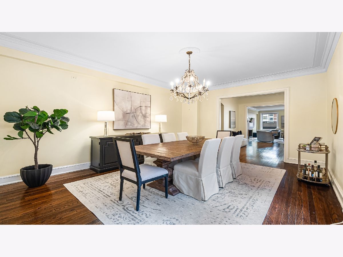 Set within a classic 1923 cooperative building in the heart of Streeterville, just steps from Chicago's Magnificent Mile, this beautifully maintained residence blends vintage character with thoughtful updates. A gracious reception hall welcomes you into a warm and inviting living room-perfect for both entertaining and everyday living-while the formal dining room offers an elegant setting for gatherings and special occasions. The kitchen combines function and style with stainless steel appliances, ample cabinetry, and space for a cafe table, along with the convenience of an in-unit washer and dryer. Originally designed as a four-bedroom floor plan, the sellers thoughtfully combined two smaller bedrooms near the kitchen to create a more spacious bedroom. This space can easily be converted back to two separate bedrooms with the addition of a drywall partition, offering flexibility to suit your needs. The spacious primary suite is filled with natural light and features abundant closet space, along with a bath complete with a large walk-in shower. The second bedroom is also spacious with custom built-ins and an en-suite, while the third bedroom serves as a quiet office or study. With its classic character, generous layout, and unbeatable location, this is a rare opportunity to enjoy the best of city living in a truly timeless home.