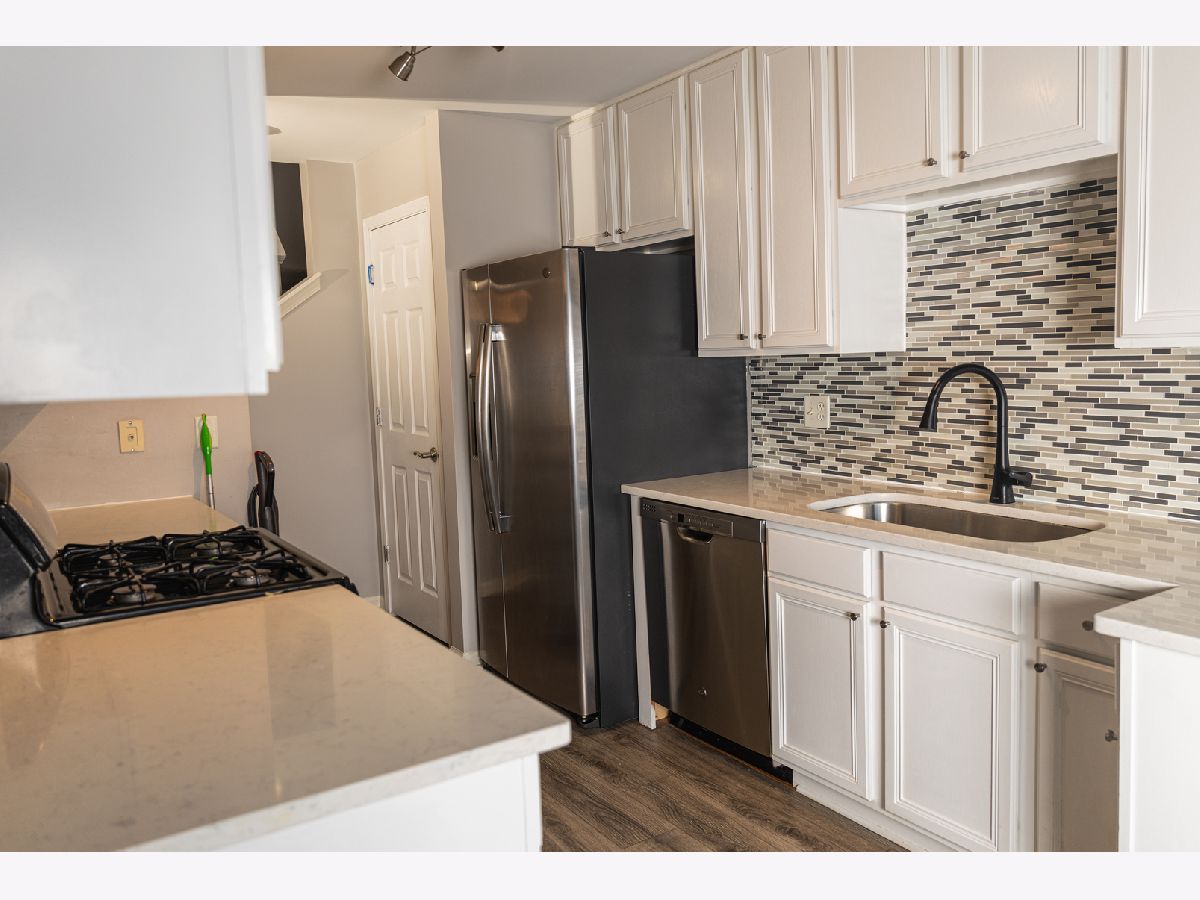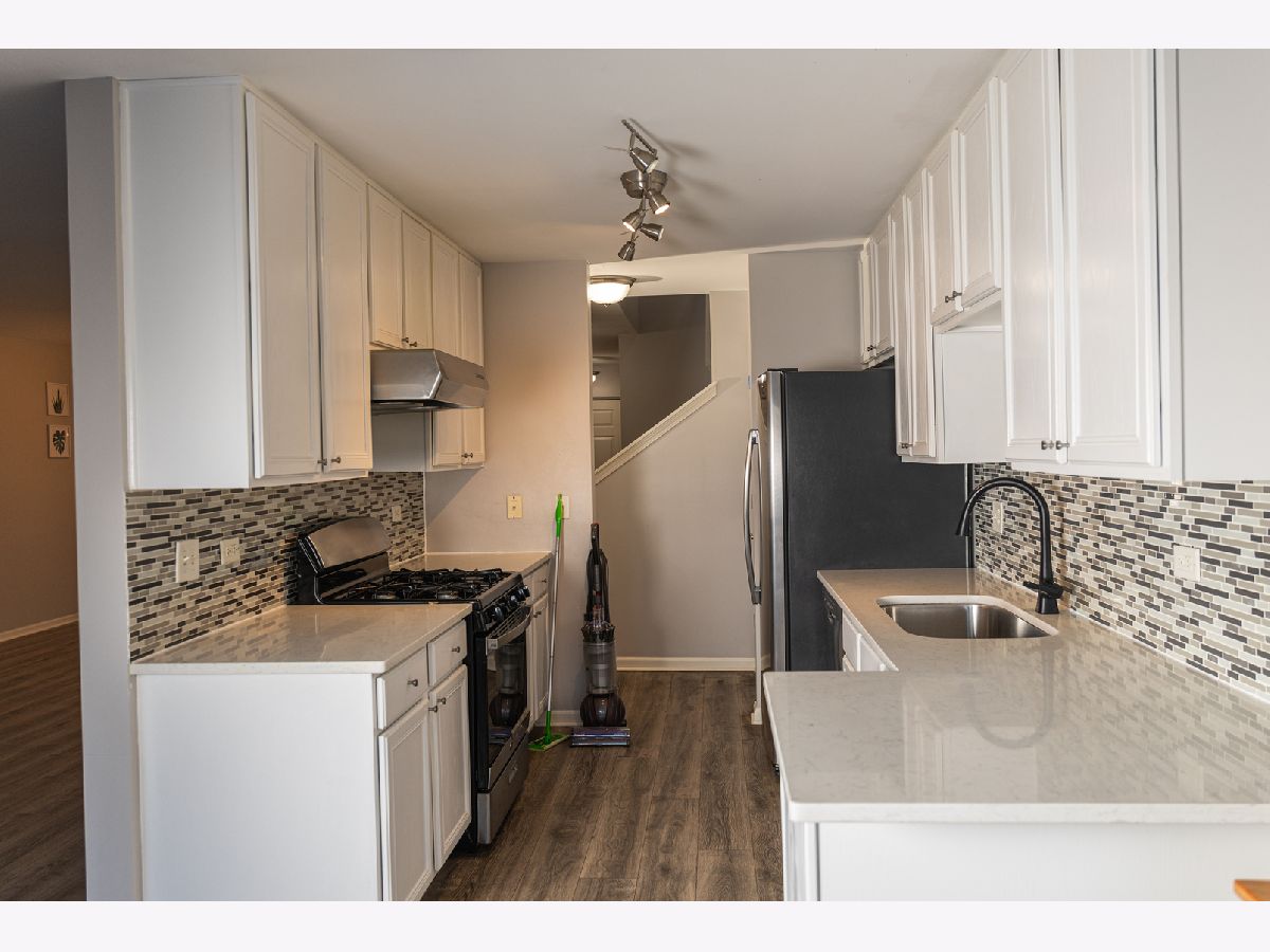Well-maintained three-level townhouse with open floor plan, water-resistant flooring, fireplace, and two sliding doors to a newer balcony. Fresh paint and an updated kitchen featuring white cabinetry, quartz countertops, and stainless steel appliances. Second floor offers new carpet, a spacious primary suite with vaulted ceiling, double vanity, separate tub and shower, plus two additional bedrooms. Finished walkout basement provides additional living space. Walking distance to downtown Palatine, Metra, shopping, and dining.