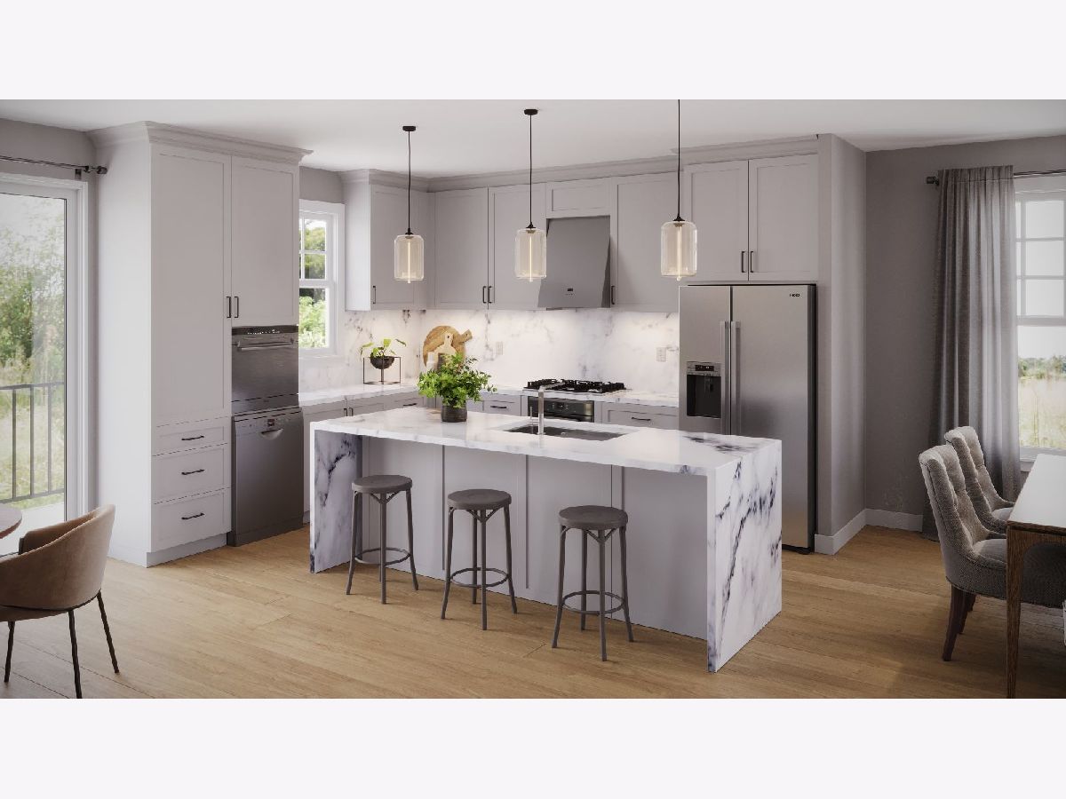 Welcome to this exquisite One-of-a-Kind new construction semi-custom townhome. Located within the #1-rated STEVENSON High School District 125 AND District 103 Top-rated elementary/middle schools!!!. Prairie Pointe townhomes where luxury meets functionality in a highly desirable location.The low-maintenance,attractively landscaped grounds with a private patio for meals or gatherings ( or even just a little solo relaxation ) under the open sky. You will savor pleasant weather days from your vantage point on the breezy balcony. This stunning residence offers 4 spacious bedrooms and 3.1 bathrooms, each crafted with thoughtful design and high-quality finishes for elevated living. Step inside to find a beautifully designed open-concept floor plan with hardwood flooring throughout that flows seamlessly from room to room. The gourmet kitchen is a chef's dream, featuring stainless steel appliances, quartz countertops, and 42-inch custom cabinets, creating an ideal space for both daily life and entertaining. The living room is a natural light-filled space perfect for lounging with your family. Retreat to the sophisticated ensuite primary bedroom, conveniently located is well designed and spacious. In addition to the convenience of the private bathroom, you will find ample closet space to let your wardrobe breathe. The exterior of the property features stunning curb appeal, with sidewalks and tree-lined streets that provide a tranquil setting. This home is ideal for families seeking both quality and convenience. The location offers easy commute to the Metra train, along with nearby shopping and a variety of fine dining options. This property is a gateway to a dynamic lifestyle and functionality, embodying the best of semi-custom craftsmanship in a top-tier community.