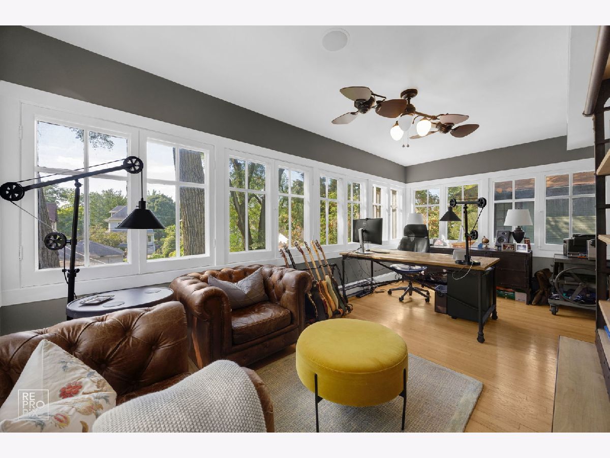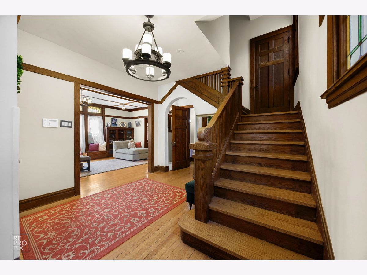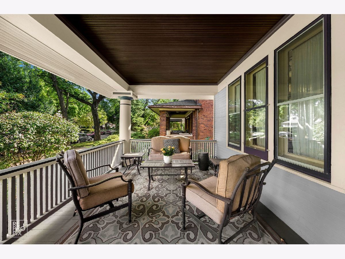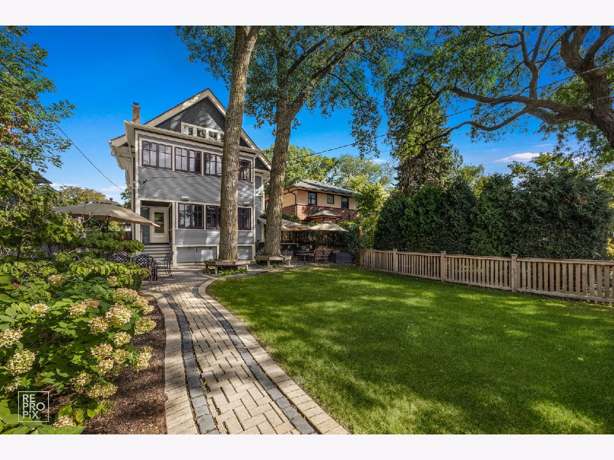 Welcome to the William H. Preston House, a 1908 architectural treasure designated as a historical landmark by The Historical Society of Oak Park and River Forest, and lovingly updated for modern living. Located in the heart of downtown Oak Park-just steps from the L train, the farmers' market, the recreation center, and some of the area's best schools-this home blends timeless craftsmanship with 21st-century amenities. This estate-sized residence reflects Craftsman/early-Prairie influence, with a broad front porch perfect for morning coffee or evening entertaining. A rich Farrow & Ball exterior palette carries inside, where the entry hall showcases original millwork, a carved staircase, and leaded glass windows that cast shimmering light across hardwood floors. The bright living room features oak bookcases, millwork accents, and a bank of leaded-glass windows. Beyond its period elegance, it doubles as a 7.1 channel home theater with audiophile-grade speakers integrated into the coffered ceiling, hidden AV rack, and multi-zone audio extending across all three levels and into the backyard. The dining room is ideal for entertaining, encircled by oak moldings and anchored by a magnificent built-in sideboard with leaded-glass doors. A salvaged Craftsman light fixture and adjacent butler's nook with oak bar add character. Off the kitchen, a sun-filled multipurpose room offers backyard views and flexible use as family room, breakfast nook, or playroom. The updated kitchen balances historic and modern, with original glass-front cabinetry, marble tile backsplash, stone counters, and professional-grade appliances. A half bath with period fixtures completes the main level. Upstairs, the quartersawn oak staircase leads to four generous bedrooms, a bonus room/office, and a remodeled full bath. Each bedroom has hardwood floors, high ceilings, large windows, and ample closets. The bath blends vintage style with modern upgrades: marble basketweave floor, subway wainscot, double pedestal sinks, and exposed thermostatic shower. A rear multipurpose room with wall-to-wall windows is ideal as an office or artist's studio. The third floor is a fully renovated retreat with primary suite, office (or sixth bedroom), laundry, hardwood floors, and custom Amish cabinetry. The primary bedroom features treetop views and built-in cabinetry. Dual walk-in closets with custom storage lead to a spa bath with clawfoot tub, frameless glass shower, rain-head, and stone-topped double vanity. Matching cabinetry continues into the office, offering both function and beauty. Hidden knee-wall storage adds practicality. The basement includes a laundry room with chute, workshop/storage, gym, bathroom, and a family room with a second home theater setup. A walkout provides direct access to the outdoor kitchen, creating seamless indoor-outdoor entertaining. Modern updates include multi-zone heating and cooling, new plumbing, updated electrical panels, spray-foam insulation, and a new roof and gutters (2024). Outdoors, the professionally landscaped backyard is a private oasis with mature trees, multiple gathering spaces, and a bespoke outdoor kitchen featuring a built-in sink with hot/cold water, refrigerator, three-tap kegerator, and natural-gas grill with side burner. The William H. Preston House is a rare Oak Park offering: a historic landmark with unmatched character, expanded by thoughtful renovations and every modern convenience.