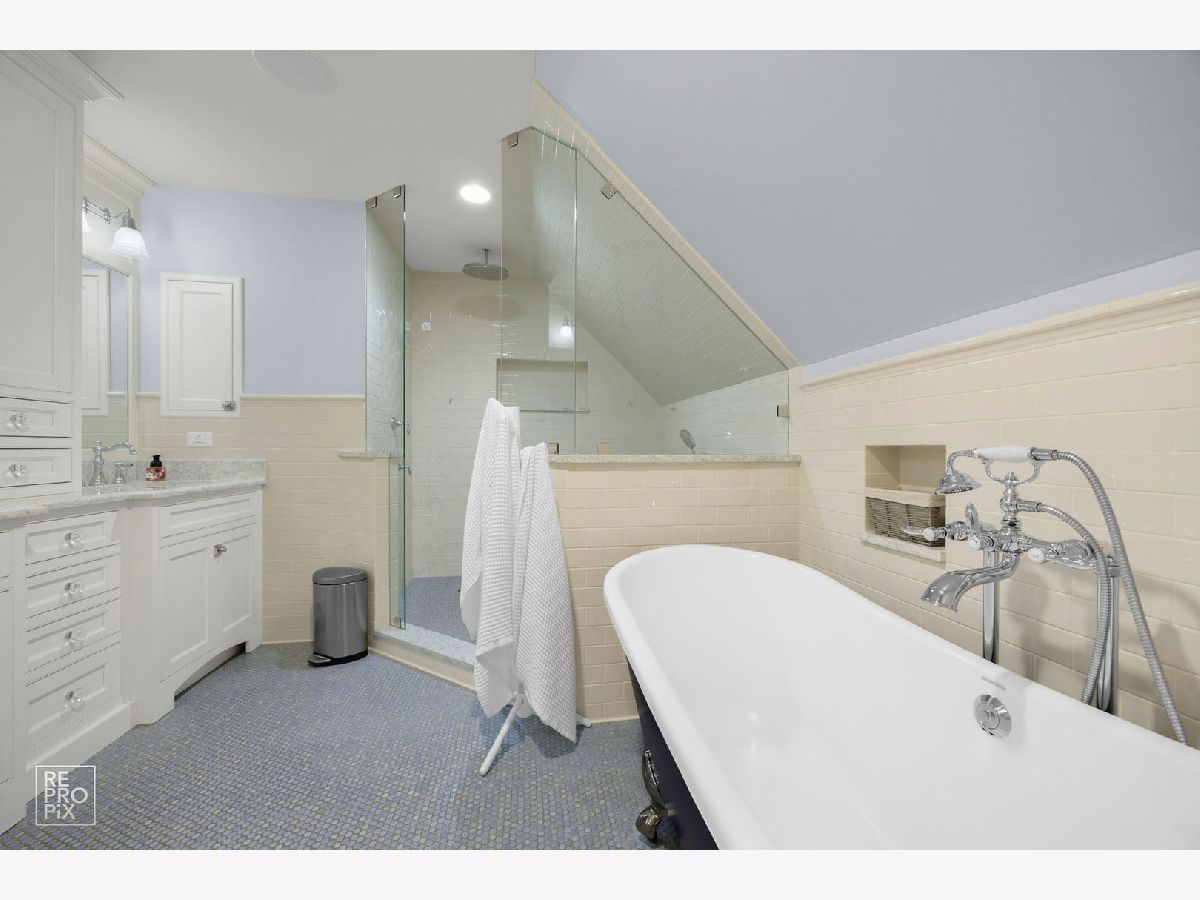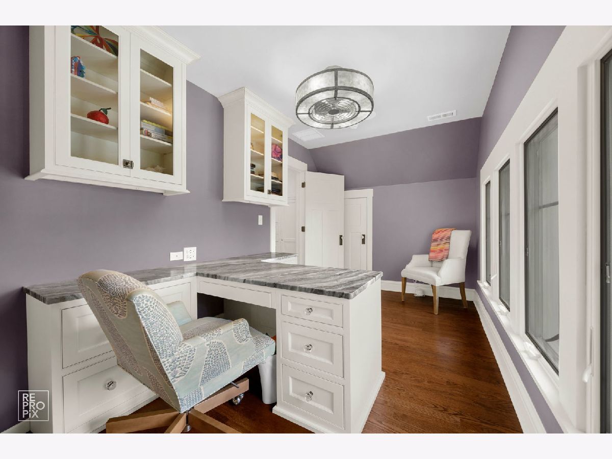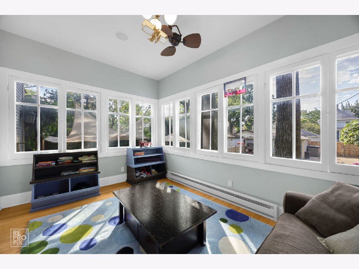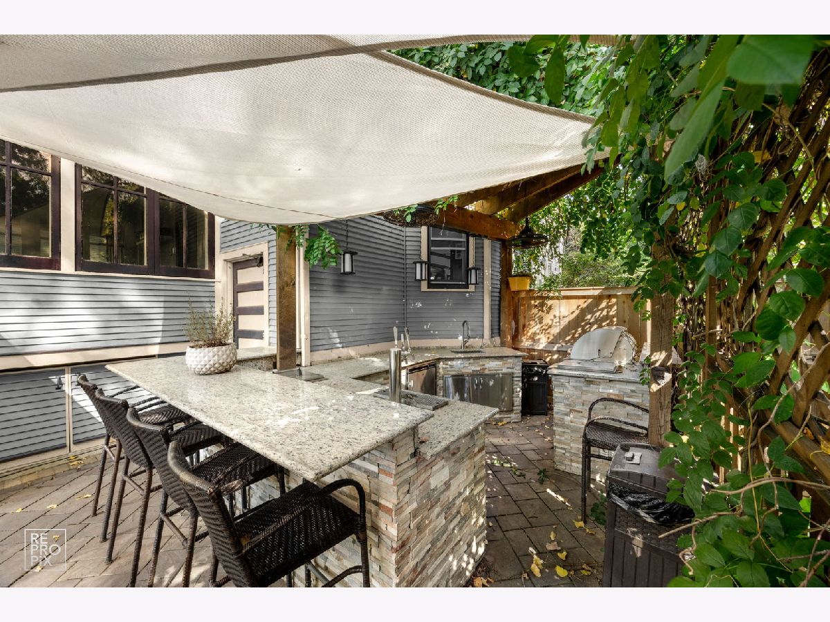 Welcome to the William H. Preston House, a 1908 architectural treasure designated as a historical landmark by The Historical Society of Oak Park and River Forest, and lovingly updated for modern living. Located in the heart of downtown Oak Park-just steps from the L train, the farmers' market, the recreation center, and some of the area's best schools-this home blends timeless craftsmanship with 21st-century amenities. This estate-sized residence reflects Craftsman/early-Prairie influence, with a broad front porch perfect for morning coffee or evening entertaining. A rich Farrow & Ball exterior palette carries inside, where the entry hall showcases original millwork, a carved staircase, and leaded glass windows that cast shimmering light across hardwood floors. The bright living room features oak bookcases, millwork accents, and a bank of leaded-glass windows. Beyond its period elegance, it doubles as a 7.1 channel home theater with audiophile-grade speakers integrated into the coffered ceiling, hidden AV rack, and multi-zone audio extending across all three levels and into the backyard. The dining room is ideal for entertaining, encircled by oak moldings and anchored by a magnificent built-in sideboard with leaded-glass doors. A salvaged Craftsman light fixture and adjacent butler's nook with oak bar add character. Off the kitchen, a sun-filled multipurpose room offers backyard views and flexible use as family room, breakfast nook, or playroom. The updated kitchen balances historic and modern, with original glass-front cabinetry, marble tile backsplash, stone counters, and professional-grade appliances. A half bath with period fixtures completes the main level. Upstairs, the quartersawn oak staircase leads to four generous bedrooms, a bonus room/office, and a remodeled full bath. Each bedroom has hardwood floors, high ceilings, large windows, and ample closets. The bath blends vintage style with modern upgrades: marble basketweave floor, subway wainscot, double pedestal sinks, and exposed thermostatic shower. A rear multipurpose room with wall-to-wall windows is ideal as an office or artist's studio. The third floor is a fully renovated retreat with primary suite, office (or sixth bedroom), laundry, hardwood floors, and custom Amish cabinetry. The primary bedroom features treetop views and built-in cabinetry. Dual walk-in closets with custom storage lead to a spa bath with clawfoot tub, frameless glass shower, rain-head, and stone-topped double vanity. Matching cabinetry continues into the office, offering both function and beauty. Hidden knee-wall storage adds practicality. The basement includes a laundry room with chute, workshop/storage, gym, bathroom, and a family room with a second home theater setup. A walkout provides direct access to the outdoor kitchen, creating seamless indoor-outdoor entertaining. Modern updates include multi-zone heating and cooling, new plumbing, updated electrical panels, spray-foam insulation, and a new roof and gutters (2024). Outdoors, the professionally landscaped backyard is a private oasis with mature trees, multiple gathering spaces, and a bespoke outdoor kitchen featuring a built-in sink with hot/cold water, refrigerator, three-tap kegerator, and natural-gas grill with side burner. The William H. Preston House is a rare Oak Park offering: a historic landmark with unmatched character, expanded by thoughtful renovations and every modern convenience.