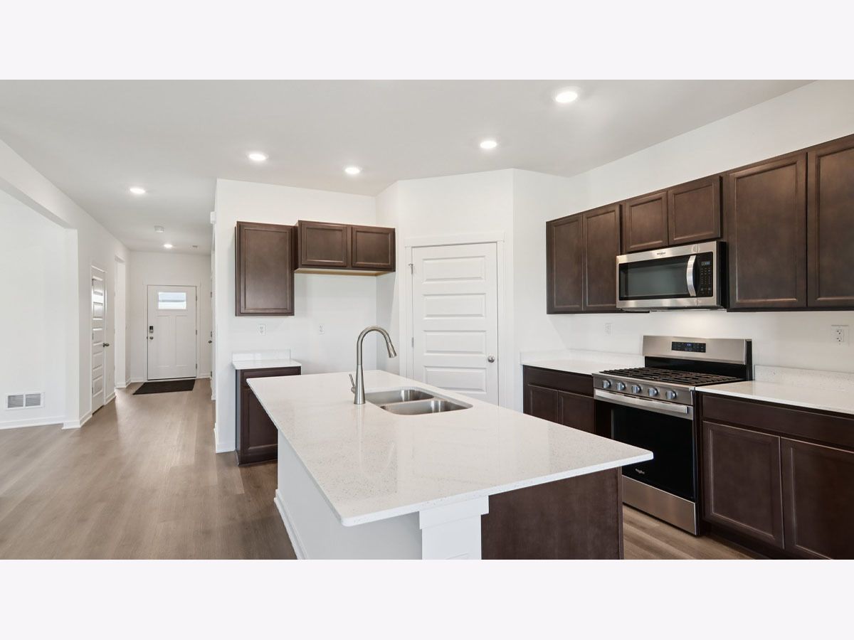 Envision yourself at 2295 Tupelo Way in Wonder Lake, Illinois, a beautiful new home in The Stonewater community. This ranch home is move-in-ready! Homesite includes a fully sodded yard that is maintained throughout the year. This Bristol plan offers 1,744 square feet of living space with a flex room, 2 bedrooms, 2 baths, 9-foot ceilings, and a partial basement. When you first enter the home, set off to side, you'll find a secondary bedroom and full hall bath tucked away for privacy. Walking past the HUGE storage closet, you'll come upon the open flex room, excellent for an office, game room, formal dining room, guest area or a hobby room. Down the hall, you will enter the open concept kitchen which anchors the Family and Dining areas. The kitchen layout includes a large island with an overhang for stools, quartz counter tops with a stainless steel undermount sink, stainless steel appliances, corner pantry and warm, designer cabinetry all complete with easy-to-maintain luxury vinyl plank. Off the kitchen you step outside onto your covered patio space to keep your entertainment alive inside and outdoors. Enjoy your private get away of your spacious primary bedroom in the back of the home complete with en suite bathroom featuring a raised height dual sink, quartz top vanity and walk in shower, and large walk-in closet. Our Chicago home includes our America's Smart Home Technology featuring Smart Home Features including video doorbell, Honeywell thermostat, Door Lock, Garage Door Opener, Deako smart light switches and an Amazon Echo Pop which allows you to monitor and control your home from the comfort of your sofa or far away from your smartphone. Impressive technology and efficiencies give you the most innovative home on the market including ERV furnace system and tankless water heater. Builder Warranty 1-2-10 is included. Photos are of a similar home. Actual home built may vary.