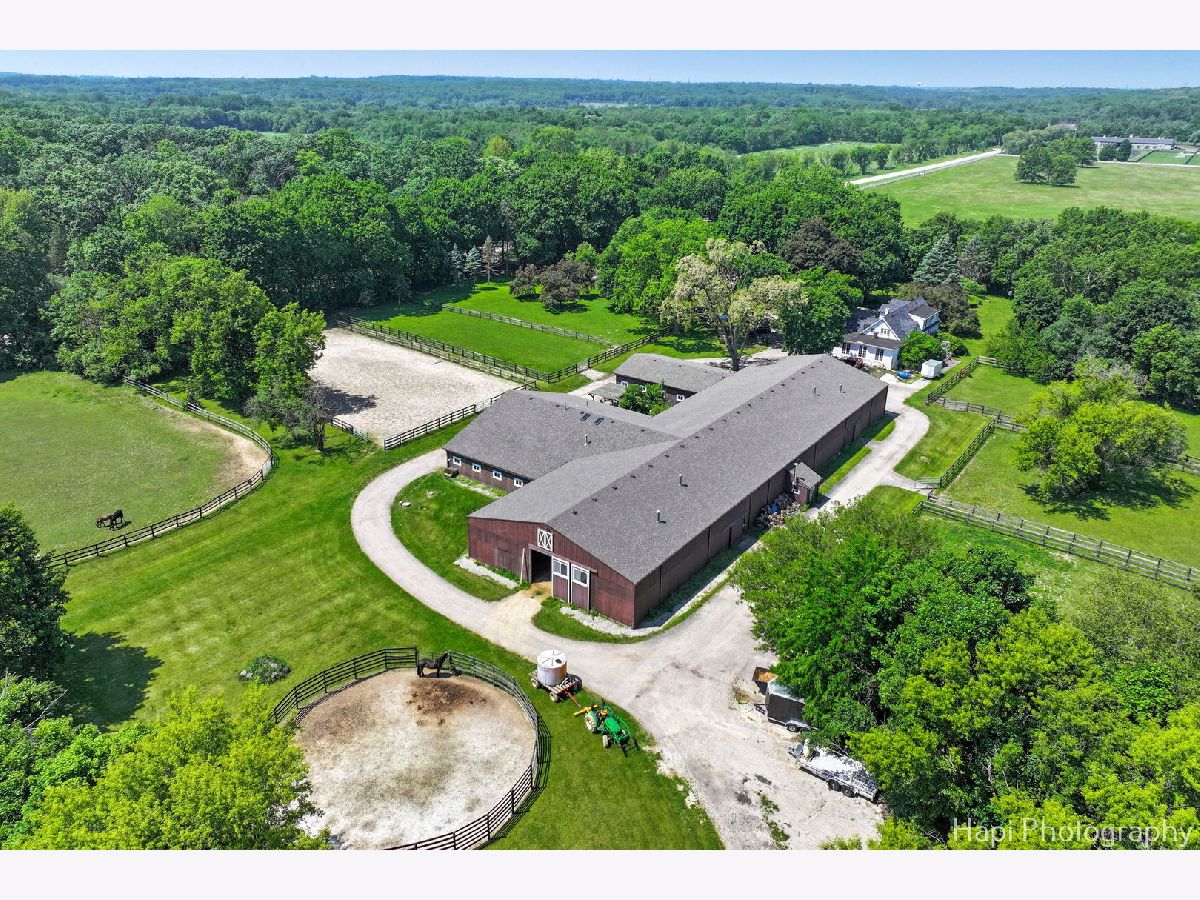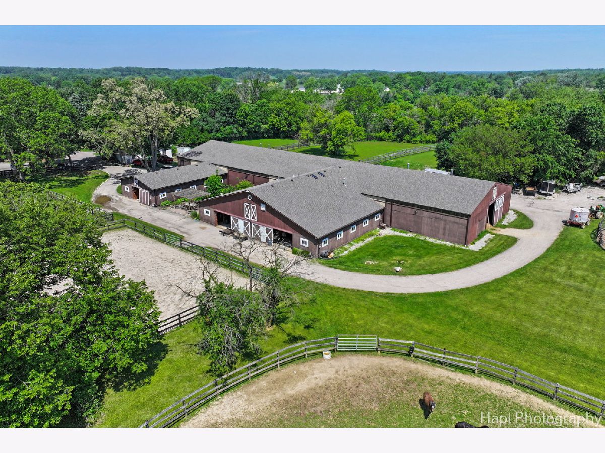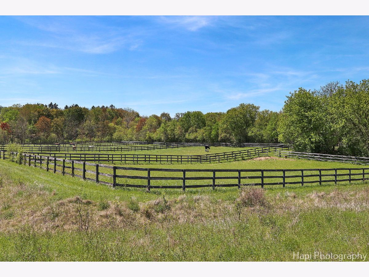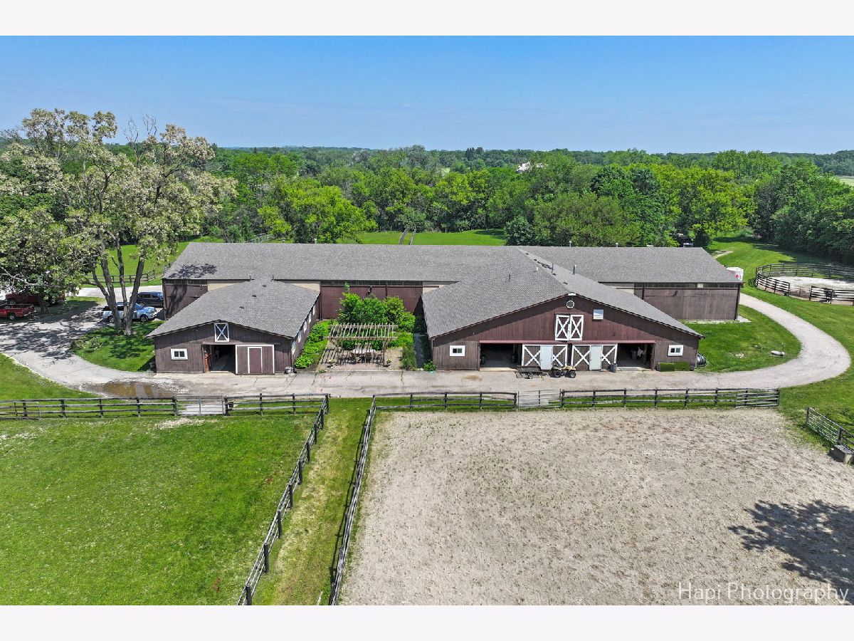 Welcome to Shamrock Farm, an exquisite 13.4-acre equestrian estate in the heart of Barrington Hills, where luxury living meets world-class equestrian facilities. Whether an owner or trainer, this is a horse enthusiasts dream and offers unparalleled amenities, breathtaking views, all in a prime location. The stunning main residence showcases classic Antebellum architecture & is a masterpiece of design & elegance. Featuring 10 foot ceilings throughout, a grand two-story spiral staircase, beautiful hardwood flooring throughout the main level, oversized 5 piece crown molding, custom Anaglypta wallcoverings enhance its timeless appeal & character. Perfect for entertaining - the custom kitchen is designed for both functionality & style, with SS appliances, double wall ovens, a spacious walk-in pantry, large butler's pantry & an oversized granite island with built in granite table. The kitchen is connected seamlessly to the expansive family room, dining room, and living room, creating the perfect setting for all types of gatherings. Working from home is a breeze in the exceptional library/home office. Conveniently located & private, creating a refined workspace with custom built-in book shelves & a stately fireplace beautifully crafted with custom surround wood. Enjoy morning coffee from the large screened in porch, the perfect retreat with serene views of the horse pastures. The second level features a sprawling primary suite with fireplace, two oversized walk-in closets, and a spacious ensuite bath. Four additional generously sized bedrooms, with plenty of closet space and ensuite baths, provide for the ultimate in comfort and privacy. A full attic with a staircase walk up offers endless possibilities & ready for expansion, can be converted into extra bedrooms, nanny quarters, or a fun kids retreat. Thoughtfully designed with a 9 foot deep pour, the full finished lower level is the perfect space for entertainment and recreation. Featuring a double sided fireplace, living room, a 14 foot bar with tap and sink, sauna, gym, full bath, and ample storage. The main house is supported by a whole house 50 kw gas generator and 2 other generators support the stable and coach house. Each level of 10' ceilings have been insulated, optimizing energy efficiency . With over 7500 SFT of living space, 5 custom designed fireplaces and 4 1/2 baths, this is truly a forever home. Extra company - no problem! The coach house has 2 spacious bedrooms and 2 full baths, a home office, a full kitchen, and an expansive family room and dining room. Ready for entertainment with a 25 x 13 deck and 3 car garage. Relax after riding and enjoy resort style outdoor living in the 48x28 heated in ground pool. Complete with fully equipped pool house, including kitchen, bathroom, dining and living area. Bring your horses home or expand your boarding facility! This beautiful property is completed by a 200x60 foot heated indoor arena with attached 22 stall barn. Both the arena and barns are insulated and heated. Turnkey with an apartment for grooms quarters, all mahogany viewing room with bathroom and office, courtyard, wash rack with hot water, 2 tack rooms, a feed room, kitchen with washer and dryer, 1 large outdoor arena and 11 turnout pastures all fenced for the safety and security of your horses. A rare find and an incredible complement to a beautiful home! This property is ideally located with breathtaking views of the surrounding countryside. Directly across the street from the nearly 250-acre Hill 'N Dale Preserve & nearby the sprawling 4,000 acres of Spring Creek Forest Preserve. Conveniently located close to I-90, shopping, restaurants, Metra & part of the award winning Barrington School District 220. Whether you're looking for a private equestrian retreat or an opportunity to expand a boarding & training business, Shamrock Farm offers the perfect blend of luxury, functionality, & natural beauty. Don't miss the chance to own this magnificent turnkey property.