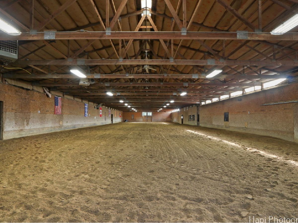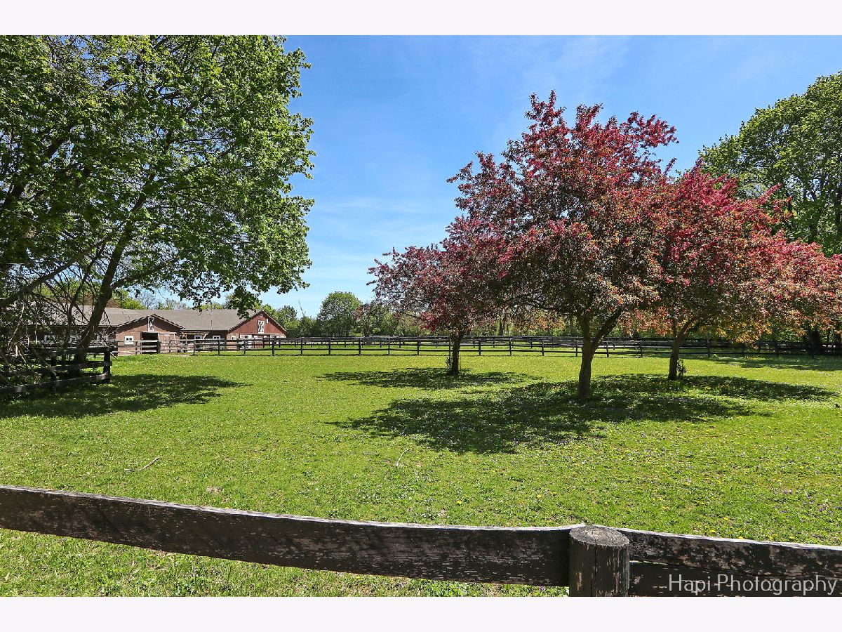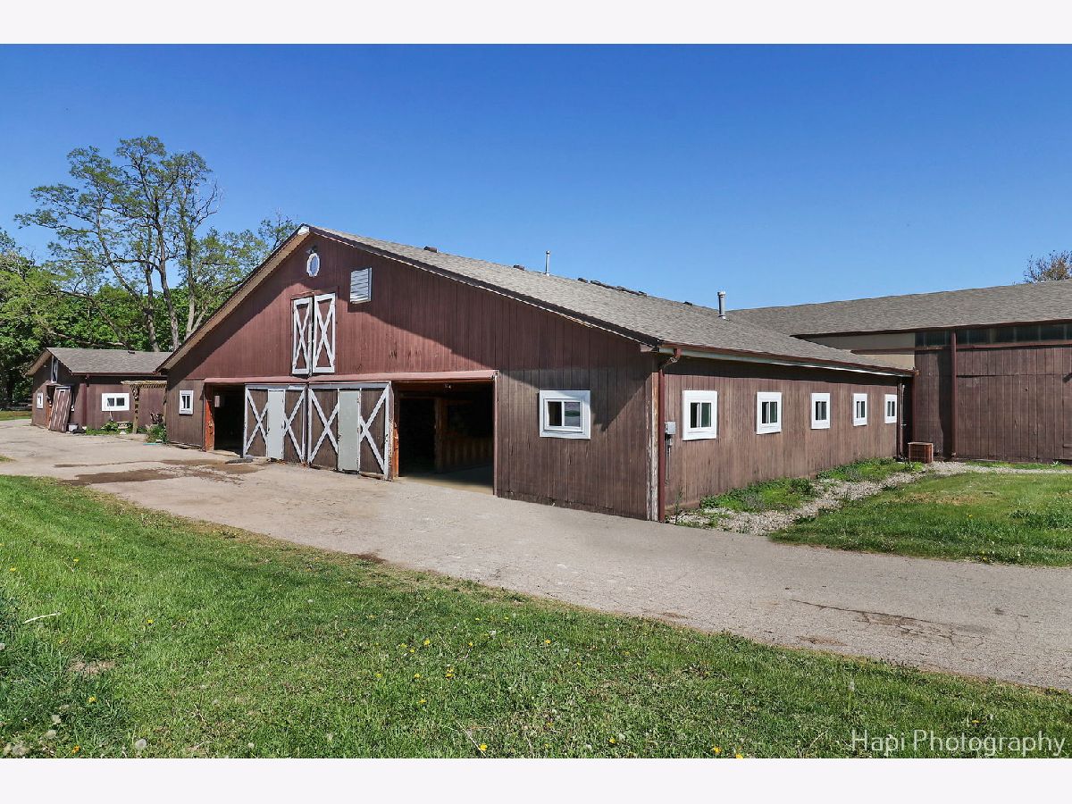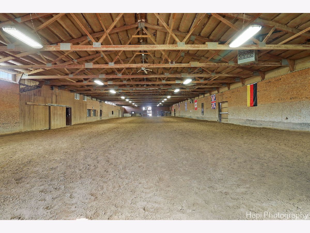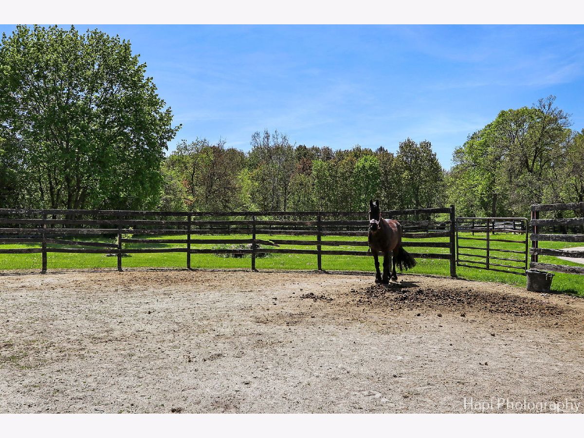 Welcome to Shamrock Farm, an exquisite 13.4-acre equestrian estate in the heart of Barrington Hills, where luxury living meets world-class equestrian facilities. Whether an owner or trainer, this is a horse enthusiasts dream and offers unparalleled amenities, breathtaking views, all in a prime location. The stunning main residence showcases classic Antebellum architecture & is a masterpiece of design & elegance. Featuring 10 foot ceilings throughout, a grand two-story spiral staircase, beautiful hardwood flooring throughout the main level, oversized 5 piece crown molding, custom Anaglypta wallcoverings enhance its timeless appeal & character. Perfect for entertaining - the custom kitchen is designed for both functionality & style, with SS appliances, double wall ovens, a spacious walk-in pantry, large butler's pantry & an oversized granite island with built in granite table. The kitchen is connected seamlessly to the expansive family room, dining room, and living room, creating the perfect setting for all types of gatherings. Working from home is a breeze in the exceptional library/home office. Conveniently located & private, creating a refined workspace with custom built-in book shelves & a stately fireplace beautifully crafted with custom surround wood. Enjoy morning coffee from the large screened in porch, the perfect retreat with serene views of the horse pastures. The second level features a sprawling primary suite with fireplace, two oversized walk-in closets, and a spacious ensuite bath. Four additional generously sized bedrooms, with plenty of closet space and ensuite baths, provide for the ultimate in comfort and privacy. A full attic with a staircase walk up offers endless possibilities & ready for expansion, can be converted into extra bedrooms, nanny quarters, or a fun kids retreat. Thoughtfully designed with a 9 foot deep pour, the full finished lower level is the perfect space for entertainment and recreation. Featuring a double sided fireplace, living room, a 14 foot bar with tap and sink, sauna, gym, full bath, and ample storage. The main house is supported by a whole house 50 kw gas generator and 2 other generators support the stable and coach house. Each level of 10' ceilings have been insulated, optimizing energy efficiency . With over 7500 SFT of living space, 5 custom designed fireplaces and 4 1/2 baths, this is truly a forever home. Extra company - no problem! The coach house has 2 spacious bedrooms and 2 full baths, a home office, a full kitchen, and an expansive family room and dining room. Ready for entertainment with a 25 x 13 deck and 3 car garage. Relax after riding and enjoy resort style outdoor living in the 48x28 heated in ground pool. Complete with fully equipped pool house, including kitchen, bathroom, dining and living area. Bring your horses home or expand your boarding facility! This beautiful property is completed by a 200x60 foot heated indoor arena with attached 22 stall barn. Both the arena and barns are insulated and heated. Turnkey with an apartment for grooms quarters, all mahogany viewing room with bathroom and office, courtyard, wash rack with hot water, 2 tack rooms, a feed room, kitchen with washer and dryer, 1 large outdoor arena and 11 turnout pastures all fenced for the safety and security of your horses. A rare find and an incredible complement to a beautiful home! This property is ideally located with breathtaking views of the surrounding countryside. Directly across the street from the nearly 250-acre Hill 'N Dale Preserve & nearby the sprawling 4,000 acres of Spring Creek Forest Preserve. Conveniently located close to I-90, shopping, restaurants, Metra & part of the award winning Barrington School District 220. Whether you're looking for a private equestrian retreat or an opportunity to expand a boarding & training business, Shamrock Farm offers the perfect blend of luxury, functionality, & natural beauty. Don't miss the chance to own this magnificent turnkey property.