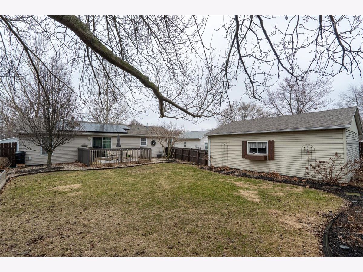 What a sweet gem! 3 bedroom, 2 bath ranch home with 2.5 car garage. Large kitchen with solid-surface countertops, pantry closet and an abundance of cabinetry. Spacious separate dining room with sliding glass door to enjoy the awesome deck overlooking the fenced and beautifully landscaped yard! Master bedroom has two closets and master bath has double vanity top. Newer laminate flooring. 2024: NEW roof and NEW furnace. 2017: new siding. 2015: new A/C Enjoy the calm of this extremely low traffic street. (Look for previous spring photos of yard at end of photos. Lots of perennials!) Solar panels are owned, not leased. All the benefit without the cost.