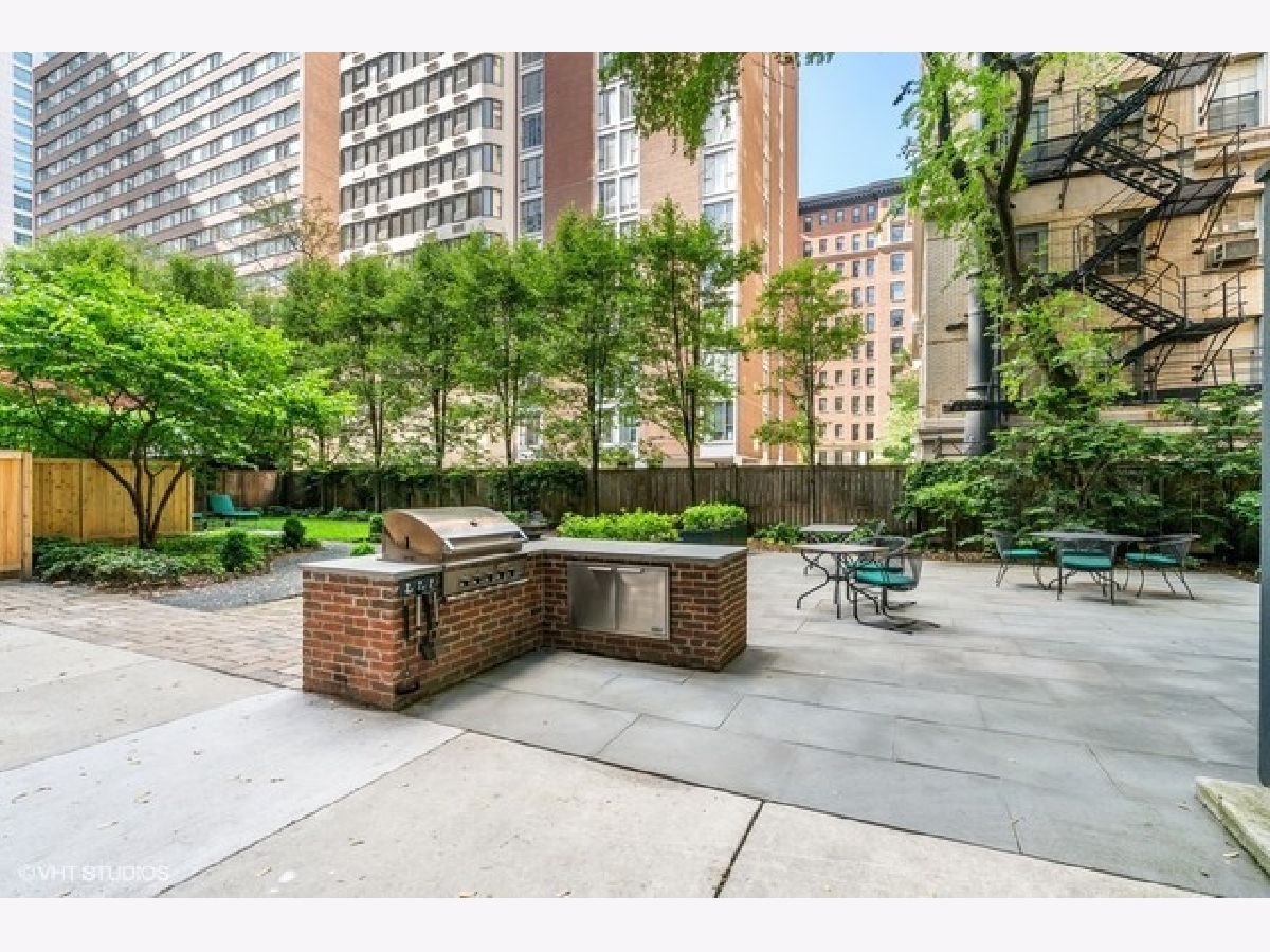 Nestled just off Michigan Avenue in Streeterville, this charming ground-floor one-bedroom, one-bath residence enjoys access to one of the neighborhood's last remaining shared gardens. The layout is efficient and well aligned, offering excellent bones and an ideal opportunity to update and customize. A gracious foyer opens to a generously sized living space that comfortably accommodates both living and dining areas. Original hardwood floors, a fireplace, plaster walls, decorative moldings, and 10' ceilings highlight the home's vintage character and timeless appeal. The kitchen offers ample room for a table and chairs, making it a true eat-in space with excellent potential for modernization. The bedroom is well proportioned with good closet space currently furnished as an office, and the bathroom is conveniently located and ready for updating. Built-in shelving and storage cabinetry are found throughout the home. Laundry facilities and assigned storage are provided as common elements of the professionally managed association, which features a live-in engineer. Residents enjoy a beautifully landscaped common garden with grill, lounge areas, and dining tables-perfect for outdoor entertaining. Pet friendly. Discounted monthly parking is available next door. Ideally located just off Michigan Avenue, close to transportation, restaurants, shopping, and cultural institutions-this is a wonderful opportunity to create a refined city retreat in a coveted Streeterville location.