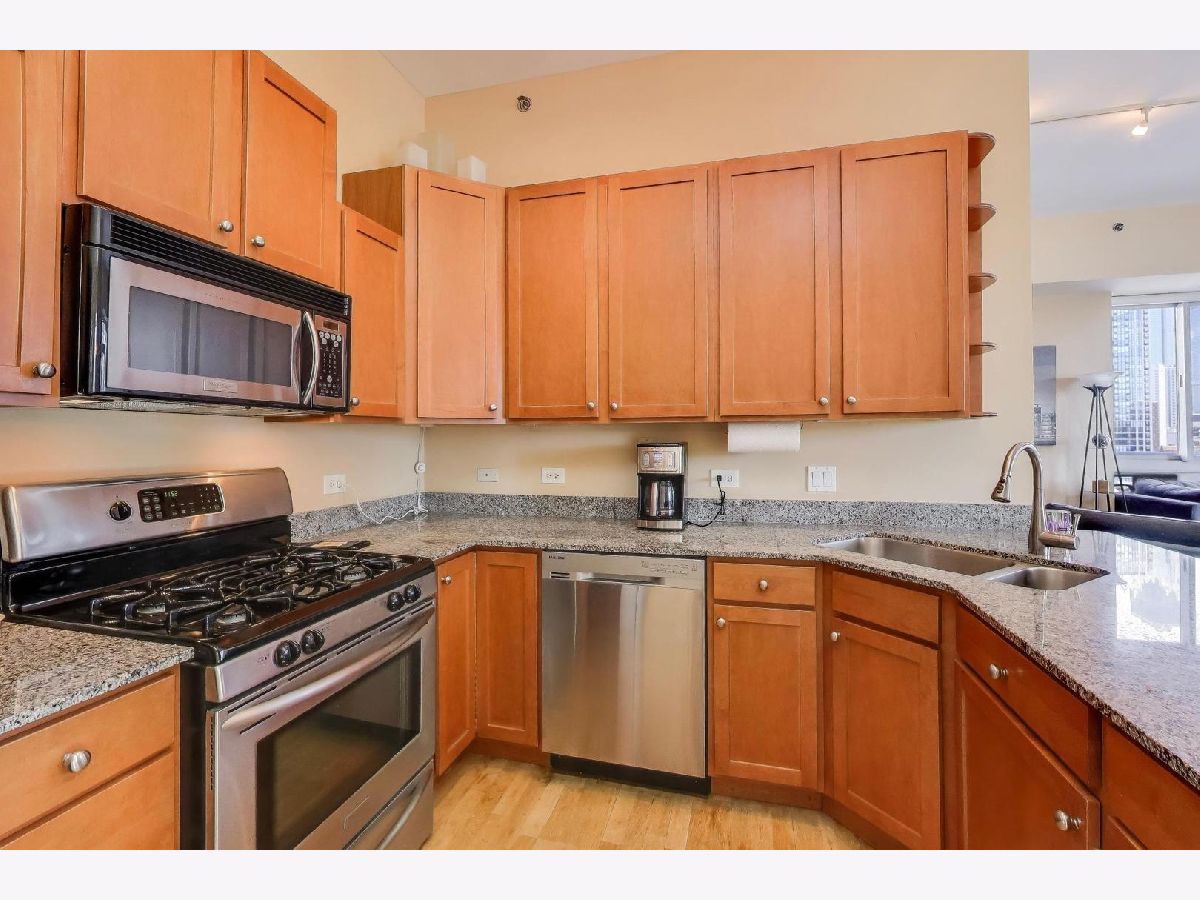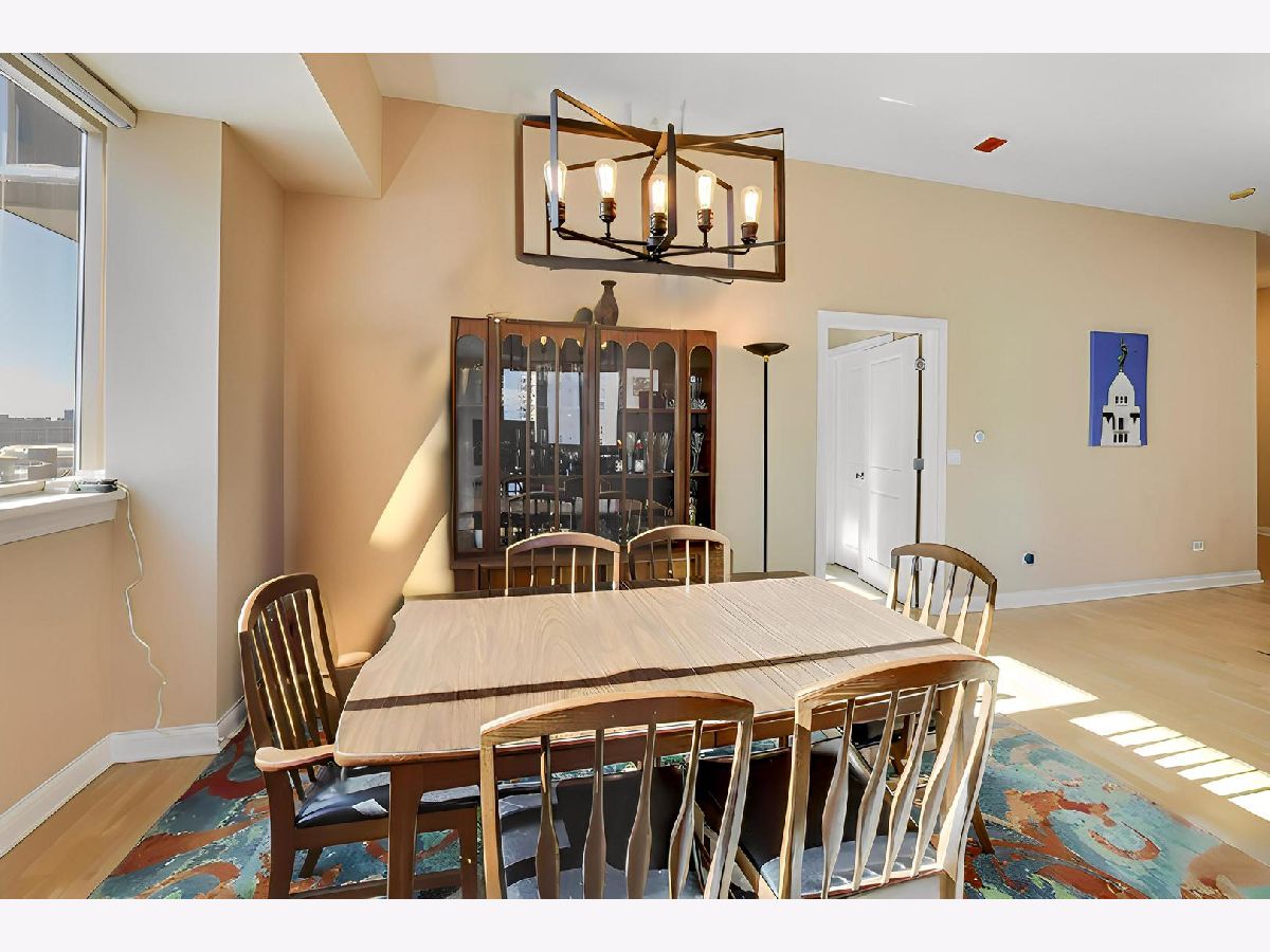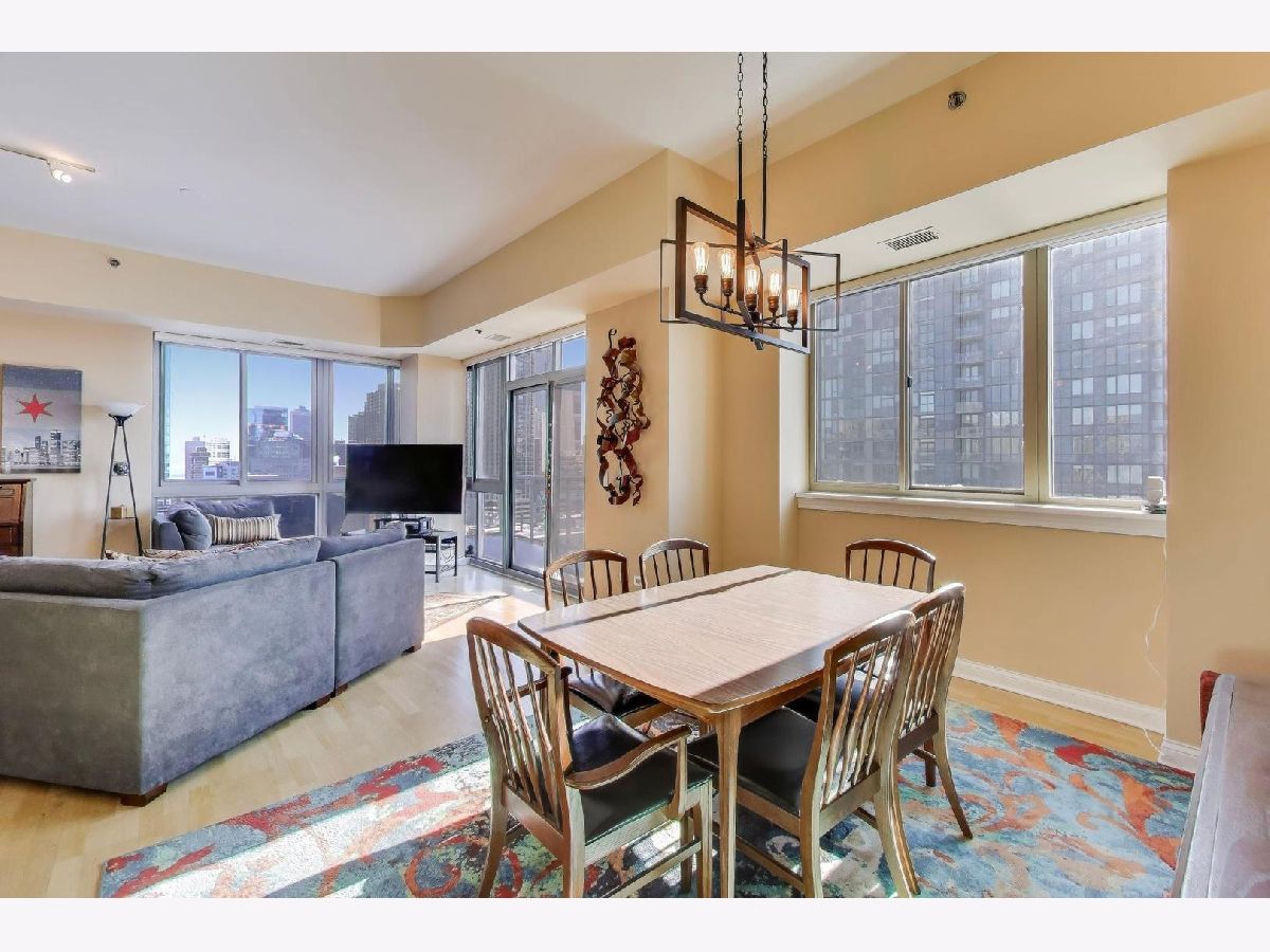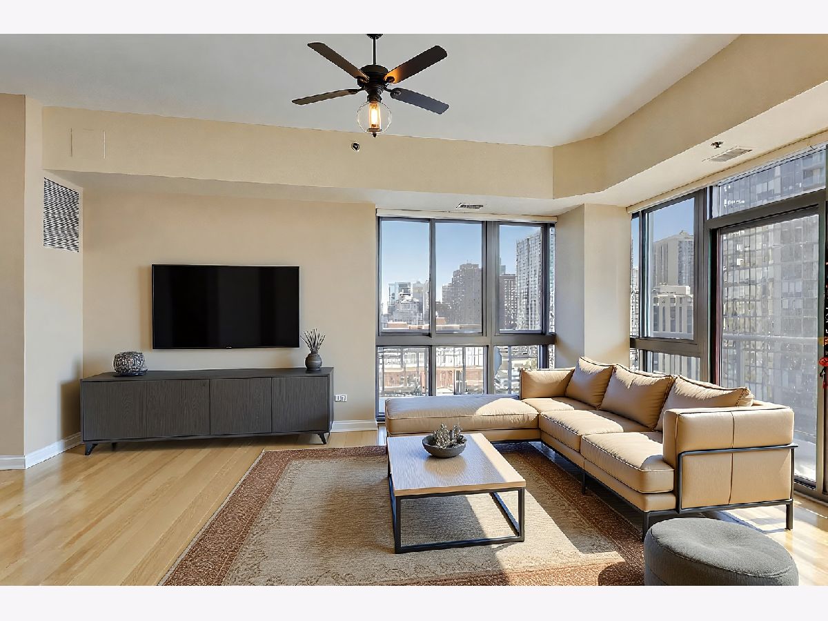 RARELY AVAIL 05 south east corner tier in the Venetian! Phenomenal skyline, lake, and city views define this sun-drenched southeast corner 2-bedroom + den, 2-bath residence in the heart of Old Town. The desirable split floor plan offers exceptional privacy, abundant natural light, and sweeping panoramic views enjoyed from the wraparound private terrace. The thoughtfully designed interior features high ceilings throughout, bamboo floors, and a spacious open living and dining area framed by oversized windows. The kitchen is appointed with granite countertops, stainless steel appliances, and a breakfast bar opening seamlessly to the dining room and expansive living space-ideal for entertaining. The primary suite serves as a true retreat with a spa-inspired bath, dual vanity, walk-in closet with Closet Works organizers, and tranquil views. The second bedroom is positioned on the opposite side of the home with south east -facing views, while a den provides flexibility for work-from-home living. Custom paint and Hunter Douglas window treatments complete the residence. Additional highlights include excellent storage and two premier, side-by-side, separately deeded garage parking spaces in heated garage, additional $30,000 each. The full-amenity building offers a 24-hour door person, fitness center, expansive rooftop sun deck, community/party room, and 5th-floor landscaped green space. Located just mins from the lakefront, dining, boutiques, coffee shops, nightlife, grocery stores, fitness studios, and convenient transportation-this home delivers iconic Old Town living with unmatched views and lifestyle convenience. A truly exceptional opportunity in one of Old Town's most sought-after buildings .