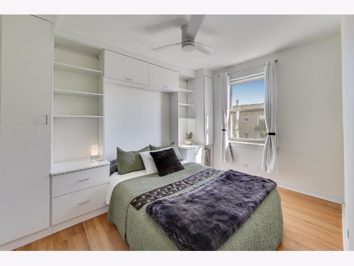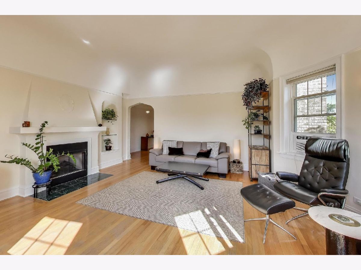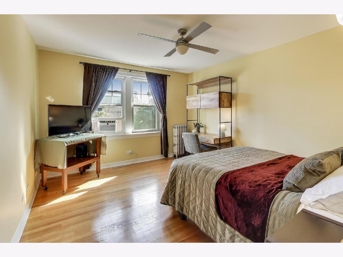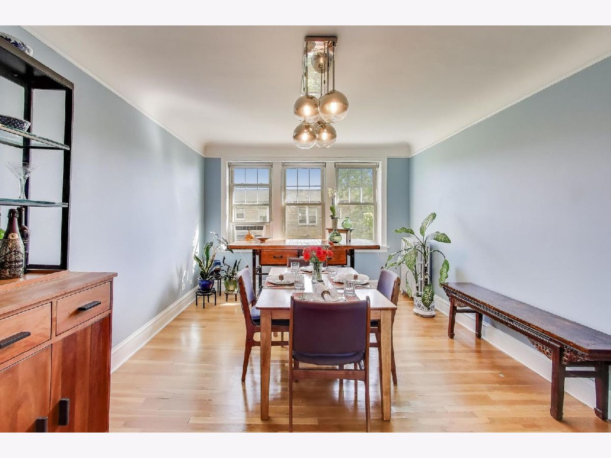 This stunning and dramatic top-floor corner penthouse offers a unique blend of vintage 1930s art deco style and modern amenities. The home welcomes you with an oversized entry foyer that leads into a spacious, rounded living room. Designed to impress, the living room boasts panoramic views to the East, South, and West, filling the space with natural light throughout the day. The vintage character of this home is highlighted by cathedral ceilings, a classic fireplace, and timeless woodwork. Gleaming hardwood floors run throughout the living areas and both bedrooms, and the unit features the tallest ceilings in the building, even taller than those on lower floors. This distinctive corner home exudes an undeniable air of grandeur, offering generous room sizes that enhance the sense of space and luxury. The primary bedroom is generously sized, providing plenty of room for multiple dressers and a comfortable home office setup. The separate formal dining room is a true showstopper, bathed in sunlight and designed for entertaining and memorable meals. The kitchen features 42-inch maple cabinetry and plenty of workspace, making it both functional and stylish. Enjoy morning coffee or a fabulous meal on the rear deck, perfect for relaxing or entertaining guests. Additional conveniences include a laundry closet with a newer stackable LG washer and dryer, as well as a dedicated storage room in the basement. Located just steps from dining, Warren Park, Indian Boundary Park, CTA Morse train station and Rogers Park METRA station. The monthly assessments include heat, hot and cold water, Gas, common insurance, exterior maintenance, lawn care, scavenger, and snow removal. The penthouse home offers easy access to both city amenities and green spaces. Downtown Evanston is only a 10-minute drive away, making this home ideally situated for both convenience and lifestyle.