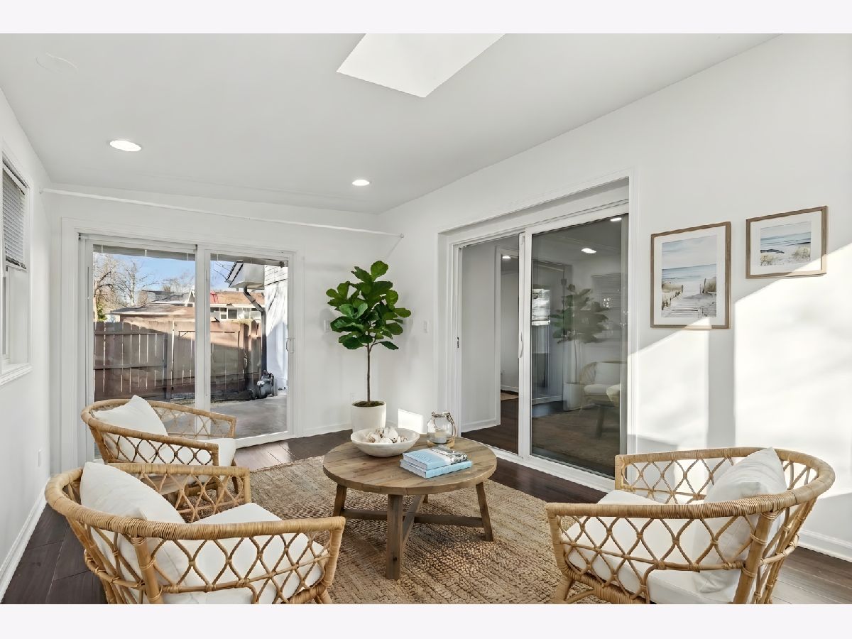 Set on a cul-de-sac, just minutes from downtown Glenview, the train station, and within the sought-after Glenview school district, this two-story 4BR/3.5Bth colonial offers approximately 2,500 sq. ft. of living space plus a full finished basement. The main-level layout provides excellent flow, combining private areas with open sections ideal for family gatherings and entertainment. Beautiful newer hardwood floors and recessed lighting throughout. An abundance of windows and sliding doors allow for natural light to fill the space. The focal point is the 2020 home addition featuring an incredible kitchen with high ceilings, custom cabinetry, quartz counters, and high-end stainless-steel appliances. The expansion was professionally completed by a licensed contractor with all required Village permits. A heated sunroom addition could perfectly function as an extra office for business use, as it has an independent exterior entry and its own access to a secondary private side yard. All upper-level bedrooms are extremely spacious, and the primary suite includes a full bath and walk-in closet. The full finished basement features a large open recreation area and a separate bonus room with adjoining bathroom. Ample storage is found throughout, and the utility room includes a recently installed HVAC system, sump pump with battery backup, and ejector pump. A large mudroom with laundry sits just off the spacious 2.5car attached garage. The fully fenced main yard offers a huge stone patio, and tall shrubs along the fence line for added privacy. The property has been well maintained and thoughtfully updated by the owners over the past 10 years. First time on the market - truly a rare find in Glenview's low-inventory real estate environment.