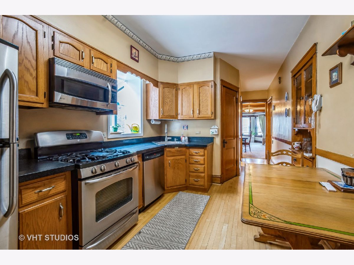 Wow what a Price ! Stately large brick 2 flat located in a popular Lakeview location! Steps to award winning Bell school and Lane Tech ! Beautiful solid oak woodwork & oak beamed ceiling ! Large eat-in kitchens and a large bonus room off the kitchens which can be a den or office.Convenient walk-in pantry in both units and large window box in top floor kitchen. Beautiful oak built-in cabinets and gardwood floors all add to the vintage ambiance. Full partially finished basement with entrance from inside first floor unit whic lends itself to expansion of lower level living space. This home has been lovingly cared for since 1940 by same family ! Check out the pictures and floor plan! Lovely partially fenced back yard with flower garden and a brick 2 car garage with remote opener. A pleasure to show and sell!