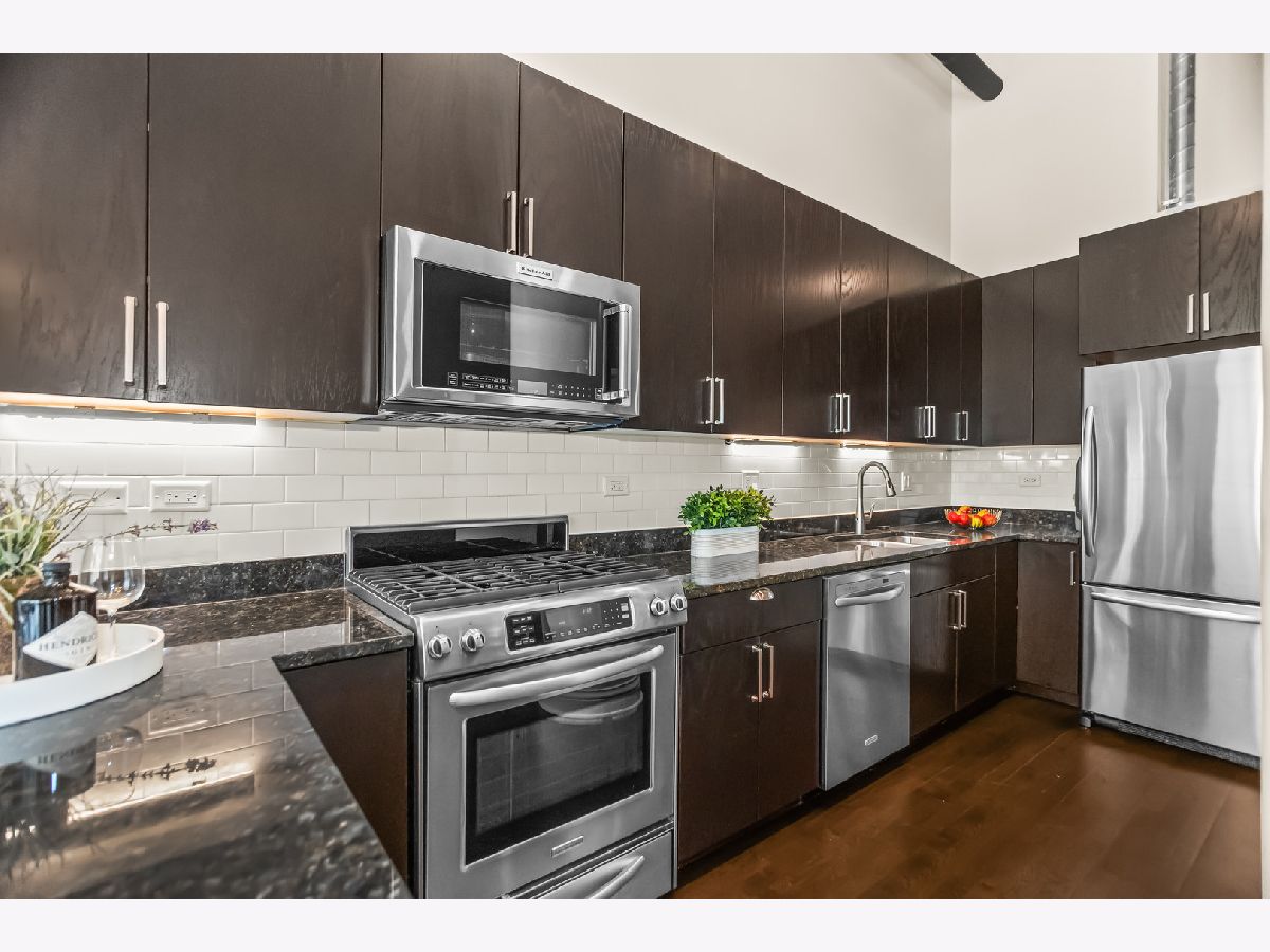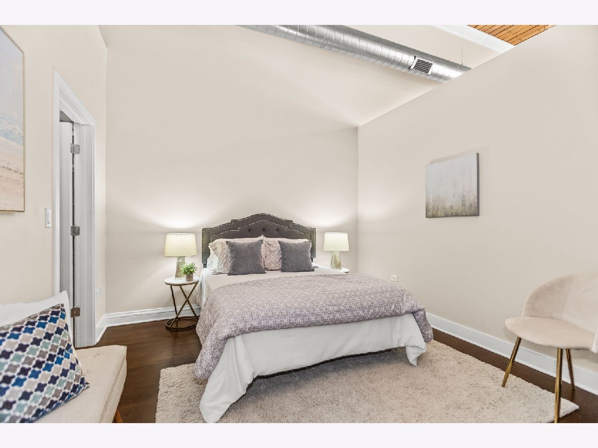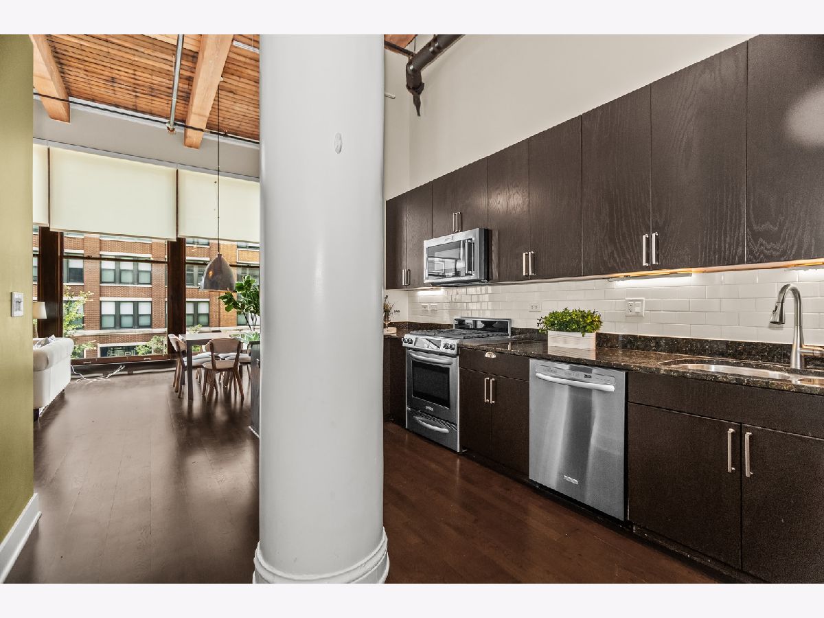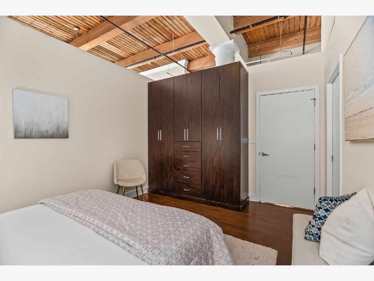 HOT, RARELY AVAILABLE MOTOR ROW LOFTS! Live in style at this standout loft in the original Cadillac building in the South Loop! This two bedroom combines historic charm with smart modern upgrades-featuring soaring 16' timber ceilings and a flexible, open layout. A spacious foyer with generous closet space welcomes you into the unit. The kitchen is equipped with granite countertops, high-end stainless steel appliances (including a premium microwave), bar seating, dark modern cabinetry, and crisp white subway tile. Track lighting was updated in 2020, and the kitchen and den received a fresh refresh in July 2025. The open-concept living/dining area is bathed in natural light from floor-to-ceiling windows, complete with custom battery-powered blinds (installed in 2022). The living room features a cozy fireplace, custom built-ins with bar area, and three 14' functional windows-no screens, for a clean, uninterrupted view. The spacious primary bedroom includes a large walk-in closet and a full wall of built-ins. The bathroom offers glass shower doors and a tub/shower combo. The second bedroom is perfect for a home office or guest space. Additional upgrades include: Brand new In-Unit front-loading washer & dryer (2025), tucked behind a charming sliding farmhouse door for style and space-saving. HVAC replaced in December 2023, with a 5-year transferrable warranty. Entire unit painted in 2023 for a fresh, modern look. Enjoy city views from the rooftop deck. Premium first-floor deeded parking space (additional $25,000) in the attached heated garage. You'll also have tall cage storage, access to a bike room, and extra building storage. Investor-friendly and pet-friendly, with no rental restrictions. HOA includes: water, garbage, internet, cable, garage and elevator maintenance. Located just two blocks from the Green Line and minutes from downtown, lakefront paths, coffee shops, breweries, and expressways-this is a rare gem you don't want to miss!