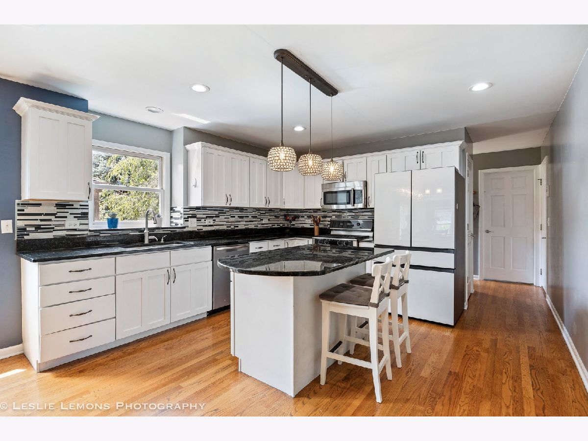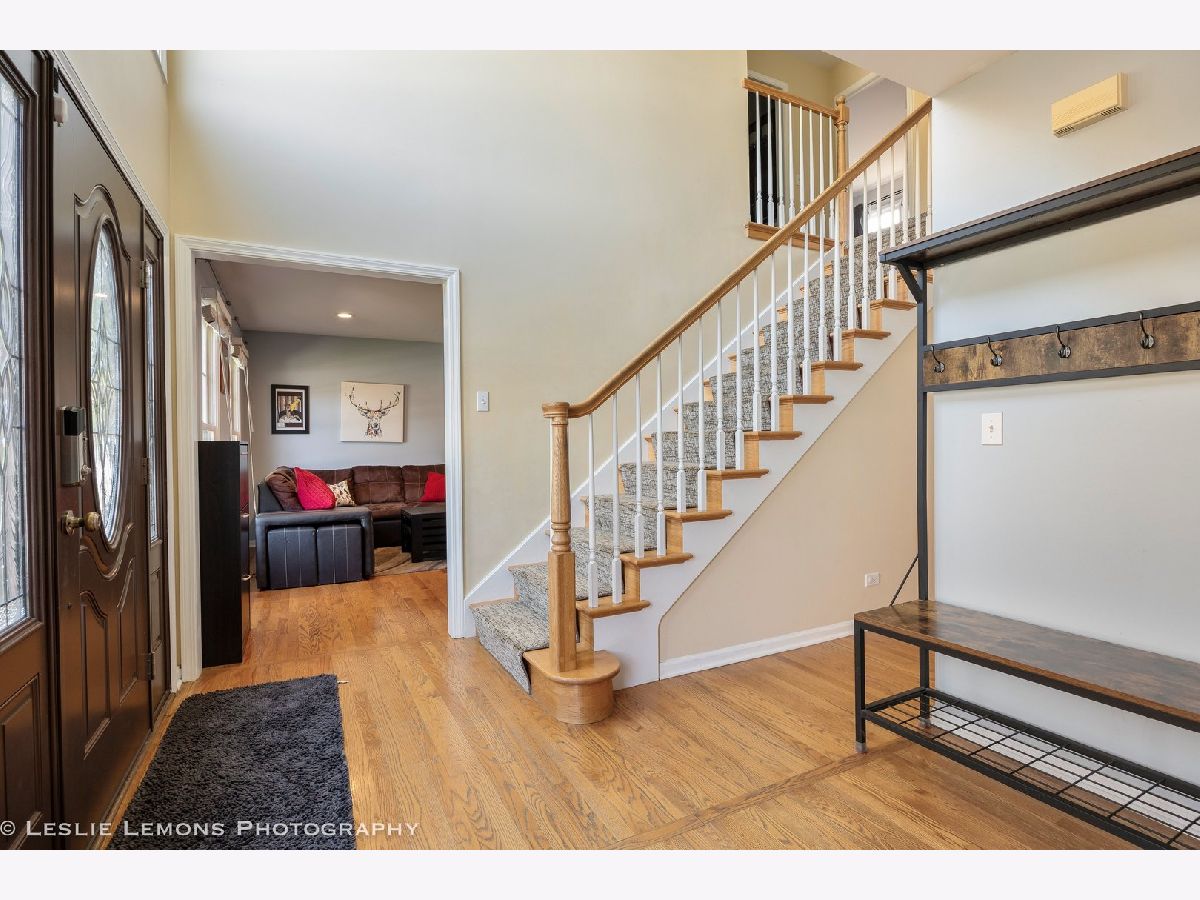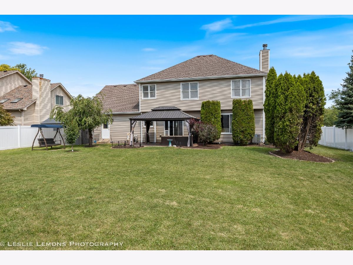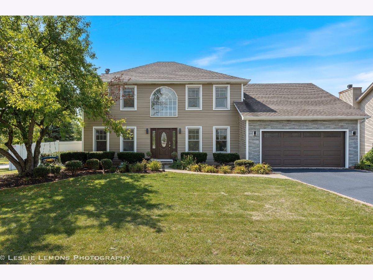 This wonderful residence is ideally situated on a tranquil, tree-lined corner cul-de-sac lot, encompassing approximately one-third of an acre. Upon entering, a two-story foyer provides a gracious welcome, leading to the living and dining rooms, as well as a family room that features a wood-burning fireplace. The kitchen is outfitted with stainless steel appliances, granite countertops, and a glass backsplash. Hardwood floors are present throughout the main level, where a powder room is conveniently located off the mudroom. The primary bedroom offers high ceilings, a walk-in closet, and an attached en-suite bathroom complete with a separate shower, a spa tub, and double sinks. The second floor comprises three additional bedrooms and another full bathroom. The finished basement includes a recreation room, a full bathroom, and an additional guest room. Outdoors, a spacious patio within a fully fenced yard awaits. The pergola, shed, and patio furniture are all included with the property. This home has undergone significant updates since 2020, including: * **2020:** Roof, gutters, siding, garage door, front door, interior painting, and downspouts. * **2022:** Furnace, water heater, sump pump, backup battery, and fence. * **2023:** Washer and refrigerator. * **2025:** Disposal.