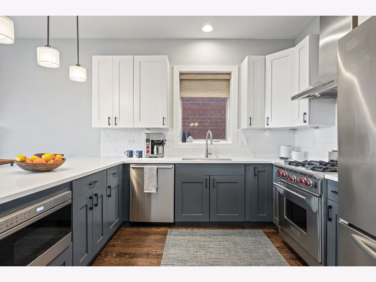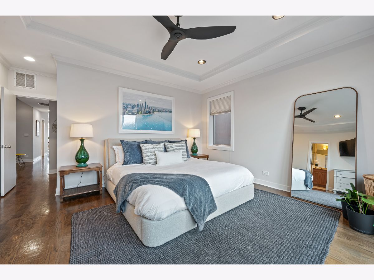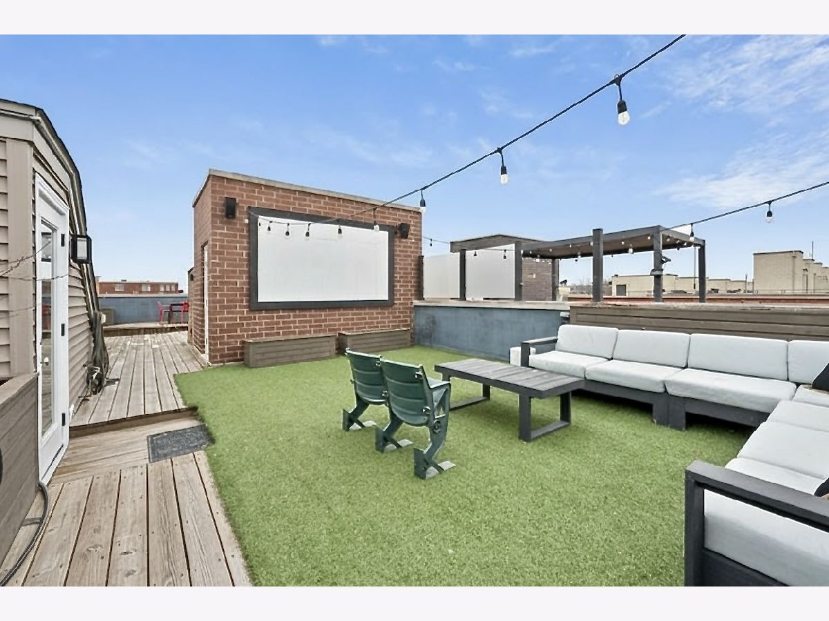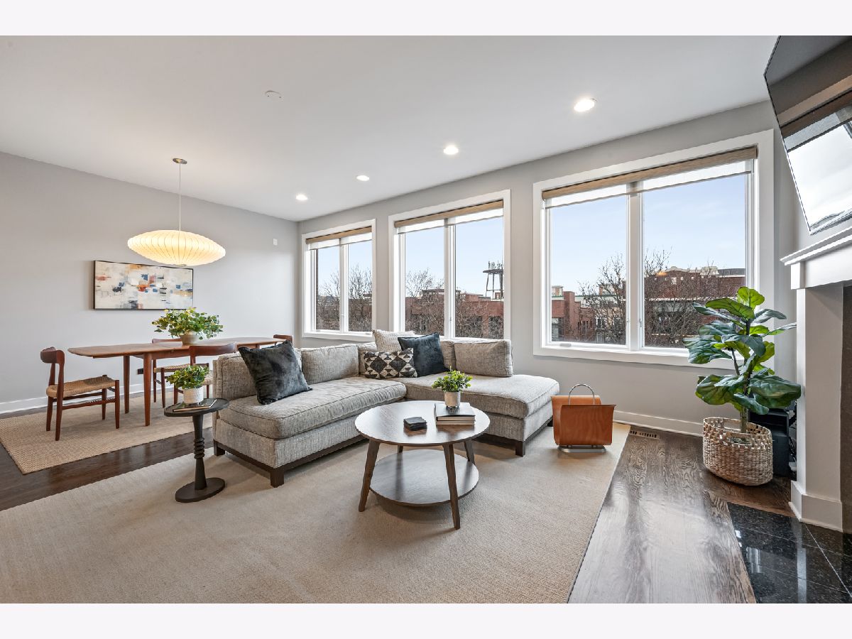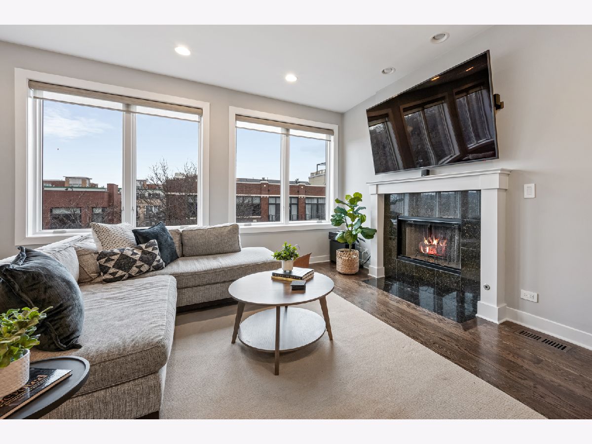 This extra-wide 2-bedroom, 2-bath home combines thoughtful updates with comfortable design in one of Chicago's most sought-after neighborhoods. A wall of windows fills the main living and dining area with natural light, highlighting hardwood floors and a gas fireplace that anchors the space. The updated kitchen blends clean finishes and functionality, featuring two-tone cabinetry, waterfall quartz countertops, a subway-tile backsplash, and premium appliances, including a Wolf range-ideal for everyday living and entertaining alike. The primary suite offers a quiet retreat with a tray ceiling, an organized walk-in closet, a Juliet balcony, and a spacious bath with a double vanity, soaking tub, and walk-in shower. Upstairs, the private rooftop deck expands the living space outdoors. Fully built out and designed for gathering, it includes an outdoor kitchen with a wet bar, built-in planters, multiple lounge areas, and open skyline views - a rare opportunity for city living with room to host, relax, and unwind. Perfectly positioned near the Damen and Milwaukee corridors, this home places you just steps from Bucktown favorites - boutique shopping, chef-driven restaurants, neighborhood coffee shops, and everyday conveniences. Enjoy easy access to the 606 Trail, Holstein Park, and the vibrant energy that defines this highly sought-after pocket of the neighborhood. A covered, assigned parking space with access via a heated driveway is included for added convenience.