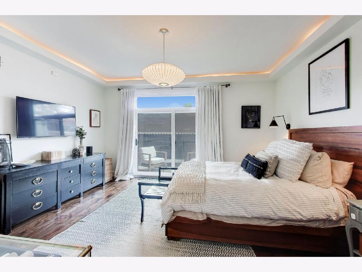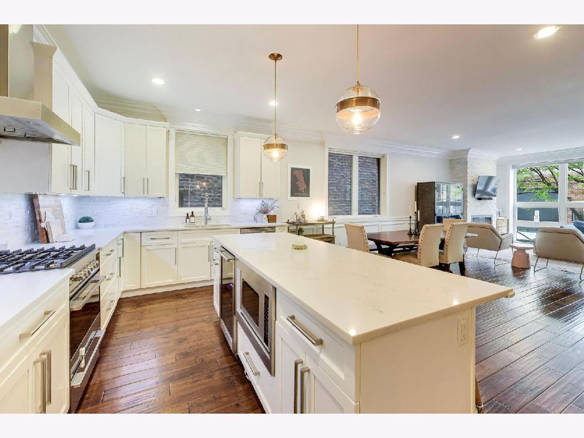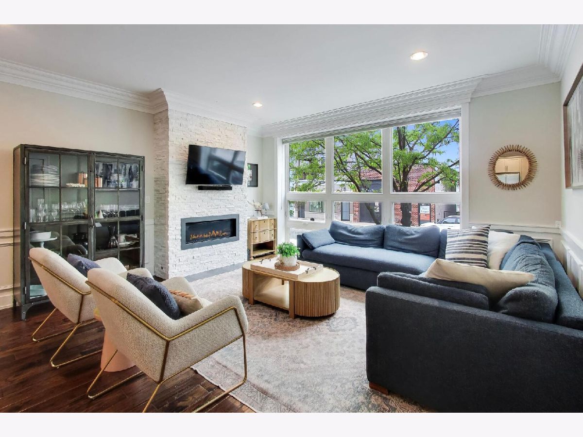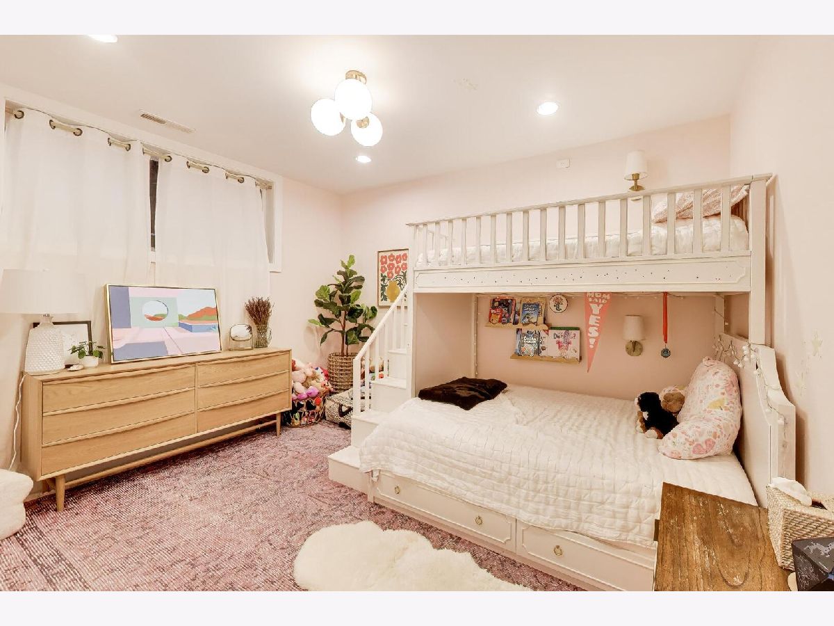 Bright and beautifully designed 4-bedroom duplex down offering nearly 3,000 square feet in the heart of Roscoe Village located in the highly sought-after Audubon school district. This south-facing home is filled with natural light and features an expansive main level that truly serves as the center of everyday living. Floor-to-ceiling windows, a striking modern stone fireplace, and hardwood floors anchor the open-concept living, dining, and kitchen space-perfect for both entertaining and family life. The chef's kitchen is outfitted with sleek white cabinetry, premium Fisher & Paykel appliances, quartz countertops, a marble backsplash, and custom lighting. Detailed millwork throughout the home adds character, including wainscoting, crown molding, and elegant tray ceilings. Upstairs, the primary suite offers a peaceful retreat with a custom walk-in closet and a spa-inspired bathroom featuring a soaking tub and a large walk-in shower with rain and body sprays. A second generously sized bedroom is also located on this level, creating a functional layout with both main bedrooms together. The lower level includes a spacious recreation room with a built-in bar, two additional full-size bedrooms, and a dedicated laundry room-ideal for flexible living arrangements. A thoughtfully designed play nook tucked under the stairs adds charm and functionality, complete with custom shelving, lighting, and a playful door. Recent updates and upgrades include a new A/C unit (2025), an electric vehicle charger, enhanced tray lighting with remote control, and a refreshed main-level guest bathroom with a quieter, dimmable ventilation system. The fourth bedroom has been upgraded to serve as a versatile office, gym, or guest space, complete with a high-quality Murphy bed. A custom-built safety gate at the top of the stairs blends seamlessly into the design while offering added peace of mind. Additional highlights include garage roof rights and approximately $25,000 in improvements, including custom closets, lighting, tile work, and window treatments. The home features large rooms, high ceilings, and abundant natural light throughout. The layout is especially well-suited for families, offering generous living space and flexibility. This home is just steps from parks, restaurants, shopping, and public transportation, this home combines comfort, convenience, and community in one of Chicago's most desirable neighborhoods.