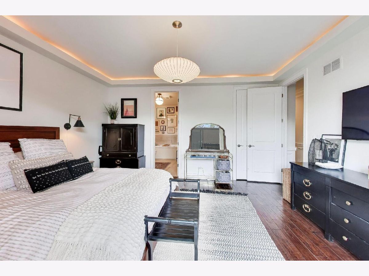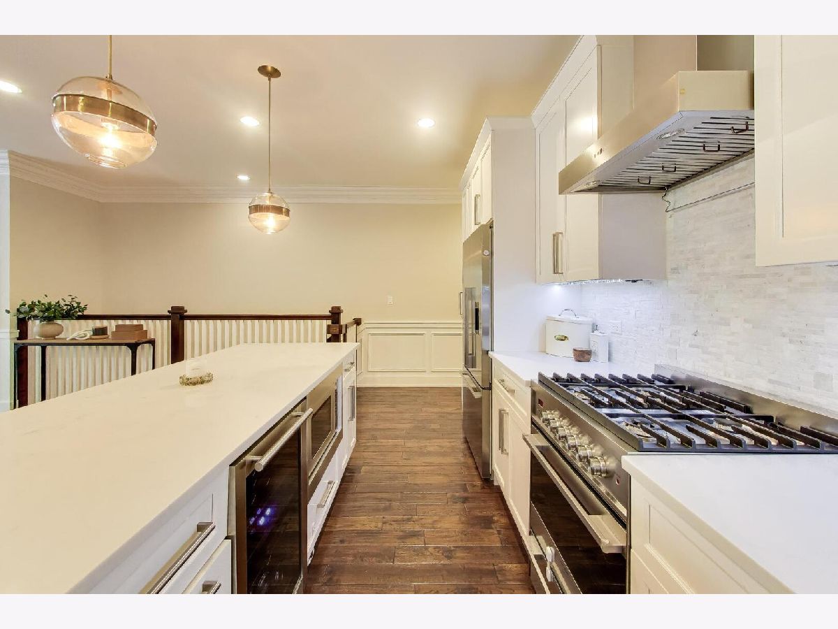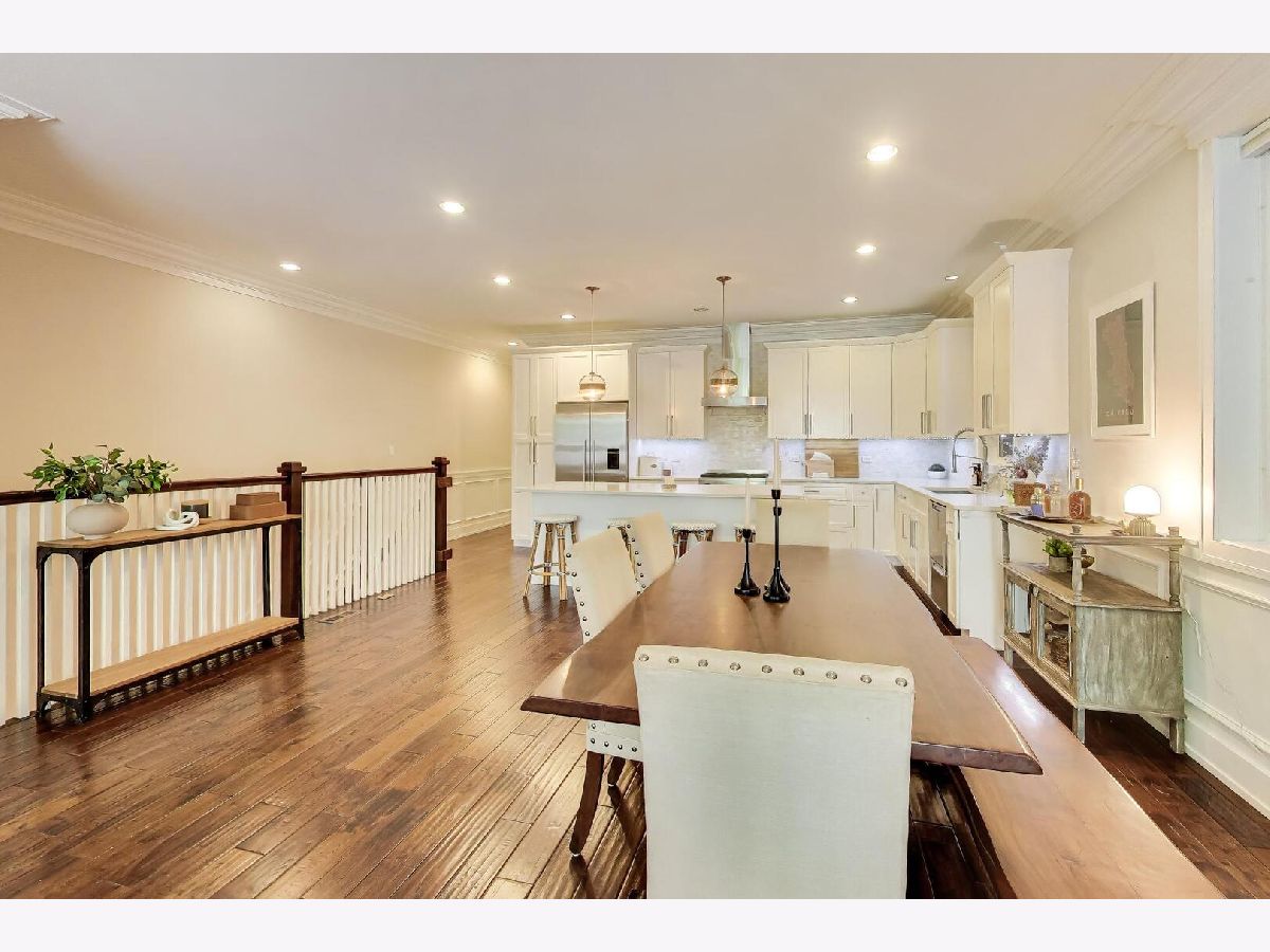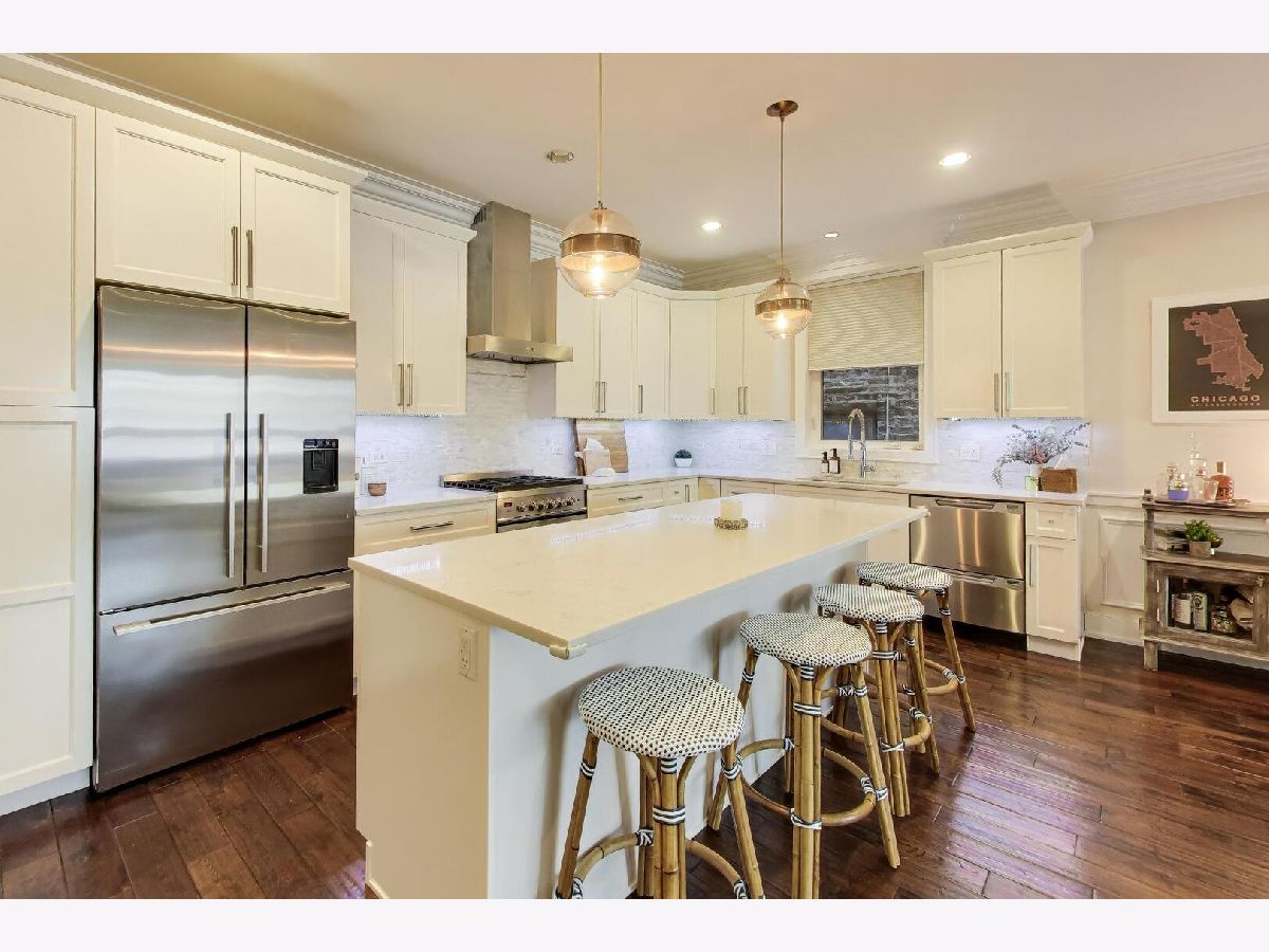 Bright and beautifully designed 4-bedroom duplex down offering nearly 3,000 square feet in the heart of Roscoe Village located in the highly sought-after Audubon school district. This south-facing home is filled with natural light and features an expansive main level that truly serves as the center of everyday living. Floor-to-ceiling windows, a striking modern stone fireplace, and hardwood floors anchor the open-concept living, dining, and kitchen space-perfect for both entertaining and family life. The chef's kitchen is outfitted with sleek white cabinetry, premium Fisher & Paykel appliances, quartz countertops, a marble backsplash, and custom lighting. Detailed millwork throughout the home adds character, including wainscoting, crown molding, and elegant tray ceilings. Upstairs, the primary suite offers a peaceful retreat with a custom walk-in closet and a spa-inspired bathroom featuring a soaking tub and a large walk-in shower with rain and body sprays. A second generously sized bedroom is also located on this level, creating a functional layout with both main bedrooms together. The lower level includes a spacious recreation room with a built-in bar, two additional full-size bedrooms, and a dedicated laundry room-ideal for flexible living arrangements. A thoughtfully designed play nook tucked under the stairs adds charm and functionality, complete with custom shelving, lighting, and a playful door. Recent updates and upgrades include a new A/C unit (2025), an electric vehicle charger, enhanced tray lighting with remote control, and a refreshed main-level guest bathroom with a quieter, dimmable ventilation system. The fourth bedroom has been upgraded to serve as a versatile office, gym, or guest space, complete with a high-quality Murphy bed. A custom-built safety gate at the top of the stairs blends seamlessly into the design while offering added peace of mind. Additional highlights include garage roof rights and approximately $25,000 in improvements, including custom closets, lighting, tile work, and window treatments. The home features large rooms, high ceilings, and abundant natural light throughout. The layout is especially well-suited for families, offering generous living space and flexibility. This home is just steps from parks, restaurants, shopping, and public transportation, this home combines comfort, convenience, and community in one of Chicago's most desirable neighborhoods.