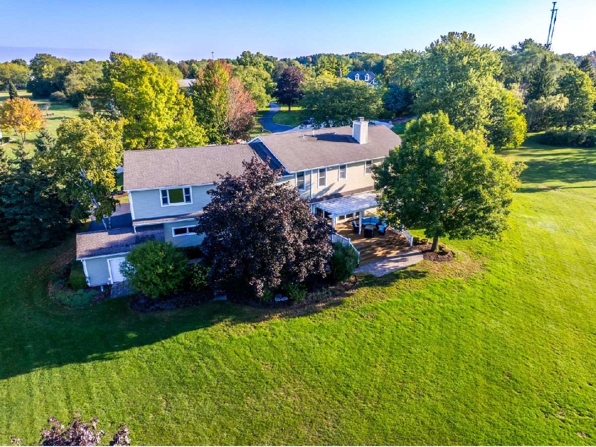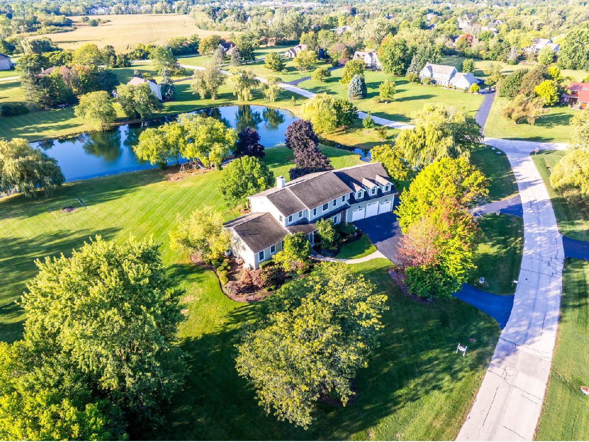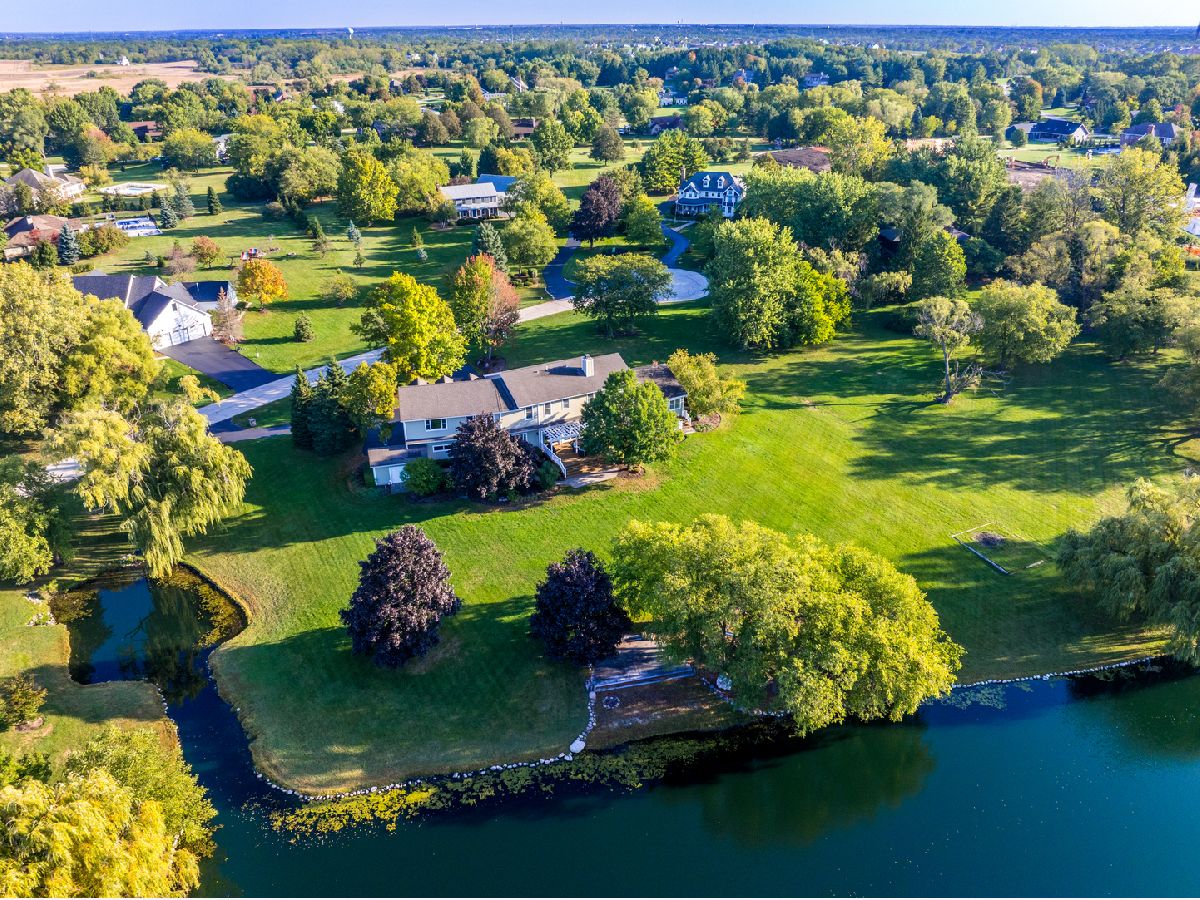 Set on nearly 3 acres in the prestigious Lochanora community, this Hawthorn Woods estate offers timeless elegance, modern convenience, and award-winning Lake Zurich schools. The main level showcases soaring 10-foot ceilings, sun-filled living spaces, oversized decks with sliders and a dramatic dining room that flows seamlessly into the living area and chef's kitchen. Designed for entertaining, the kitchen features a massive island, walk-in pantry, Sub-Zero and Thermador appliances, dual sinks, and a beverage refrigerator. A first-floor guest suite with sitting room provides a private retreat for multigenerational living & guests, while the second level has 4 additional bedrooms and a versatile oversized bonus room perfect for movie nights, a playroom, or a home studio. Thoughtfully remodeled and upgraded in 2013, the home also offers 1st and 2nd floor laundry rooms, a whole-house generator, and a boiler heated garage with polyaspartic floors, attached shed, and direct basement access. The English-style lower-level spans 2,600 square feet of bright, flexible space ready to be finished to your needs. 5 bedrooms, 4.5 baths, and tranquil private pond views, this property delivers unmatched privacy, function, and sophistication-just minutes from shopping, dining, schools and commuter routes.