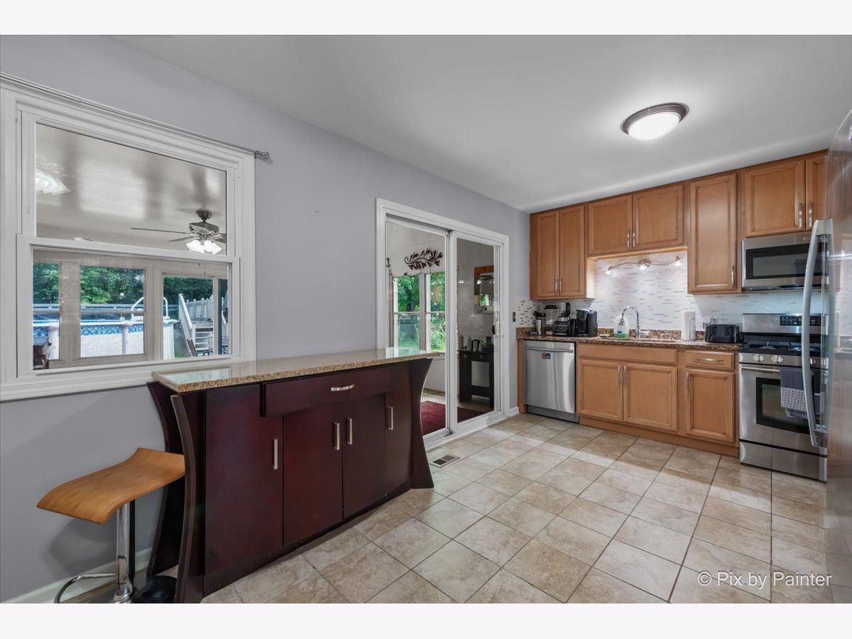 You'll truly enjoy this split level home with a large sunroom addition that includes a luxurious hot tub and walk out to your private pool, deck and brick paver patio. Such a great home for entertaining! Inside is a beautiful remodeled kitchen complete with granite countertops and stainless steel appliances that include a new fridge and microwave. Downstairs is the family room with gas log fireplace, and new sump pump. Great location too, close to shopping, Metra and expressways. This home has it all!
