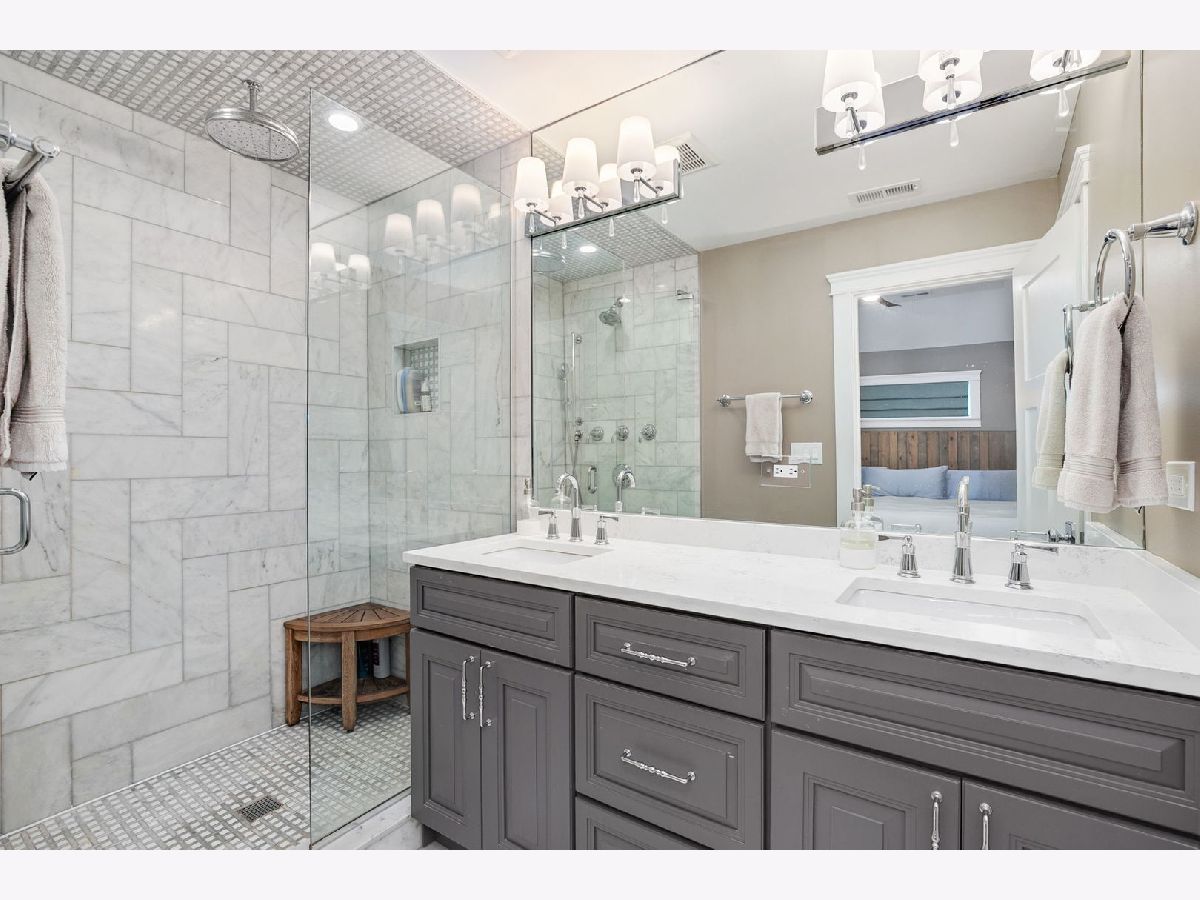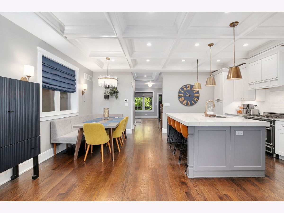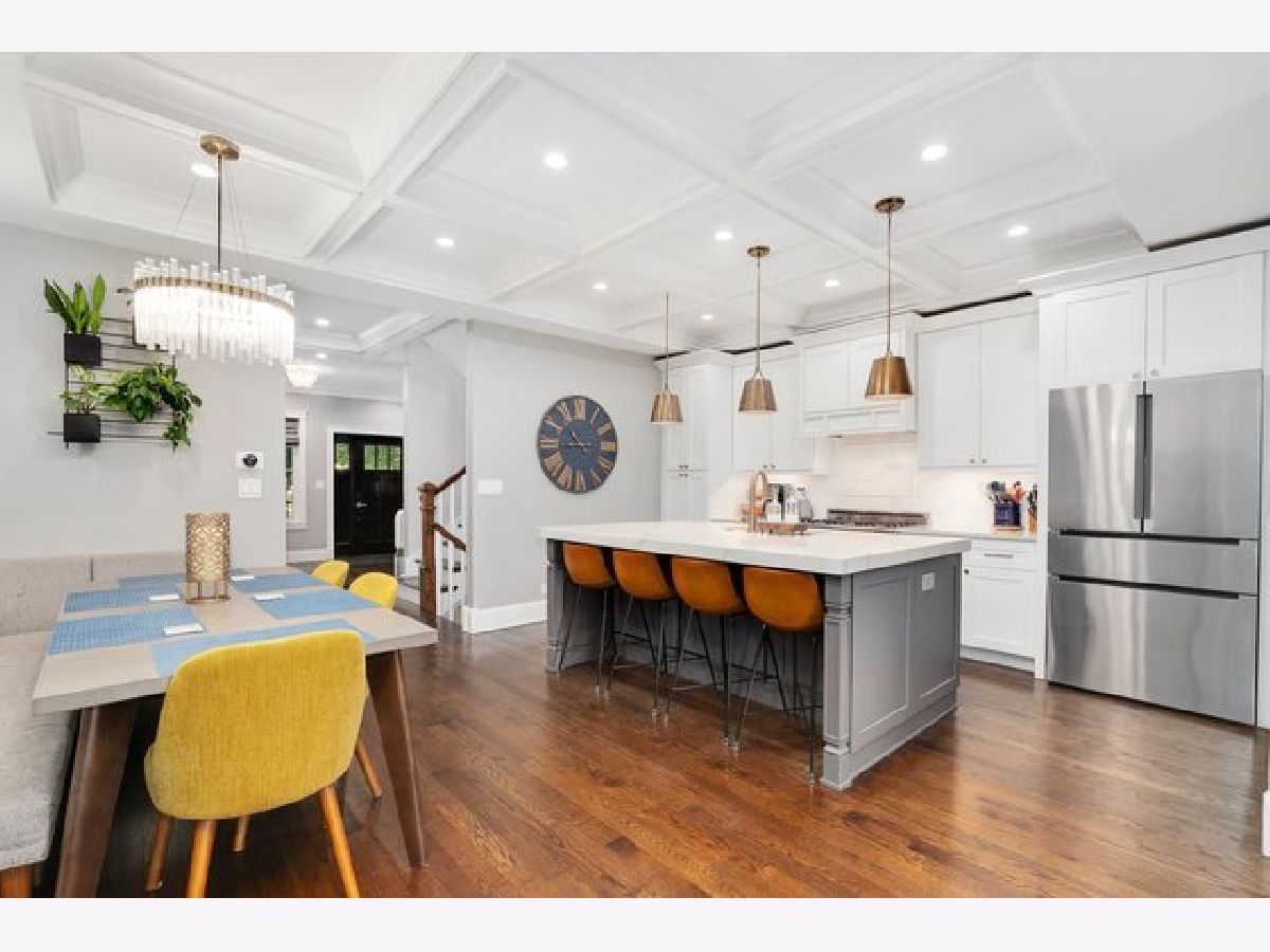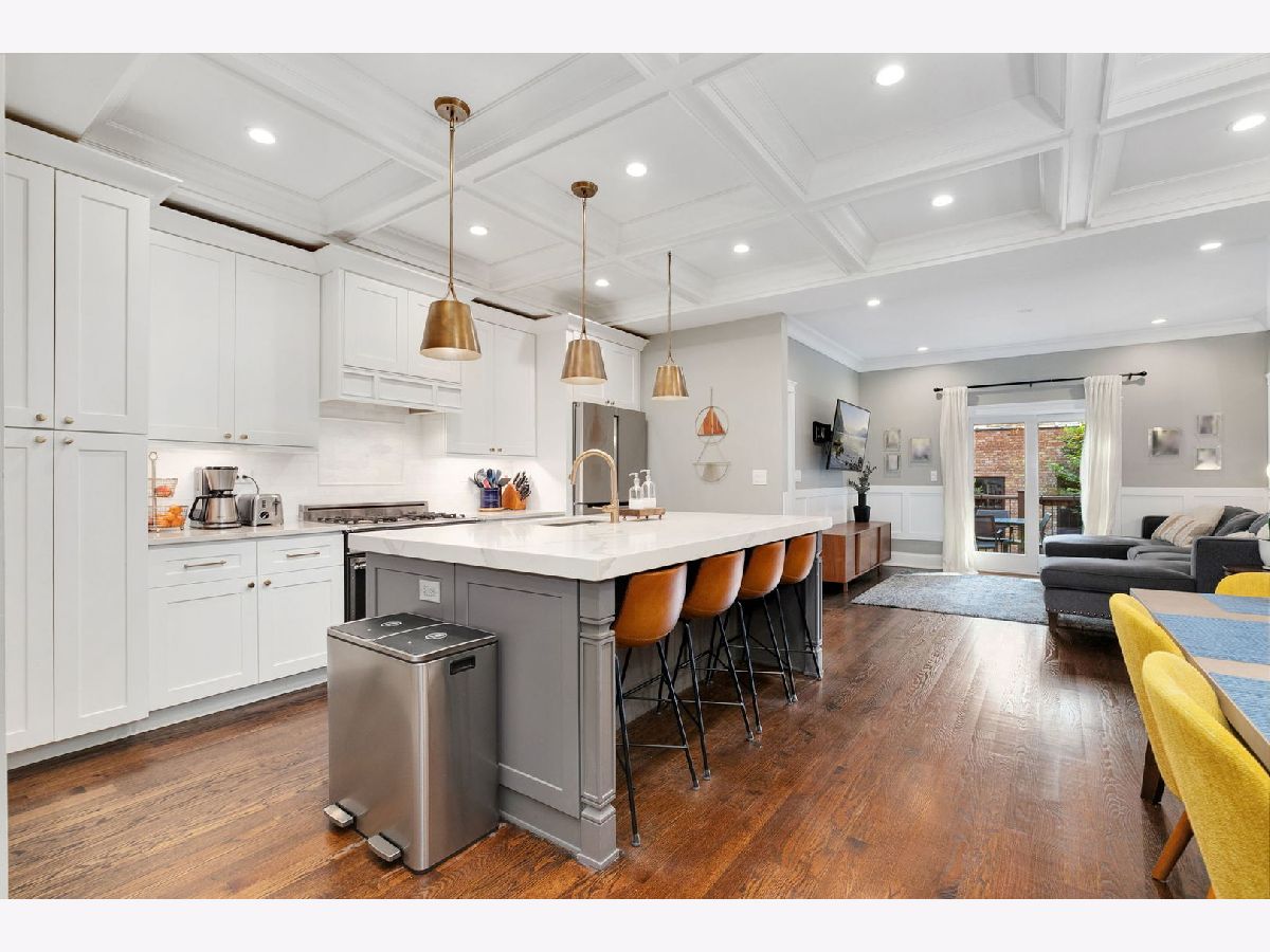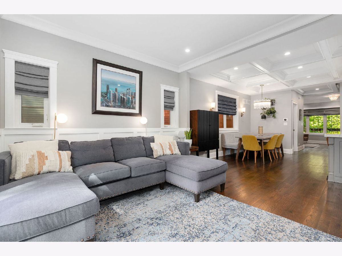 Welcome to this stunning, fully gut-rehabbed home in highly desirable North Center, perfectly situated across from the lush greenery of Welles Park. Enjoy your morning coffee on the inviting deck or relax in the bright, spacious and beautifully landscaped backyard complete with a large 11' x 18' section of Foreverlawn artificial grass. This meticulously designed home features three bedrooms and two bathrooms on the top floor, with an additional bedroom and bathroom on the lower level - ideal for guests, an office nook, and a living room/playroom with a wet bar. The main level boasts a powder room, kitchen, dining area, family room, and living room, all crafted with exceptional attention to detail. Discover exquisite custom finishes throughout, including stunning woodwork, hardwood floors, coffered ceilings, wainscoting, and crown molding headers. Custom window treatments throughout. The dream kitchen is a chef's delight, featuring a 36" range with a built-in hood, beautiful quartz counters, a detailed marble backsplash, and a spacious 2-1/2" thick quartz countertop on the island with a built-in dining bench. The primary bedroom is a true sanctuary, complete with a walk-in closet and a luxurious Carrera marble spa-like shower with double vanity. An enormous deck off the primary bedroom overlooks the yard and the historical Chicago charm of the all-brick garage with 14' ceilings. This home is situated on a quiet residential stretch of Montrose, offering a premium location close to restaurants and Coonley School. Welles Park amenities include pickleball, tennis, an indoor pool, baseball, a nature park, and a playground. Enjoy instant access to many restaurant options including, Il Milanese, The Warbler, Bistro Campagne, Lou Malnati's Pizza and Small Cheval. Easy and convenient public transportation with multiple CTA Brown line stops and Ravenswood Metra nearby. 2.4 miles from I-90.