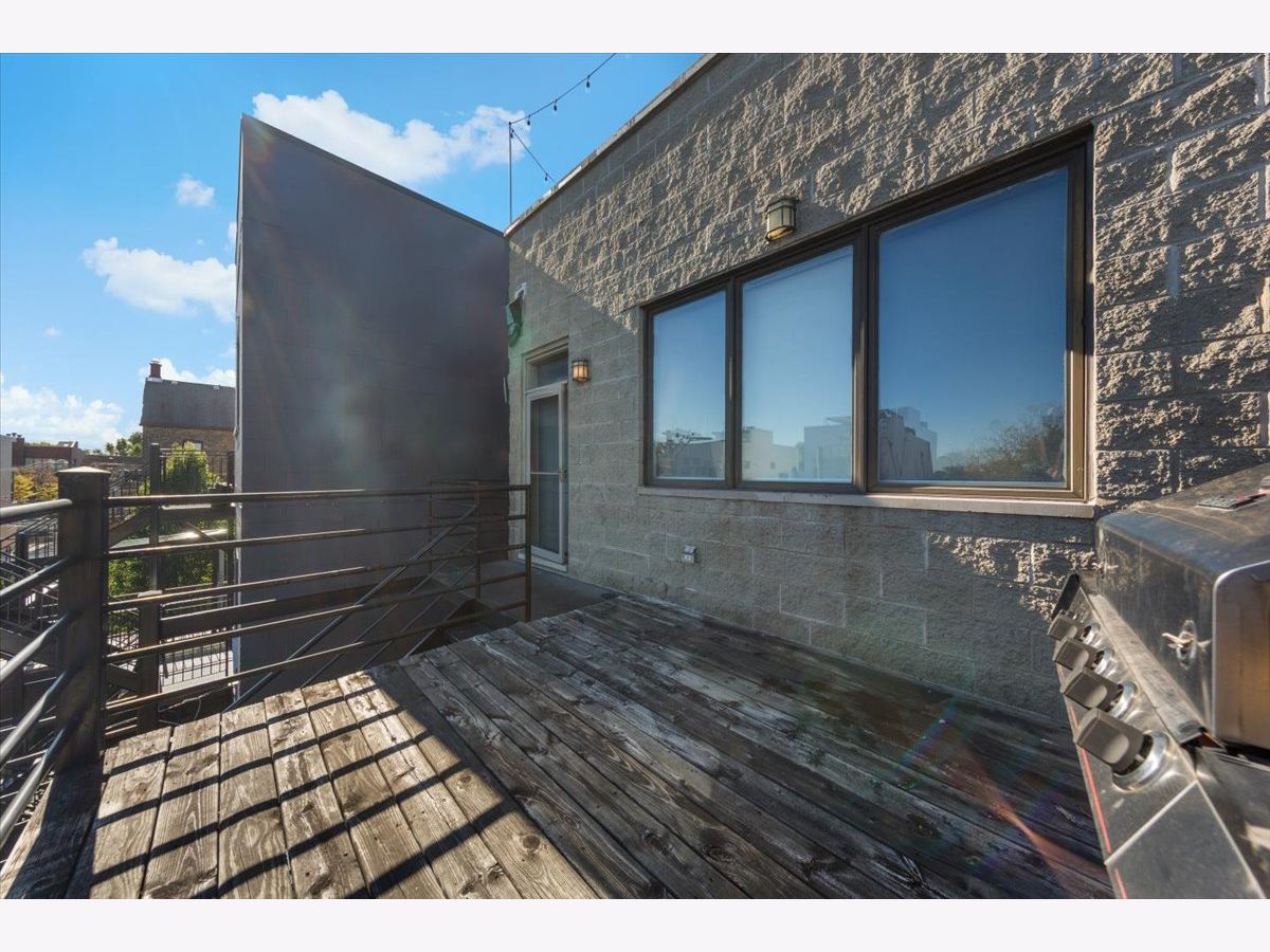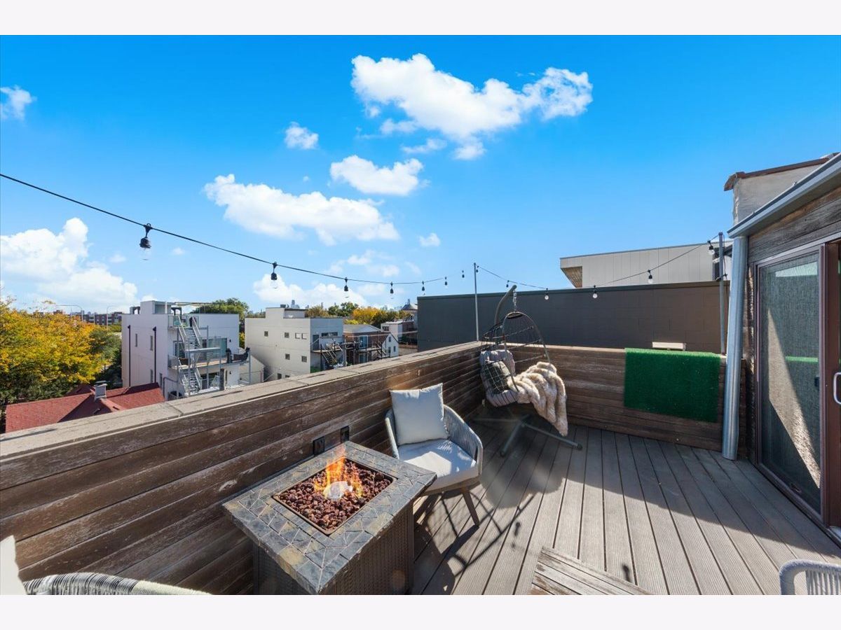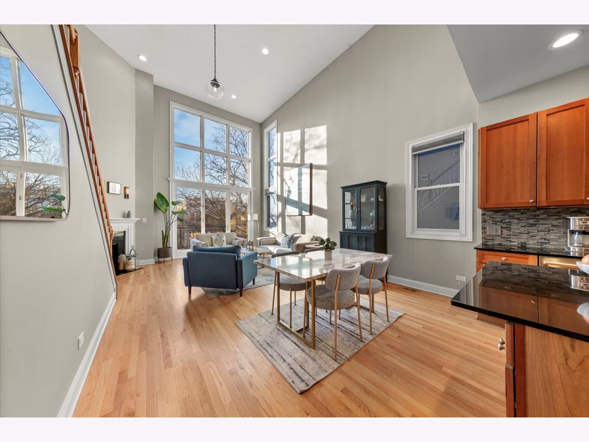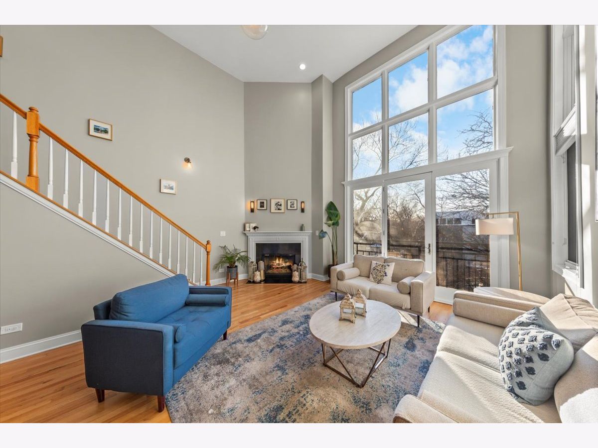Gorgeous penthouse duplex up in highly desirable Bucktown. Soaring 20 ft. floor to ceiling windows flood the space with incredible natural light. Two living spaces! Kitchen features stainless appliances, shaker cabinets, stone countertops and island seating and is ideally open to the oversized living/dining space. Plenty of room for a dining table and separate seating area. Don't miss the lovely fireplace and hardwood floors. Huge upstairs family room with skylights and modern half bath that leads directly to large deck with city views! Primary bedroom and en suite bath; dual vanity sinks, separate tub and shower. Nicely sized second bedroom and updated hall bath. Garage parking and storage included. Washer/Dryer 2024, Furnace 2025 and New roof (2024) and tuckpointing (2023). Walk to wonderful Bucktown shops, Holstein Park, restaurants and transportation.