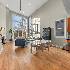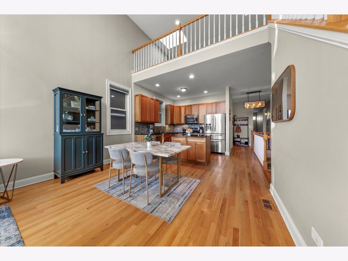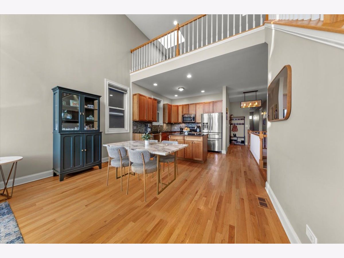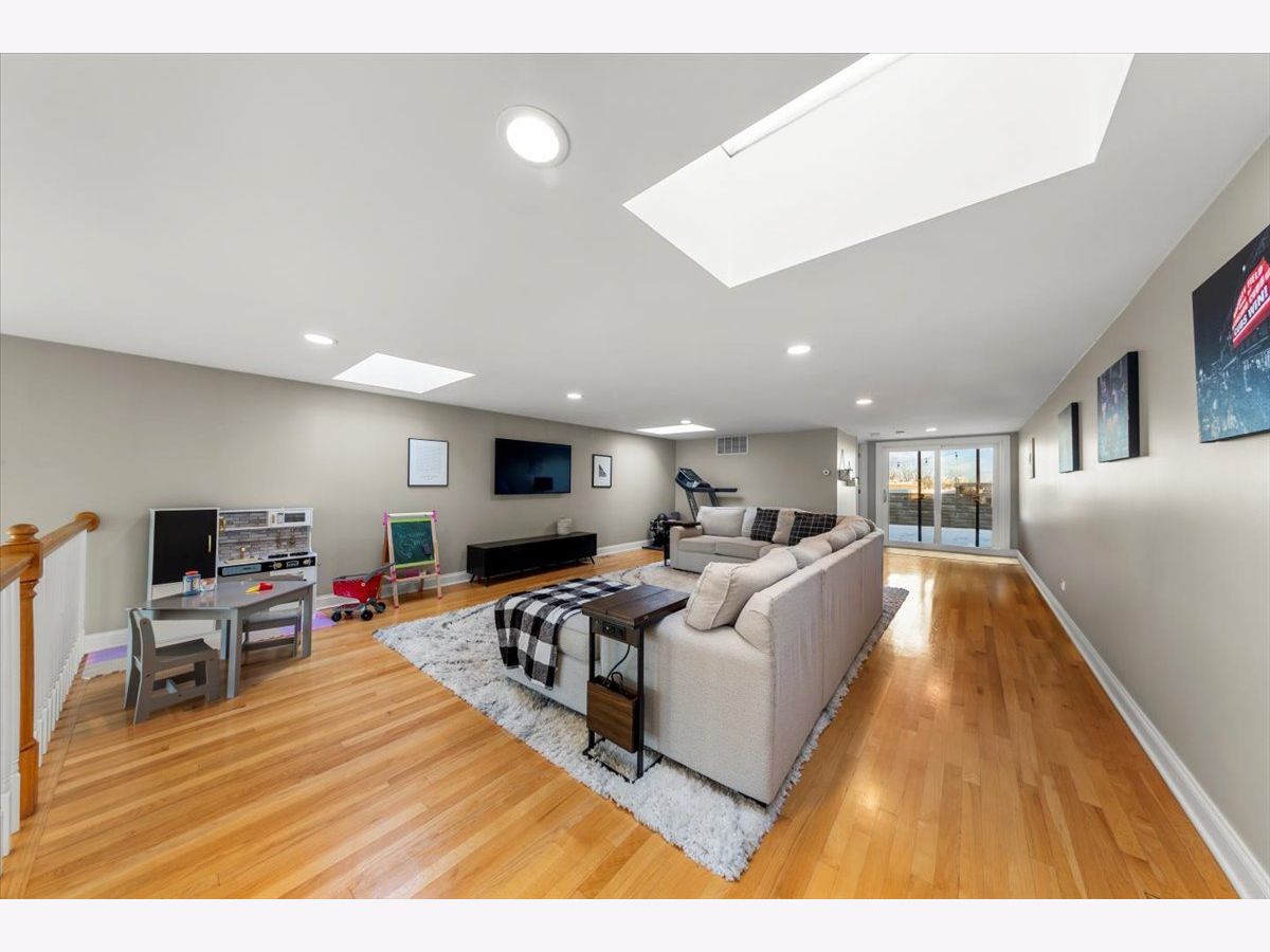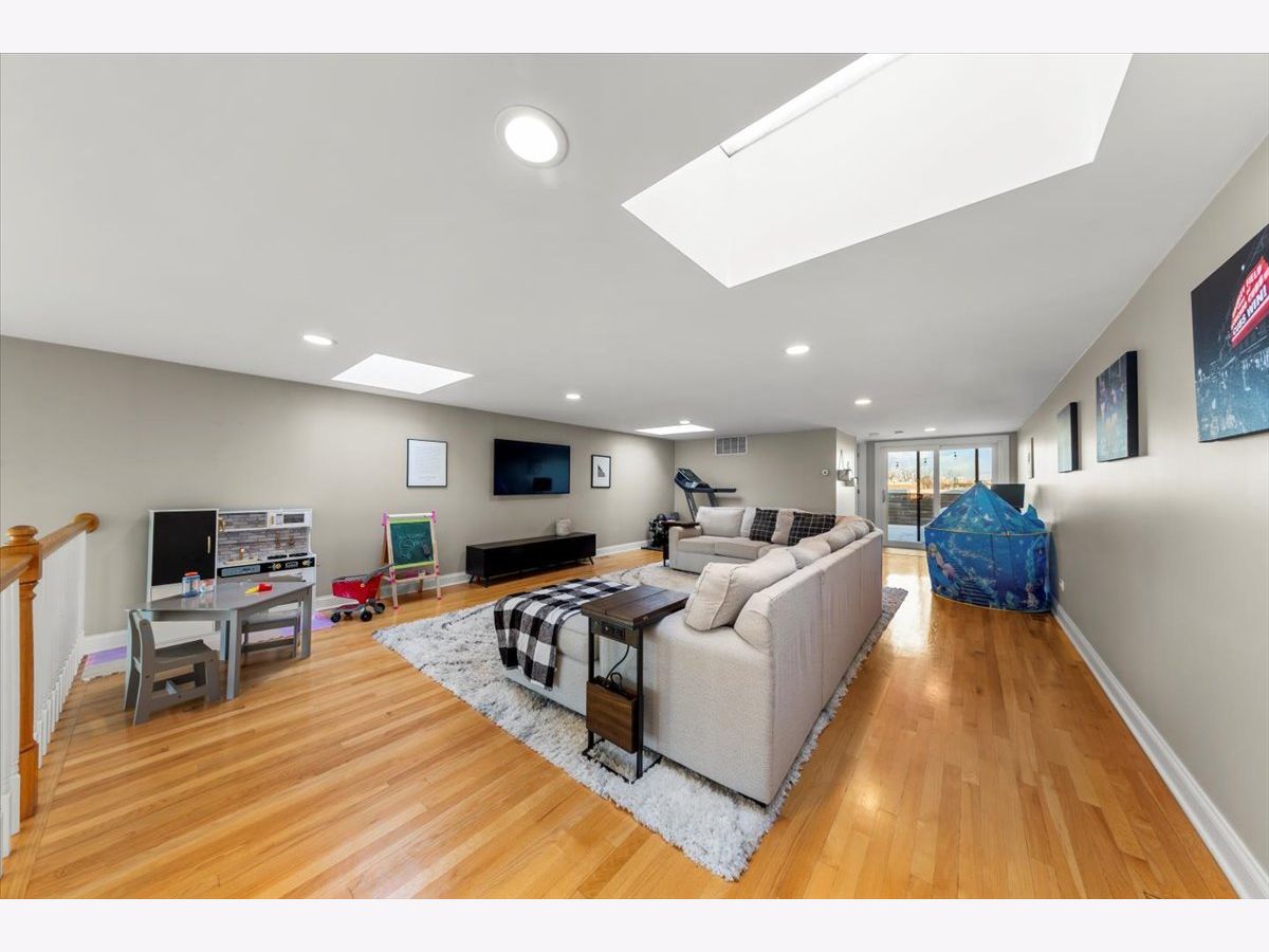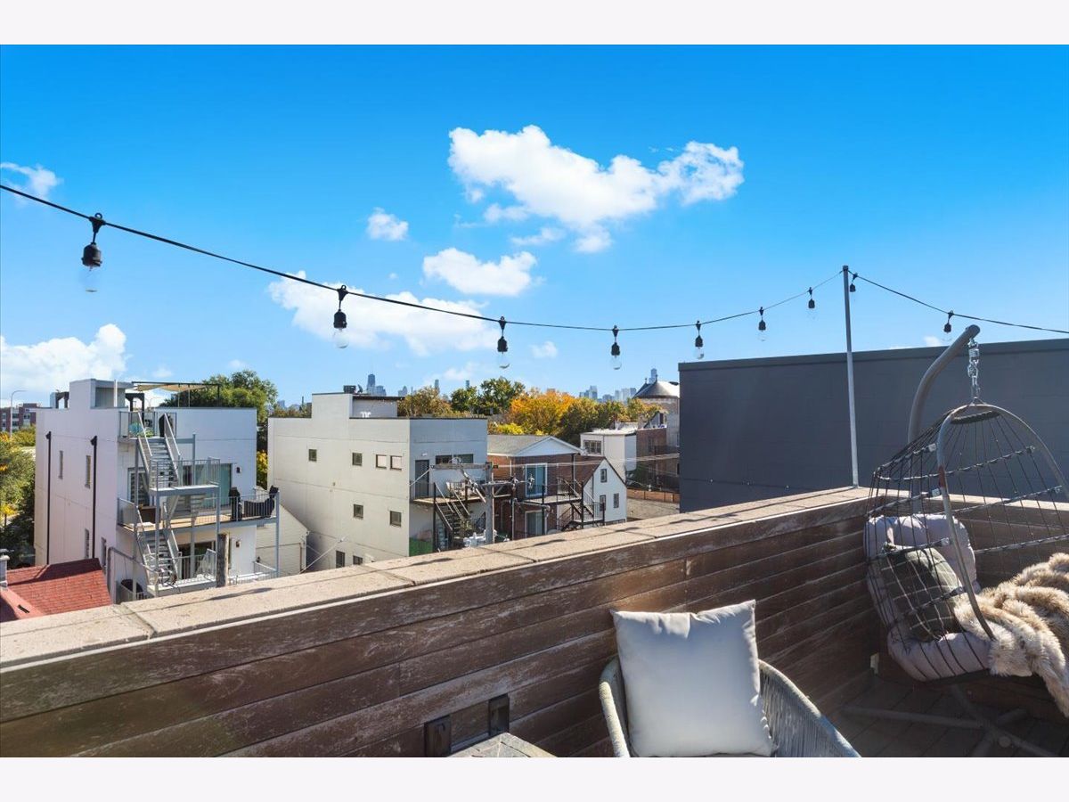 Gorgeous penthouse duplex up in highly desirable Bucktown. Soaring 20 ft. floor to ceiling windows flood the space with incredible natural light. Two living spaces! Kitchen features stainless appliances, shaker cabinets, stone countertops and island seating and is ideally open to the oversized living/dining space. Plenty of room for a dining table and separate seating area. Don't miss the lovely fireplace and hardwood floors. Huge upstairs family room with skylights and modern half bath that leads directly to large deck with city views! Primary bedroom and en suite bath; dual vanity sinks, separate tub and shower. Nicely sized second bedroom and updated hall bath. Garage parking and storage included. Washer/Dryer 2024, Furnace 2025 and New roof (2024) and tuckpointing (2023). Walk to wonderful Bucktown shops, Holstein Park, restaurants and transportation.