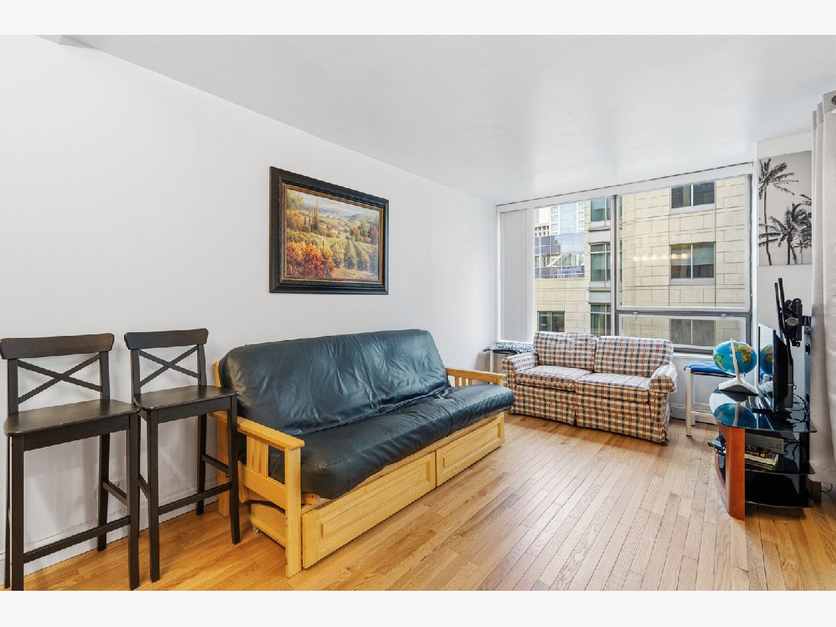 Bright, well-appointed studio in the heart of Streeterville-just steps from Michigan Avenue's world-class shopping, dining, and entertainment. This inviting home features beautiful real hardwood floors that run throughout most of the space, adding warmth and character. The living area includes custom built-in cabinets, offering both style and smart storage solutions. The sleeping area is complemented by a thoughtfully designed closet with high-quality organizers to maximize space and functionality. The updated kitchen boasts sleek stainless steel appliances, crisp white cabinetry, and a modern tile backsplash-perfect for both everyday living and entertaining. This full-amenity building offers a 24-hour doorman for convenience and peace of mind, a stunning rooftop pool with city views, and on-site parking available. Enjoy the best of city living in one of Chicago's most sought-after neighborhoods!