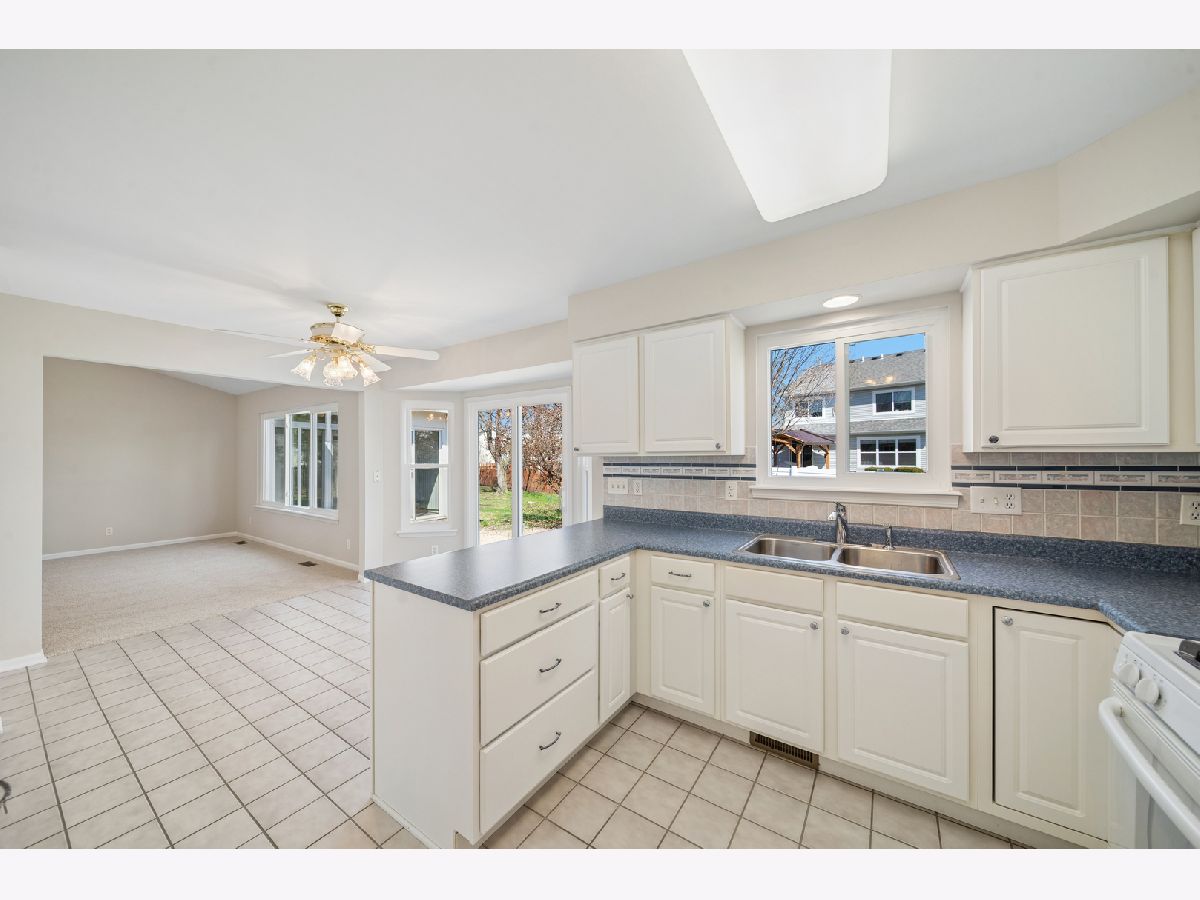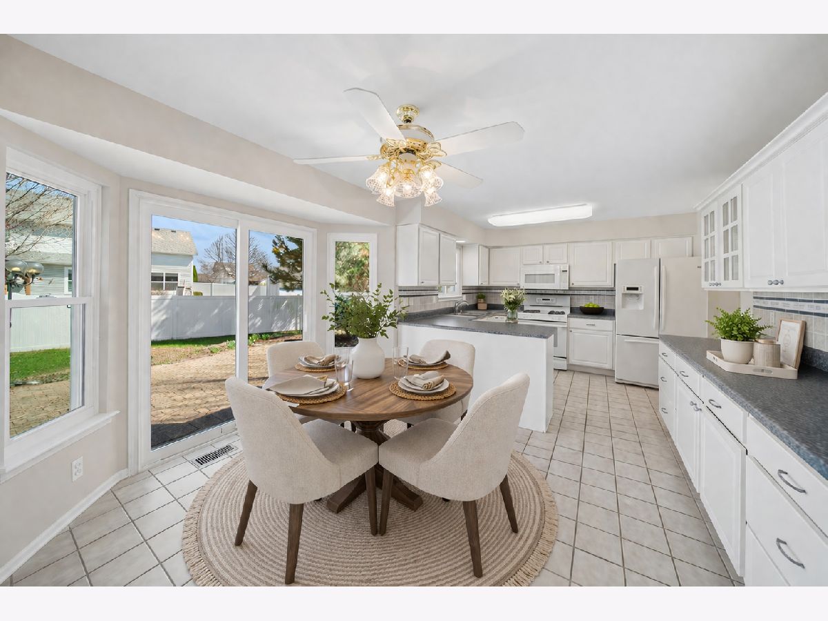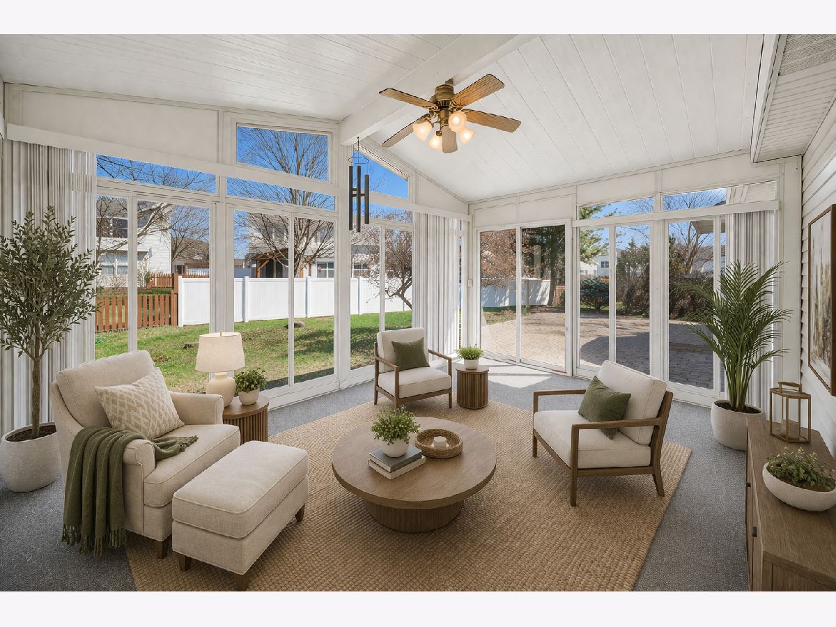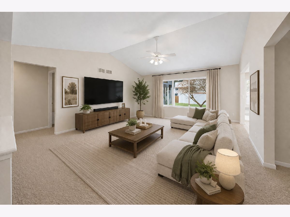 Tucked into the highly desirable Waterford Oaks neighborhood of North Aurora, this freshly painted ranch offers the open floor plan, quiet cul-de-sac location, and easy one-level living so many Kane County buyers are searching for. With 1,860 square feet, 3 bedrooms, 2 full bathrooms, and brand new carpet throughout, this single-story home blends comfort, function, and everyday convenience. Bright, inviting living spaces make this home feel warm and welcoming from the moment you step inside. The eat-in kitchen offers a beautiful view of the backyard, abundant cabinet space, and the extra countertop space buyers always appreciate for cooking, serving, and daily life. Just off the kitchen, the spacious family room is filled with natural light from the large picture window and provides the perfect gathering space for relaxing or entertaining. The private primary suite offers a peaceful retreat with its own full bath. The third bedroom offers excellent flexibility and was most recently used as an office/den, but it can easily serve as a bedroom, guest room, or additional living space depending on your needs. The full basement gives buyers the flexibility they want for storage, recreation, workout space, or future finished living area. One of the home's standout features is the bright sunroom, which extends the living space and flows beautifully to the spacious patio and private backyard surrounded by mature trees. Roof replaced in 2023 and windows replaced in 2021. Located just minutes from parks, the elementary school, Woodman's, Randall Road, and I-88, this is a rare opportunity to own a North Aurora ranch in one of the area's most sought-after neighborhoods.