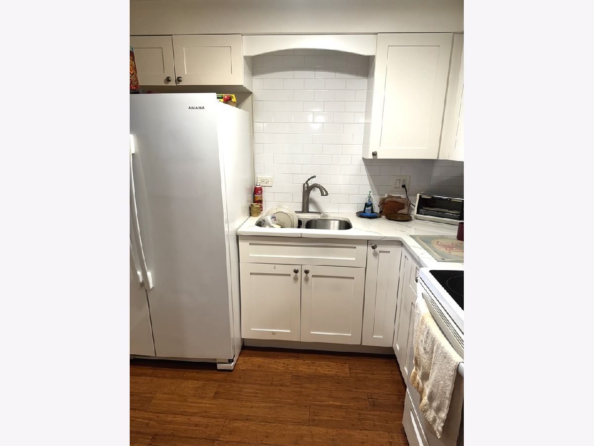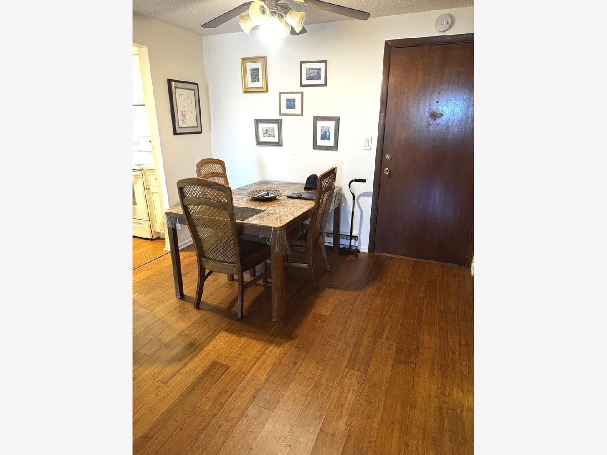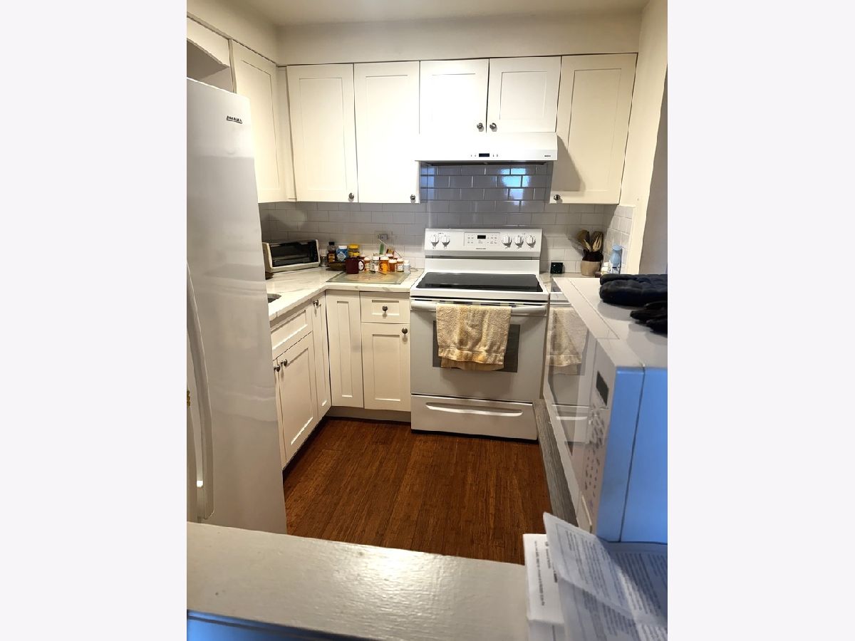 Cute, cozy condo. The living room, bedroom and dining are nice sizes. Kitchen has white appliances and quartz counters. New flooring throughout. Washer and dryer are next to the unit. It is a security building and well taken care of. The sheltered garage space is very handy. You can't live this nicely and so inexpensive anywhere in this area. Make an appointment and see. One block from Reuters Bakery and Caputo and Top Butcher Market.