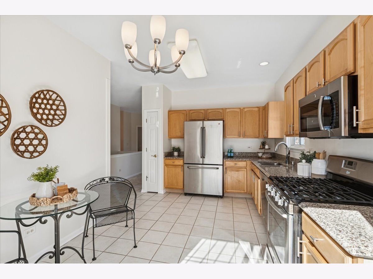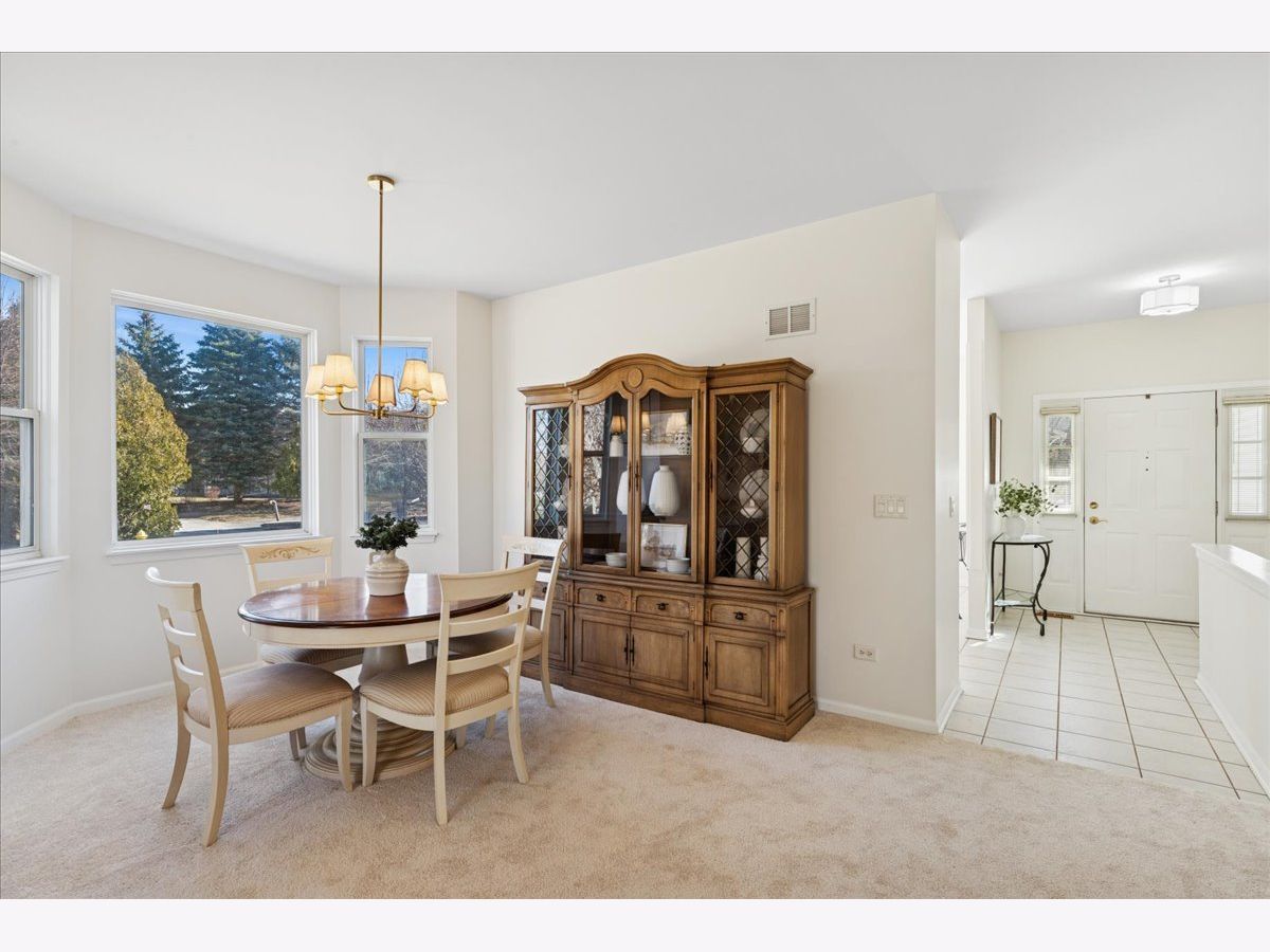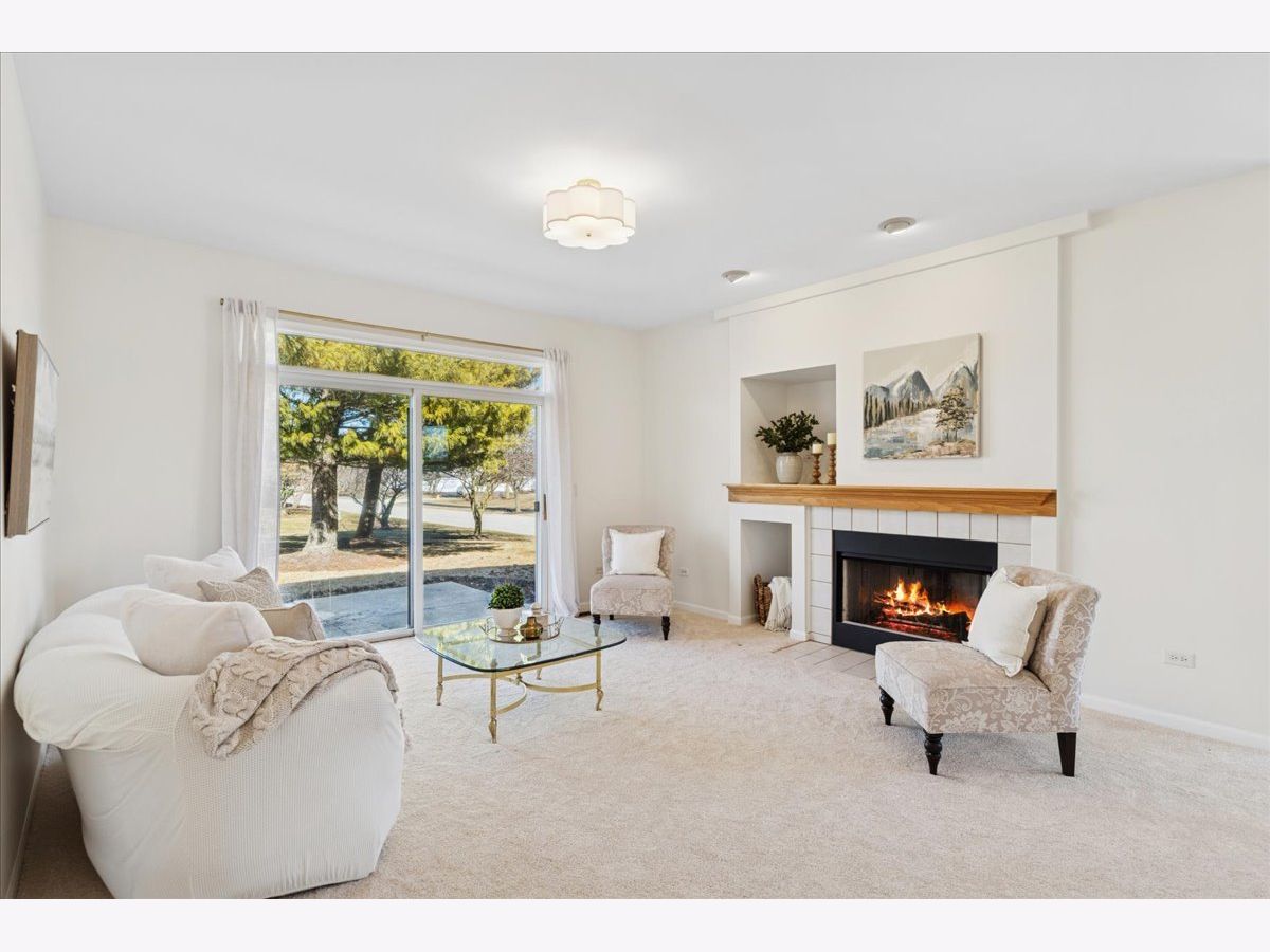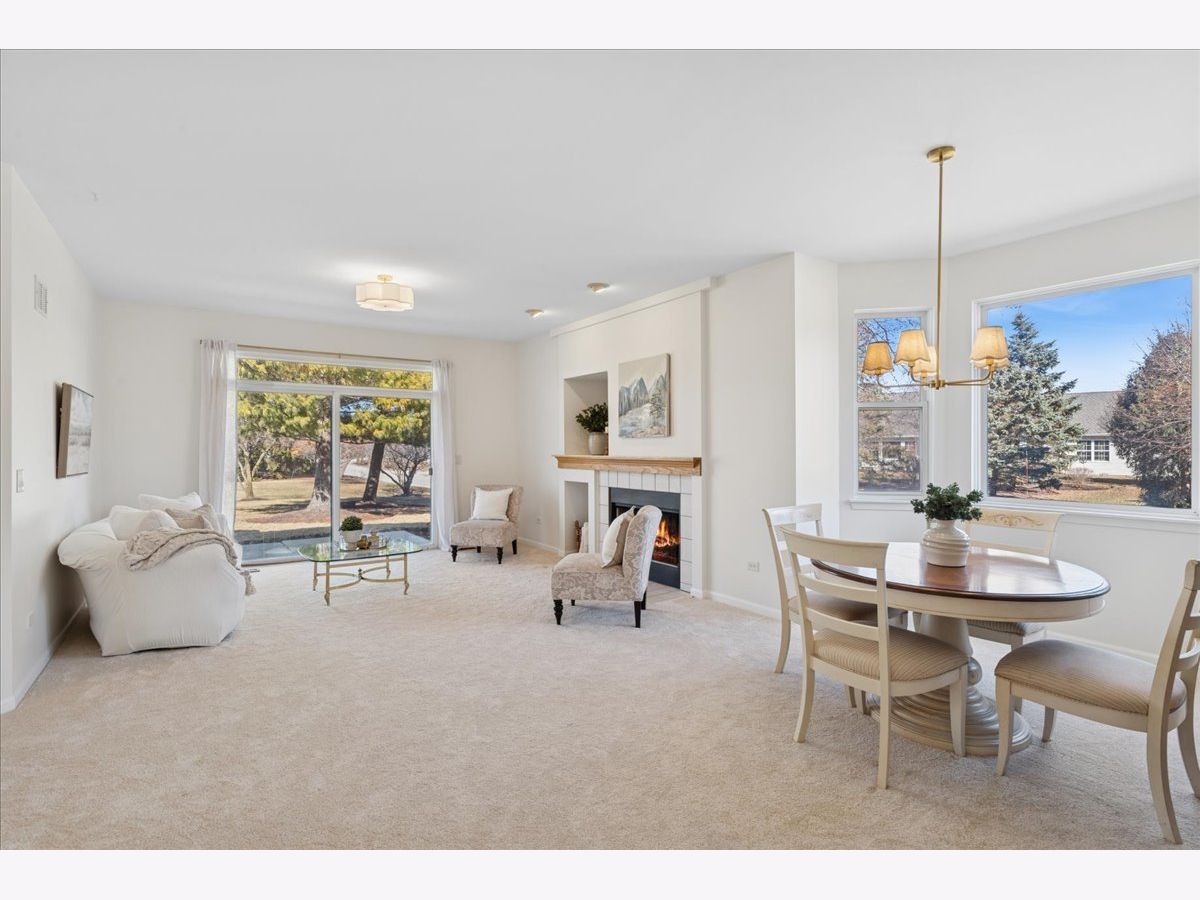 Welcome home to this beautifully updated premium end-unit ranch townhome in the highly sought-after 55 plus community of Carillon North-a place where you or your loved one can enjoy resort style living everyday. The spacious living room is bathed with natural light and features a cozy fireplace, creating a warm and inviting gathering space that is perfect for entertaining or just relaxing. It flows seamlessly into the dining area that is highlighted by a charming bay window. A sliding glass door in the living room opens to the backyard space, extending the living area outdoors and making it easy to enjoy fresh air and nature views. The bright and inviting kitchen offers ample cabinetry, generous countertop space, a pantry along with a comfortable eating area and direct access to another private patio-ideal for morning tea, casual meals, or enjoying fresh air. Down the hall, you'll find a spacious primary bedroom retreat with a private en-suite bath and a generous walk-in closet. An additional bedroom offers flexibility as a guest room, home office, or cozy reading nook. A convenient laundry closet nearby completes the space, adding everyday comfort and ease. The fully finished basement practically doubles your living area with a spacious family room, an additional bedroom, a full bath, large walk-in closet and a versatile flex room-ideal for a home gym, music room, office, or creative space-plus abundant storage, making it perfect for guests, hobbies, or relaxation. Recent updates include (2026) brand-new light fixtures, main level carpet, fresh neutral paint throughout, hot water heater (2019) creating an easy move-in transition. Living in Carillon North means enjoying an active 55+ lifestyle with exceptional amenities: a scenic golf course, tennis and pickleball courts, and a vibrant clubhouse featuring a heated indoor pool, hot tub, fitness classes, computer room, library, card groups, social clubs, and year-round events. Nearby walking paths and hiking trails add to the appeal. All of this, plus easy access to Metra, I-94, and fantastic shopping, makes this home a perfect blend of comfort, community, and convenience. Come live your best life at Carillon North!