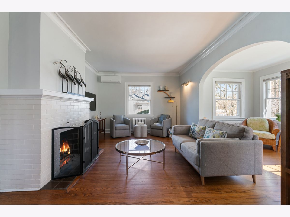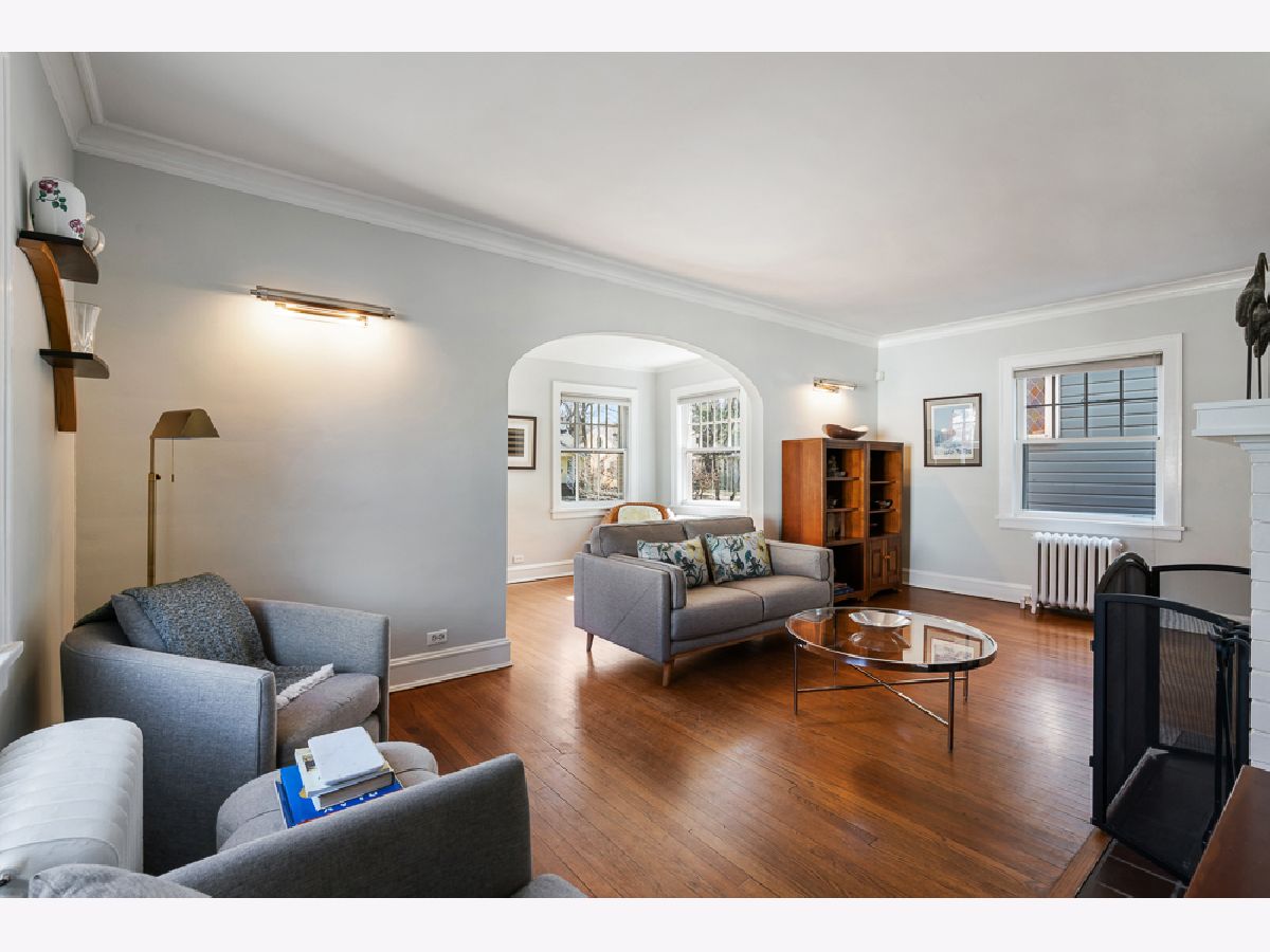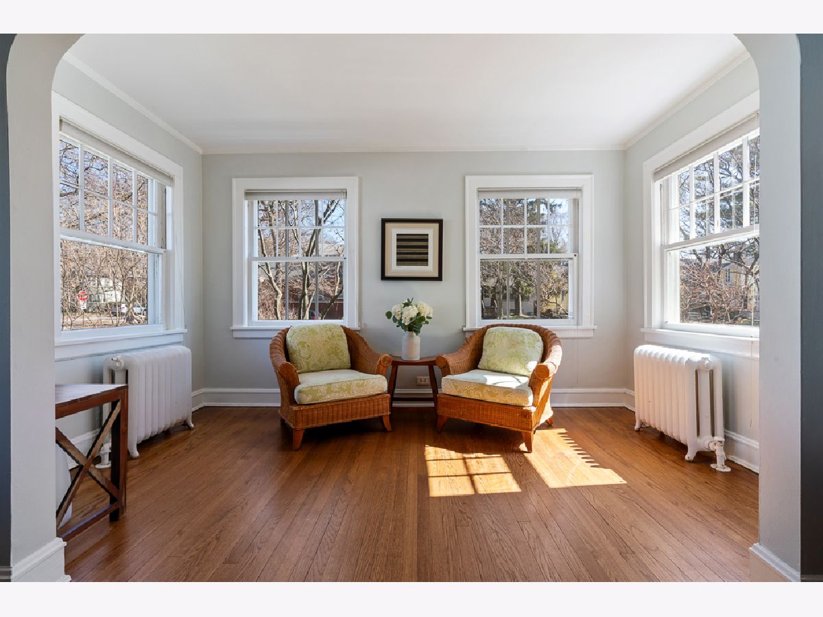 2336 Grey Avenue has been home to just three families since 1917, a quiet testament to how much people love living here. The brick exterior, green shutters, and slate walkway draw you in from the street, and once inside it is easy to understand why people stay. Step through the front door and the original archways and hardwood floors set a tone that is warm and welcoming. The rainbow windows, original to the home, are known for the beautiful quality of light they bring in throughout the day. The living room with its wood-burning fireplace flows through an arch into a sun-drenched sunroom, perfect for morning coffee or an evening read. The formal dining room with wainscoting connects to the kitchen, and three well-proportioned bedrooms upstairs are bright, quiet, and full of personality. A freshly updated basement rounds out the home with flexible bonus space for an office, recreation, or storage. Outside, a brick patio, fully fenced backyard, detached 2-car garage, and old-growth trees that turn spectacular in fall. For buyers looking to expand, two sets of architectural plans are already drawn up adding up to two bedrooms, additional baths, and expanded kitchen and living space. Four blocks to Central Street's independent shops, restaurants, and coffee roasters. Five minutes to the Metra. The lakefront, parks, and Northwestern campus all within easy reach. The kind of home and neighborhood that people find very hard to leave.