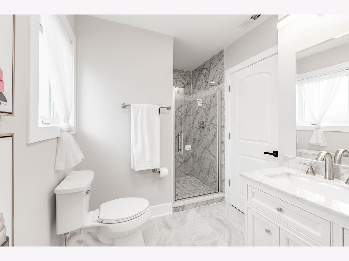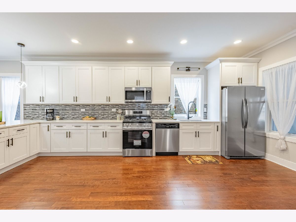 Exquisite full-gut rehab blending timeless bungalow charm with modern luxury. A brand-new dormer creates a full second level featuring a lavish primary suite with whirlpool tub, separate glass shower, and double vanity, plus two additional bedrooms and a full bath. The main level boasts an open-concept living/dining area with rich hardwood floors, recessed lighting, and a chef's kitchen with custom cabinetry, sparkling granite counters, and a complete appliance package. An additional bedroom and full bath provide flexible living options. The finished basement offers a stylish dry bar, full bath, laundry room, and drain tile system. Every detail is new: electrical, plumbing, studs, drywall, concrete side driveway, dual A/C units, and more. A true move-in ready home designed for comfort and sophistication.