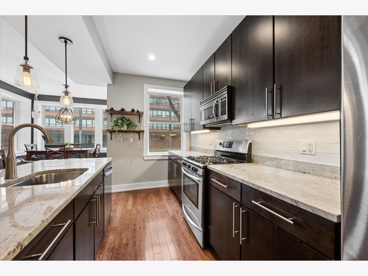 Welcome to this RARE find in amazing location in Ukrainian Village/Wicker Park, perfectly situated to take advantage of all both neighborhoods have to offer! Bright and spacious 3 bed / 2 bath home in a classic vintage brick building on the border of Ukrainian Village & Wicker Park. Set on an extra-wide lot, this home offers a thoughtful layout, generous room sizes, and abundant natural light throughout. A charming sunroom/dining nook provides the perfect space for a home office or formal dining space while filling the home with sunlight throughout the day. The modern, updated kitchen with some newer appliances (dishwasher (2025), refrigerator (2021), garbage disposal (2025)) opens to a large living room, creating an ideal layout for everyday living and entertaining. All three bedrooms are generously sized with ample closet space. The primary suite features a recently updated en suite bathroom complete with a walk-in shower & dual vanity. MANY updates throughout the home including adding custom built-in cabinets in the rear hallways to add storage and form a functional mudroom, second bathroom updates, freshly painted (2024), new kitchen backsplash (2023), new HVAC (2023), new washer/dryer (2023) and various light fixtures throughout the home. Enjoy a massive rear deck (composite decking redone in 2024) perfect for entertaining, plus a common, fenced grassy area below. Additional highlights include in-unit laundry, central air, a rare extra-large garage parking space, additional storage unit and hardwood floors throughout the home. Pet-friendly building with fenced dog area. Ideally located near the vibrant dining and shopping corridors of both Ukrainian Village & Wicker Park on both Division & Chicago!
