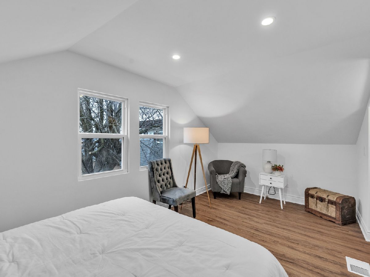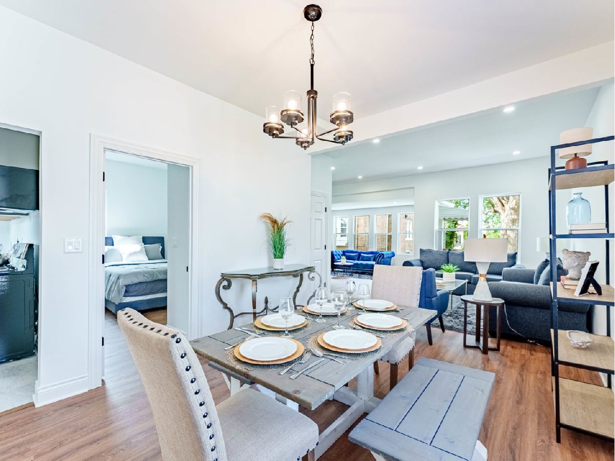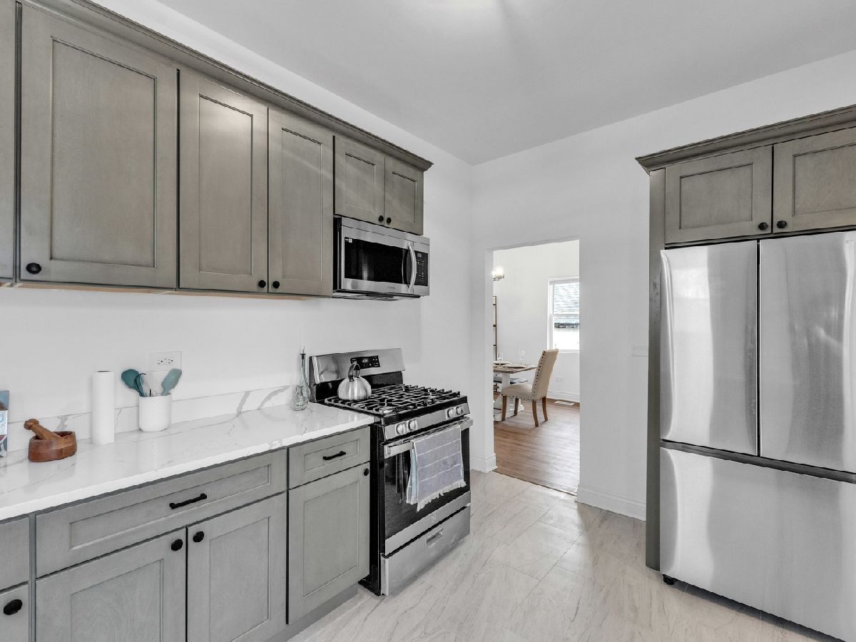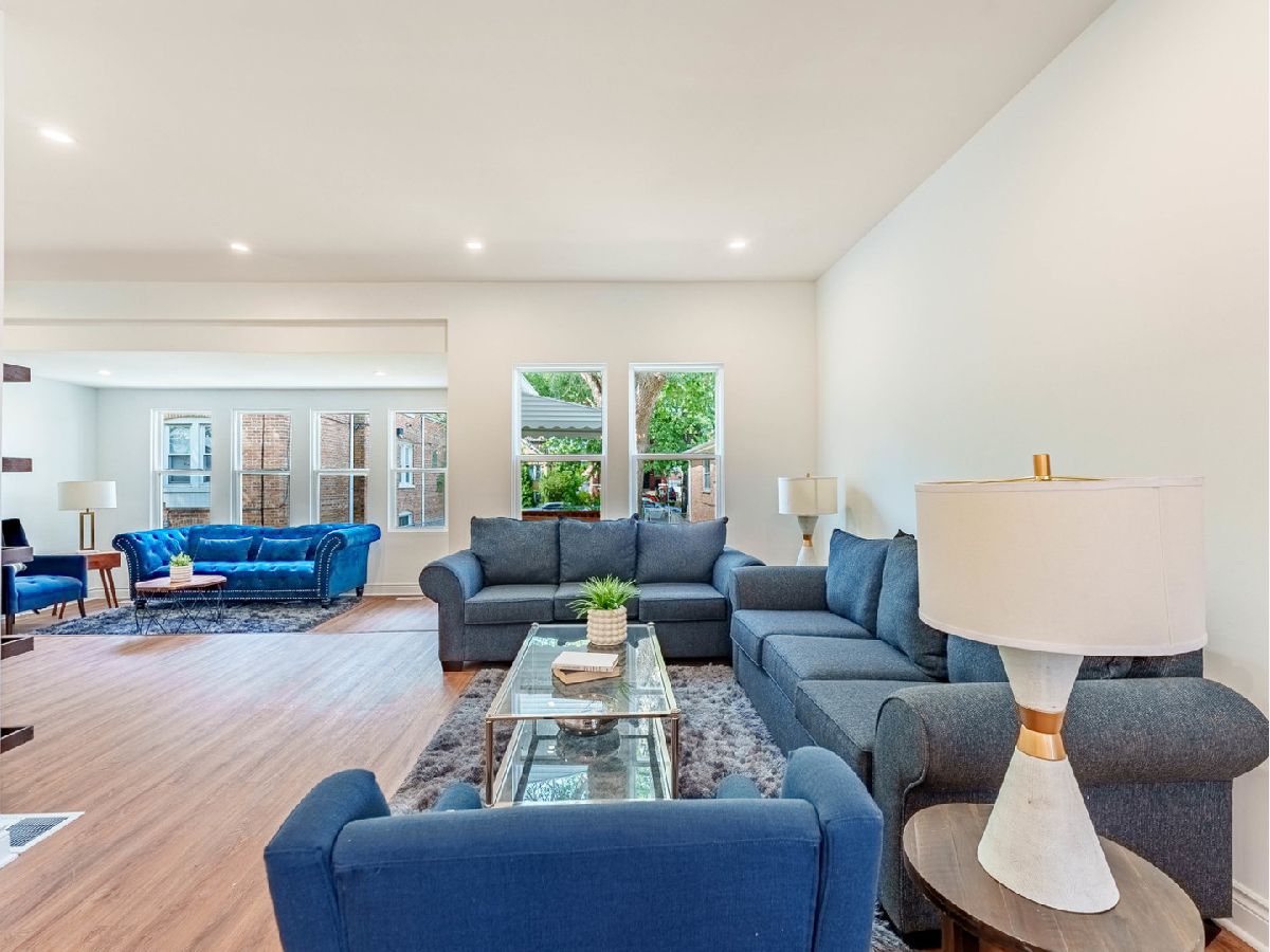 BRAND NEW REHAB - MOVE-IN READY! This beautifully remodeled home offers peace of mind with all-new electrical, plumbing, windows, and luxury vinyl plank flooring throughout. The bright and spacious main level features a large living room ideal for entertaining, a separate formal dining room, and a first-floor bedroom perfect for guests, extended family, or a home office. The stunning kitchen showcases trendy olive-green cabinetry, stainless steel appliances, and modern finishes-perfect for everyday living and hosting. A hardwood staircase adds warmth and character while leading to the second level. Upstairs, you'll find two additional bedrooms and a spacious primary suite complete with a private full bathroom and oversized closet, creating a true retreat. The full basement offers endless potential for future expansion and includes a private entrance, ideal for added living space or an in-law arrangement. Step outside to a generous backyard that feels like your own private oasis-perfect for gatherings, relaxation, and outdoor enjoyment. An incredible opportunity for first-time homebuyers to own a fully renovated home with room to grow. All showings must be scheduled through ShowingTime. SELLER IS A LICENSED ILLINOIS REAL ESTATE AGENT.