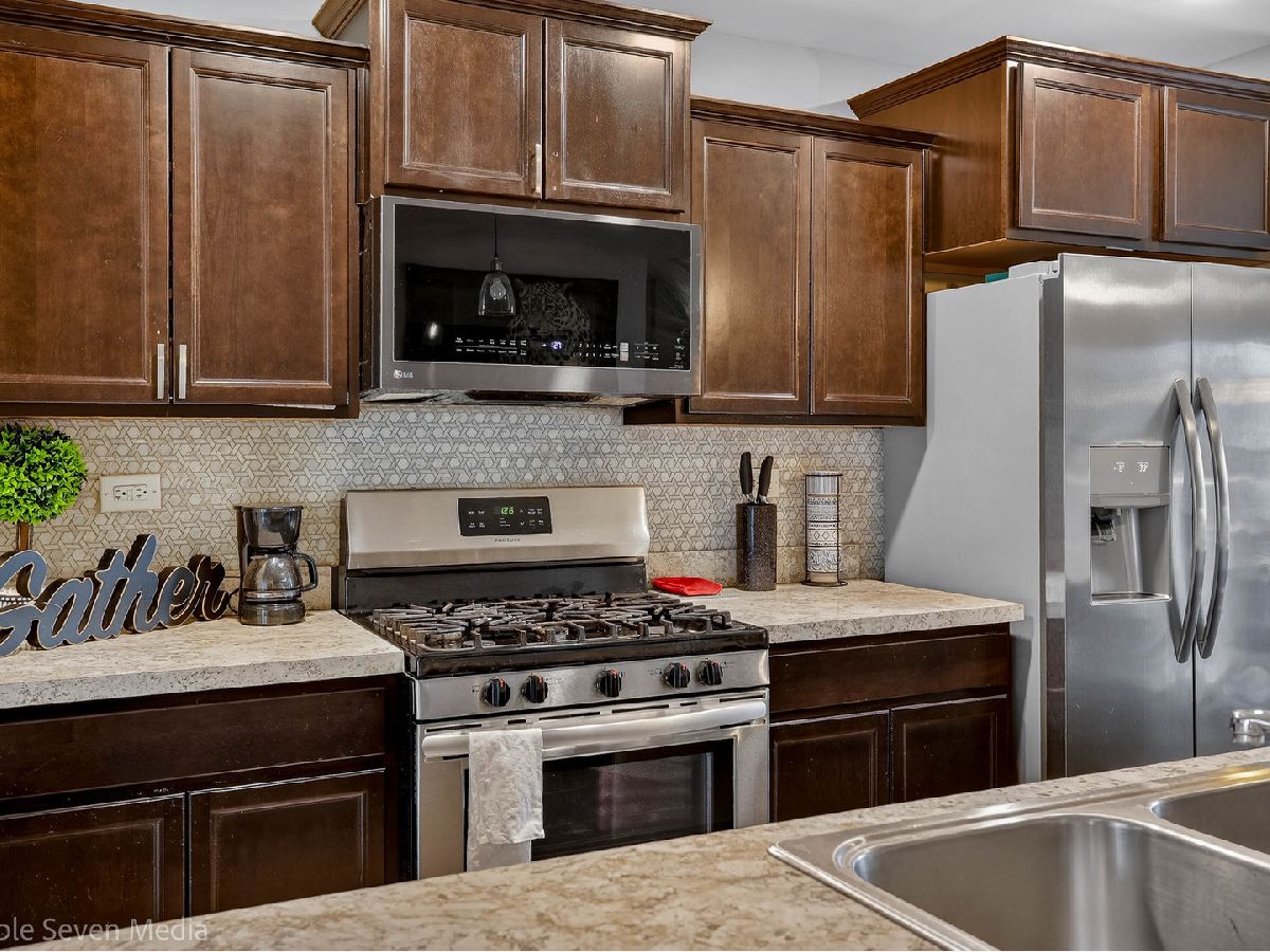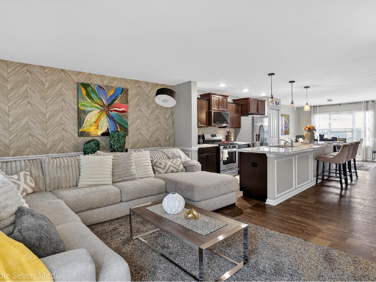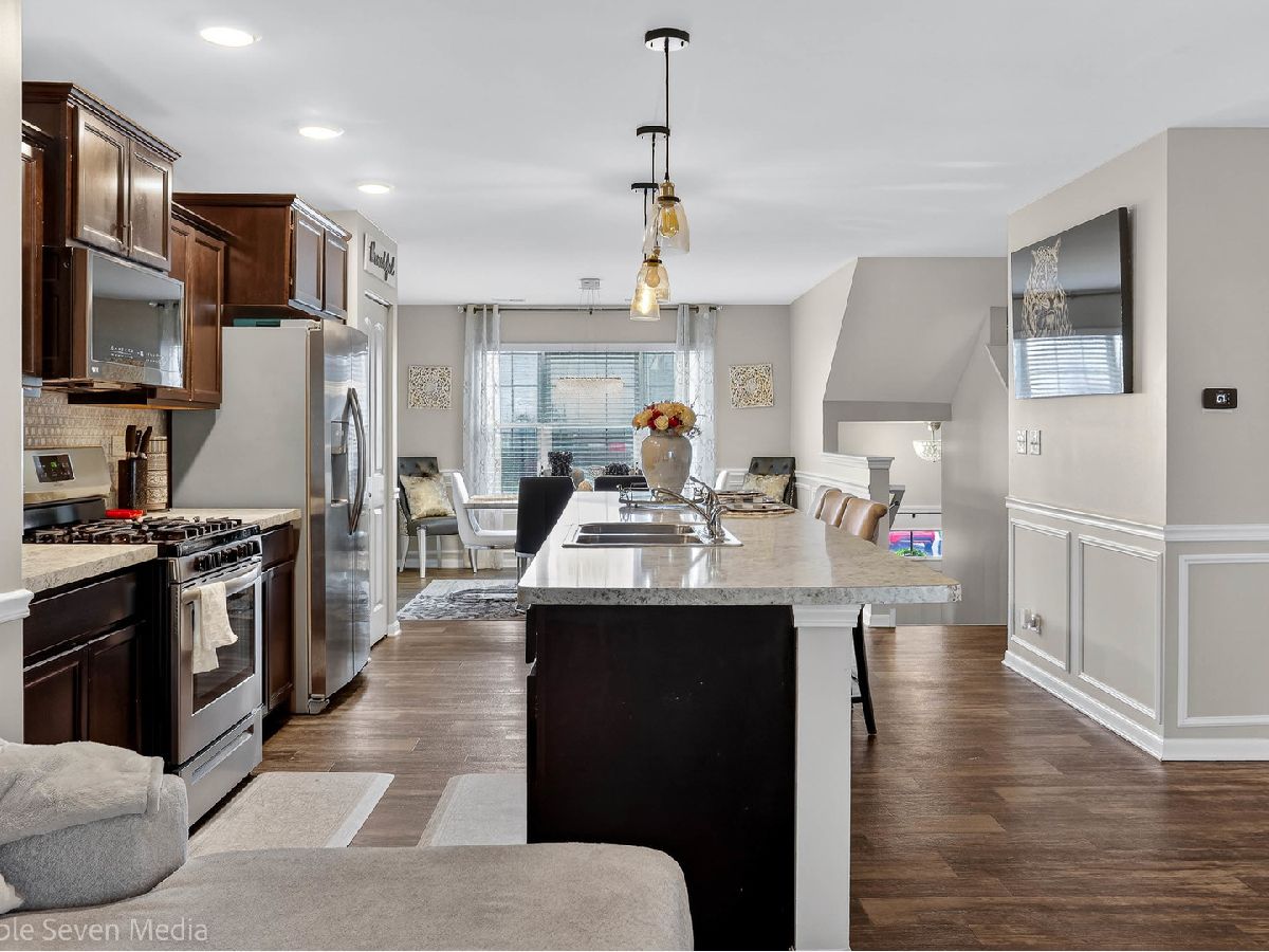 Stunning Garfield model townhome in highly desirable Cambridge Lakes Community! This vibrant 1,756 sq ft home offers 3 bedrooms, 2.5 baths, and a 2-car garage. The beautifully designed kitchen features designer cabinetry, stainless steel appliances and a grand island overlooking the living room and dining room, creating the perfect open-concept layout for entertaining. Upstairs, enjoy the convenience of second-floor laundry. The primary suite boasts a walk-in designer closet. The finished lower level provides flexible living space-ideal for a home office, family room, or play area. Situated on a professionally landscaped, low-maintenance homesite with scenic pond views. Residents enjoy resort-style amenities including a clubhouse, 12 lakes, 12 parks, fitness center, aerobics studio, pools, party room, indoor gymnasium, and miles of walking trails. NO SSA!