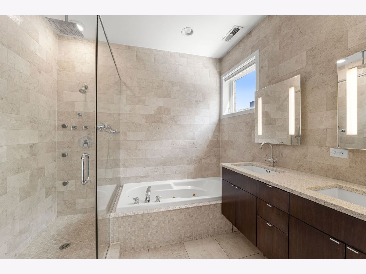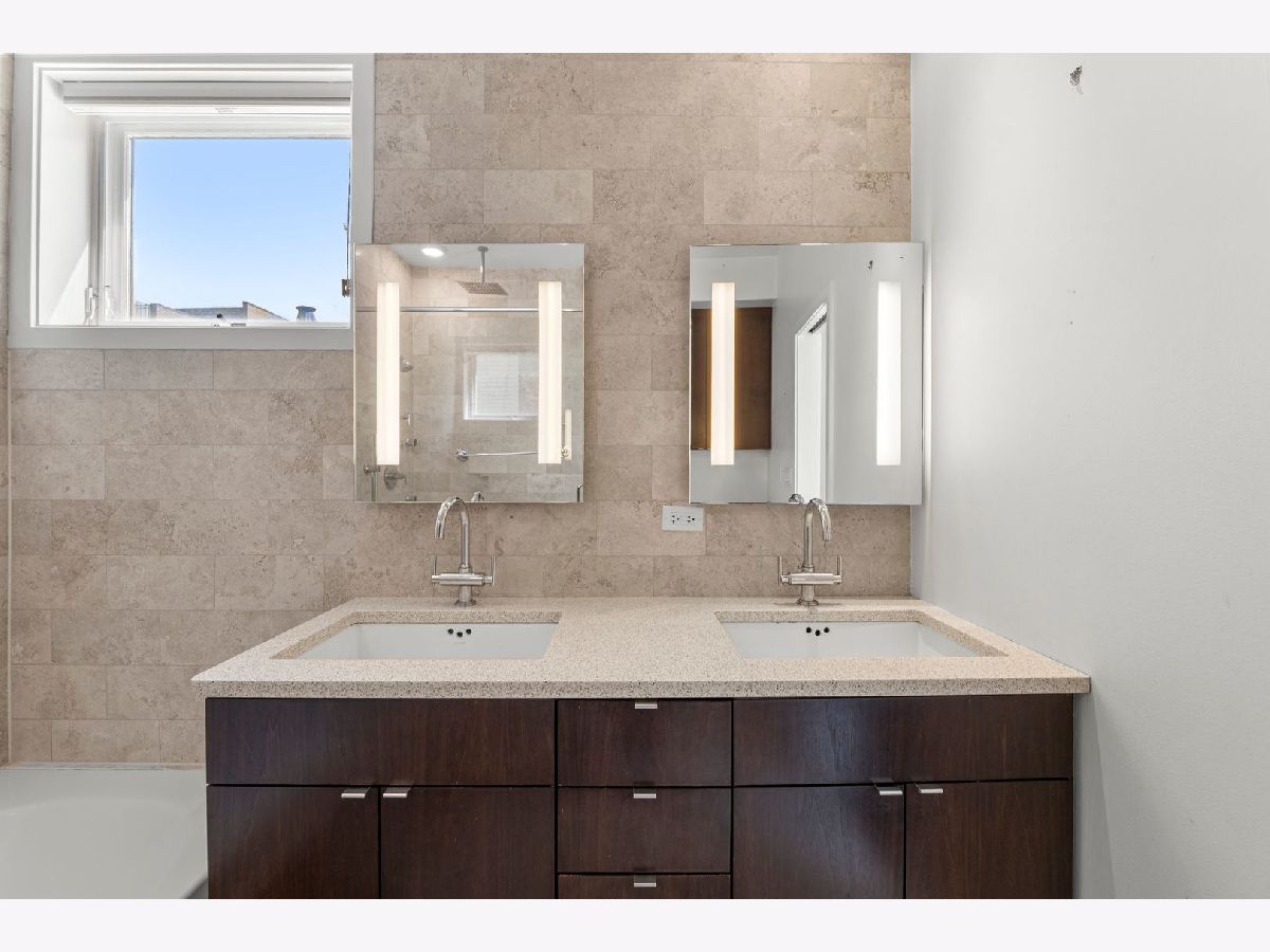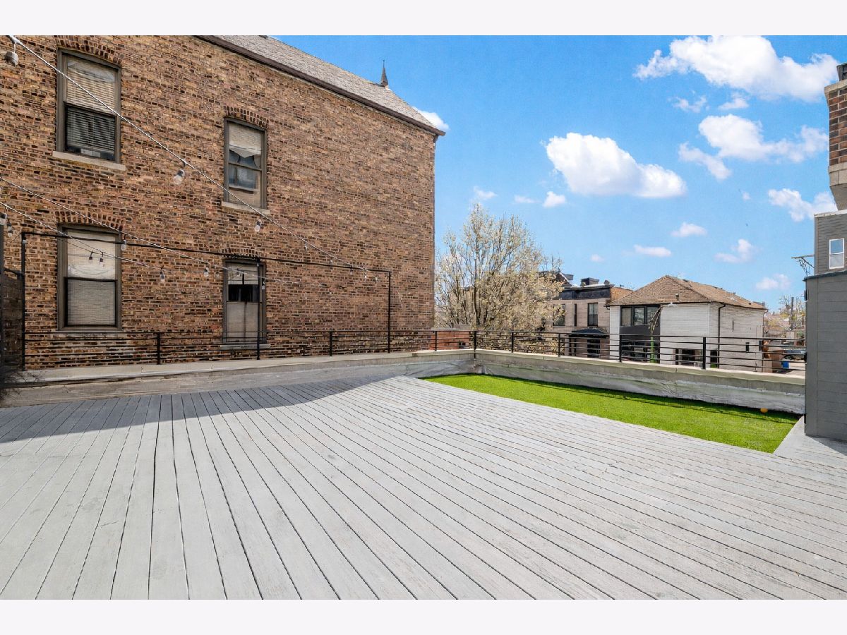 Thoughtfully updated 2BR/2 bath Bucktown condo in an elevator building. Unit is flooded with natural light and offers a unique open-concept floor plan creating a seamless flow between the living, dining, and kitchen spaces. Living room features a cozy gas fireplace, while fresh neutral paint and elegant wall moldings add warmth and sophistication. The beautifully updated kitchen is a true standout, showcasing ample cabinetry, sleek stone countertops, a built-in beverage fridge, a subway tile backsplash and an eat-in dining area. Two generously sized bedrooms; the primary bedroom features an en suite bathroom with dual sinks and spa like finishes. Two private outdoor spaces: an oversized covered balcony with a gas line and an expansive 900 sq. foot roof deck- perfect for upcoming warm summer months! Two garage parking spaces included in the price. Located in the heart of Bucktown, just moments from Western Ave, the Blue Line, The 606 Trail, Holstein Park, Agora Market, and easy access to I-90/94. Move in ready and sure to impress!
