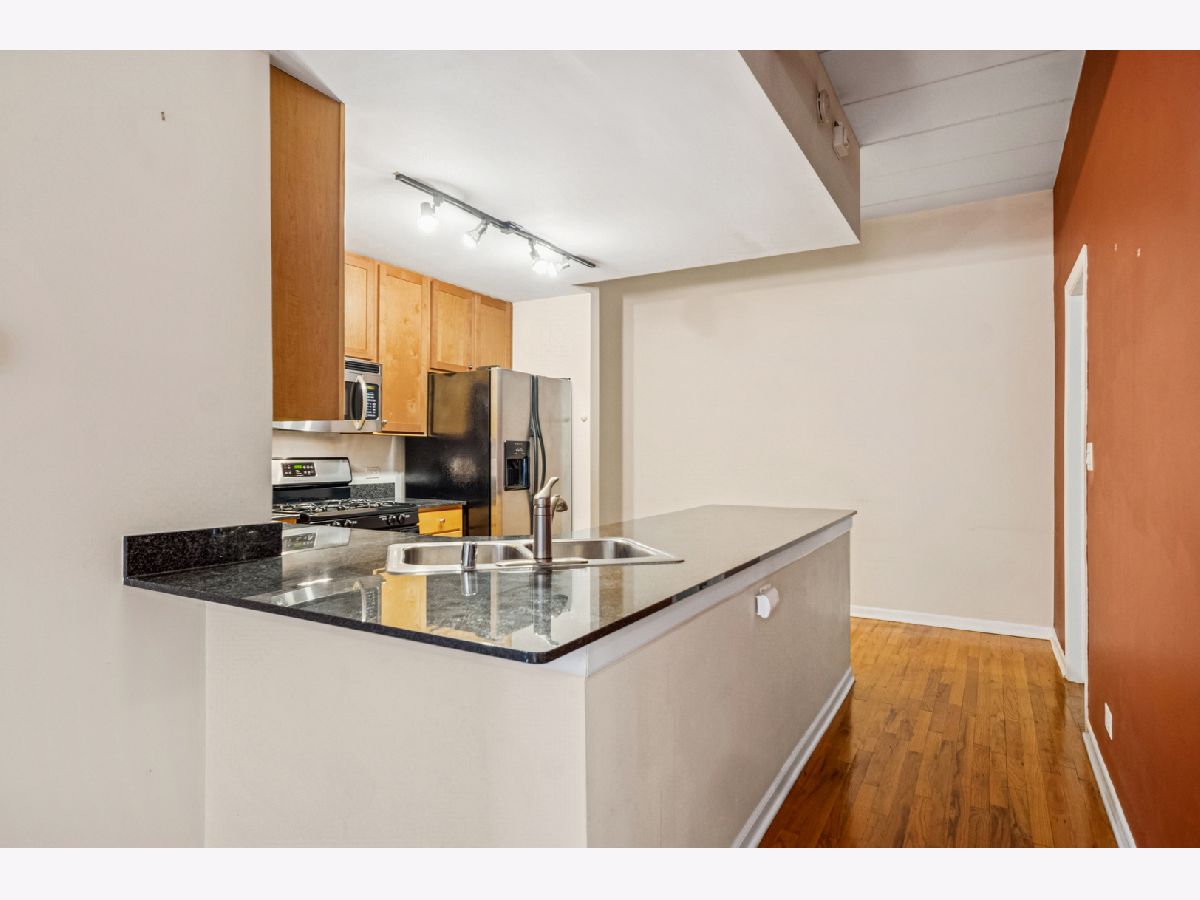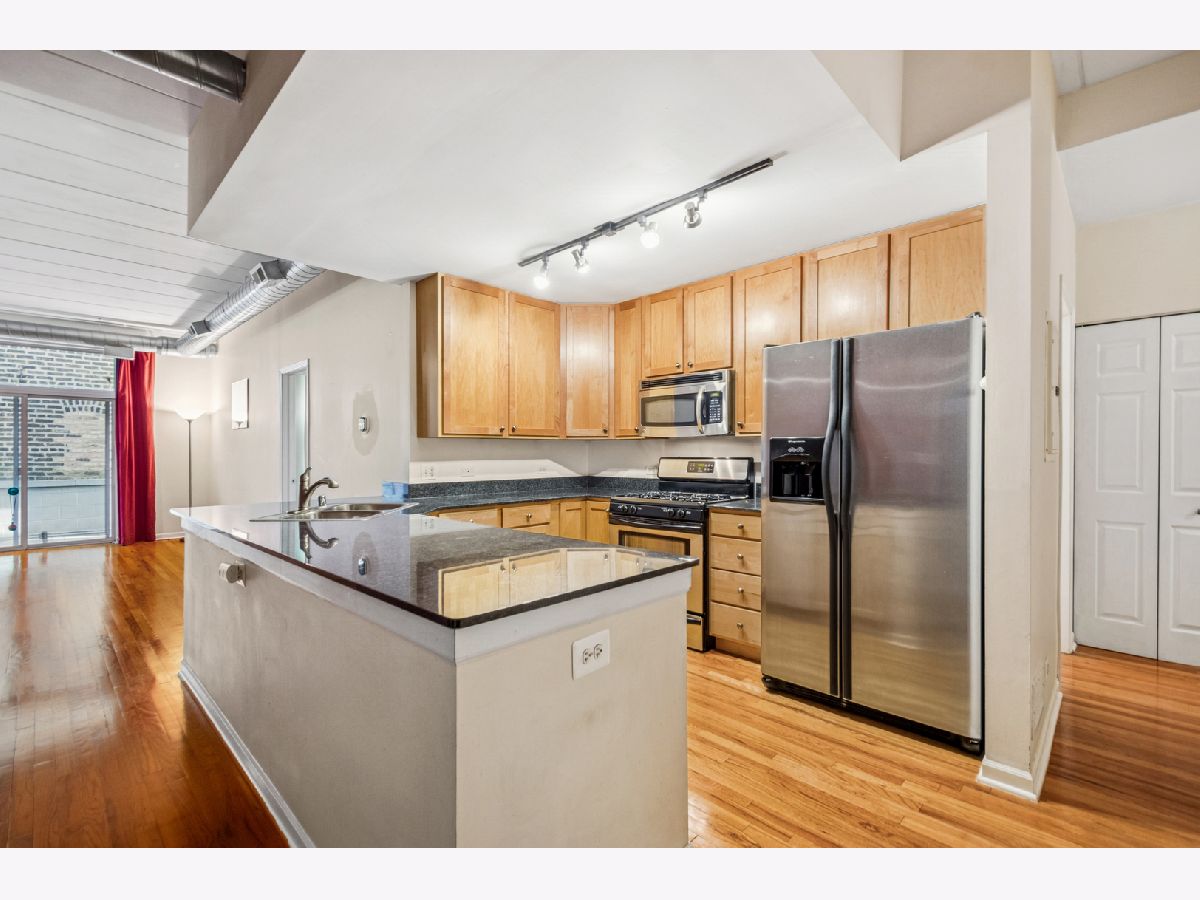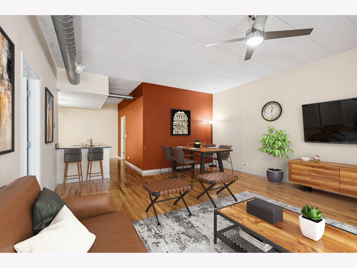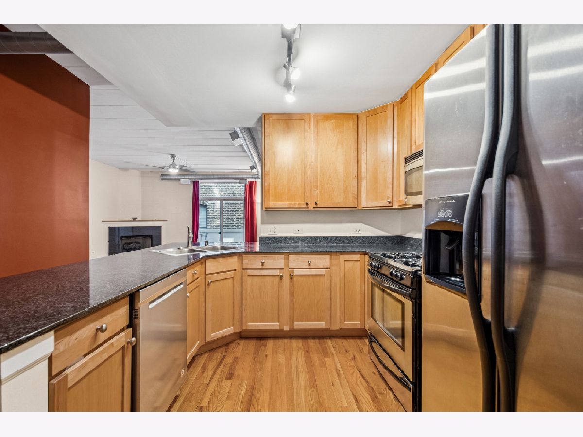 Amazing space, awesome location and a remarkable price for this split 2 bedroom soft loft located on quiet Elston Court, away from the activity of Elston Avenue. This unit has hardwood floors, 10 ft ceilings, fireplace, spacious kitchen with granite, stainless steel appliances, peninsula, 29x5 balcony off living room, large primary suite with walk-in closet. in unit washer/dryer and 1 heated garage parking Close to Metra, restaurants, shopping, heart of Bucktown. Great opportunity to live in secure intimate building.