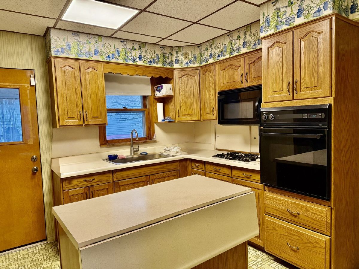 Neat and clean with a maintenance-free exterior and lovely front porch. This three-bedroom, one-bath featuring a spacious living room and a large eat-in kitchen with plenty of cabinets stove, microwave, and movable island included. Huge family room offers separate heat and a window A/C, sliding door leading to the deck and fenced yard. Additional highlights include a carport, storage shed, and major mechanical updates with the furnace, water heater, and water softener all new in 2021, along with roof approximately five years old, making this a well-kept and move-in-ready property.