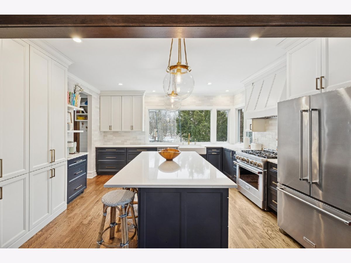 Welcome to 236 Maplewood Road, a beautifully maintained 1914 Colonial offering 5 bedrooms and 3 full, 2 half baths, set on a premier riverfront lot backing directly to the Des Plaines River. Lovingly cared for by only four owners, this home blends timeless character with thoughtful modern updates and tranquil views from nearly every window. Step inside to classic architectural details including original French doors and rich hardwood flooring. The beam-ceiling dining room sets a warm and elegant tone for gatherings. The gracious living room is centered around a custom oak mantel and gas fireplace, with expansive windows that frame serene views of mature trees and the river beyond. The fully renovated kitchen (2022) features custom Amish cabinetry, a stunning picture window overlooking the backyard, and updated finishes designed for both beauty and function. A newly added main-level powder room (2022) adds convenience. Upstairs, spacious bedrooms offer comfort and flexibility, including a beautifully renovated primary bath (2021) with quality finishes and thoughtful design. Custom closet systems enhance organization, and natural light continues to define the home's inviting atmosphere. The finished third floor provides a private bedroom and full bath - ideal for guests, extended family, or a quiet home office retreat. This level offers versatility while maintaining privacy from the main living areas. The finished basement includes a recreation room, providing additional living and entertaining space. Mechanical updates include a new attic furnace (2024), Bradford White water heater (2020), and backflow valve with ejector pump (2020). Step outside to a rear deck overlooking the river, perfect for entertaining or enjoying peaceful mornings. The professionally landscaped yard, new sod, and mature trees create a truly exceptional setting. A two-car garage completes the property. All of this is located within walking distance to the train, award-winning schools, parks, and charming local shops.