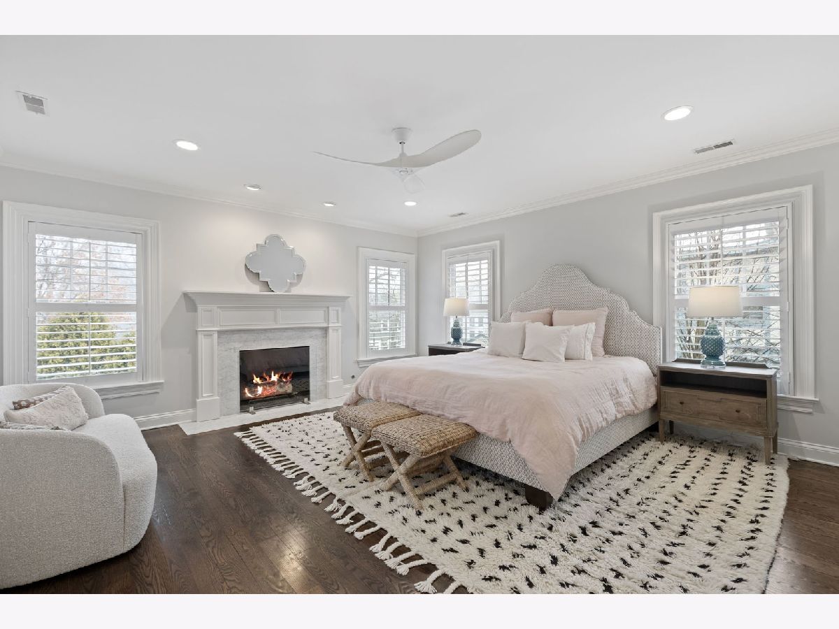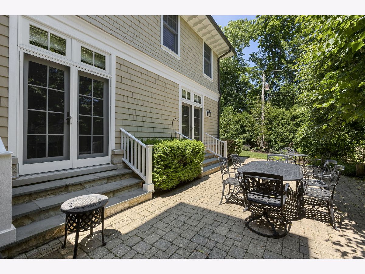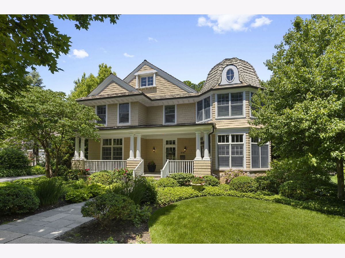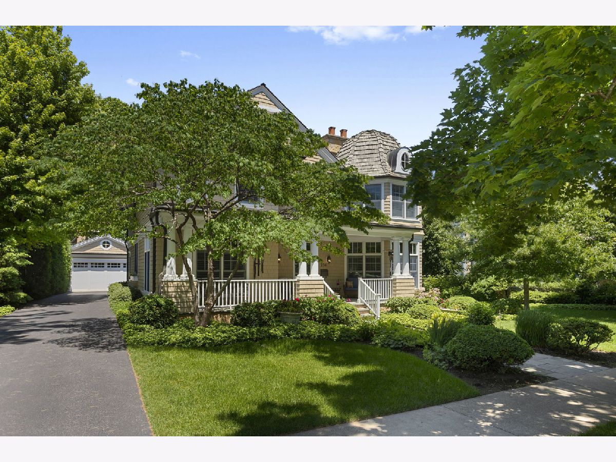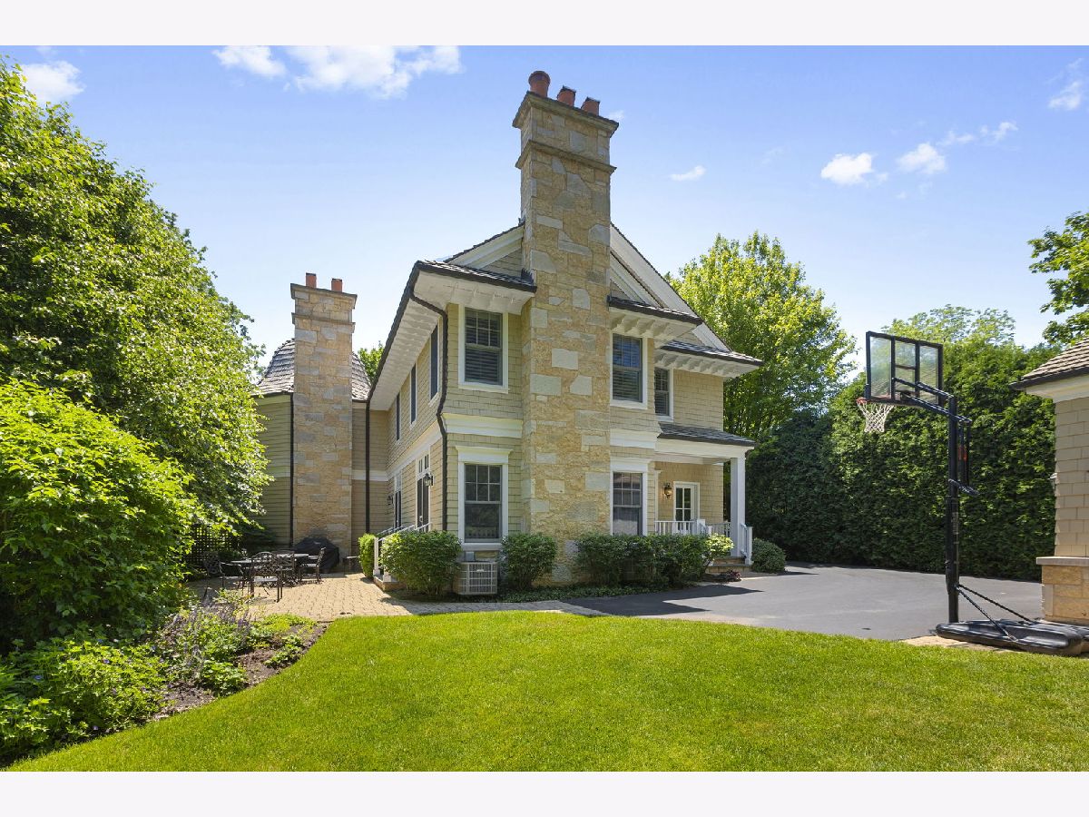Crafted in 2006 by the Goebeler Company and designed by Lake Forest Landmark Development, this New England shingle-style home carries the character of a historic property with modern amenities. Inside, timeless architectural details anchor the interiors including 10-ft. ceilings, wainscoting, crown molding, tray ceilings, intricate woodwork, hardwood floors, and built-ins. A welcoming front porch introduces you to a spacious formal entry with European closets. To the right, an octagon-shaped living room features a gas fireplace and built in cabinet for games or a dry bar. To the left, a large dining room with Cole & Sons wallpaper and beaded chandelier set the scene. Pass through to the gourmet all white kitchen with Subzero and Thermador appliances, farmhouse sink, quartz countertops, a large kitchen island, and space for a breakfast table. The kitchen leads to a sunny family room, and both rooms feature French doors to the patio with gas Weber grill. A mudroom with beadboard, slate tile and floor to ceiling cabinetry includes convenient access to the driveway and side yard, a powder bath, and laundry room. The upstairs primary suite doubles as a sanctuary with a fireplace, large walk-in closet, and a spa-inspired bath with heated floors, walk-in shower, dual vanities, and soaking tub, all meant to evoke calm. Three additional bedrooms and two baths are upstairs. The finished basement adds 1,602 square feet and includes a large rec space, flexible office or den with a fireplace, exercise room, plus a private fifth bedroom with full bath and steam shower-perfect for guests, in-laws, or au pair. Modern systems include a standby generator, two-system HVAC, insulated 2-car detached garage. A picture-perfect setting in East Lake Bluff, only a few blocks from downtown, the Metra, and Lake Michigan. Move-in ready and enjoy it from day one.