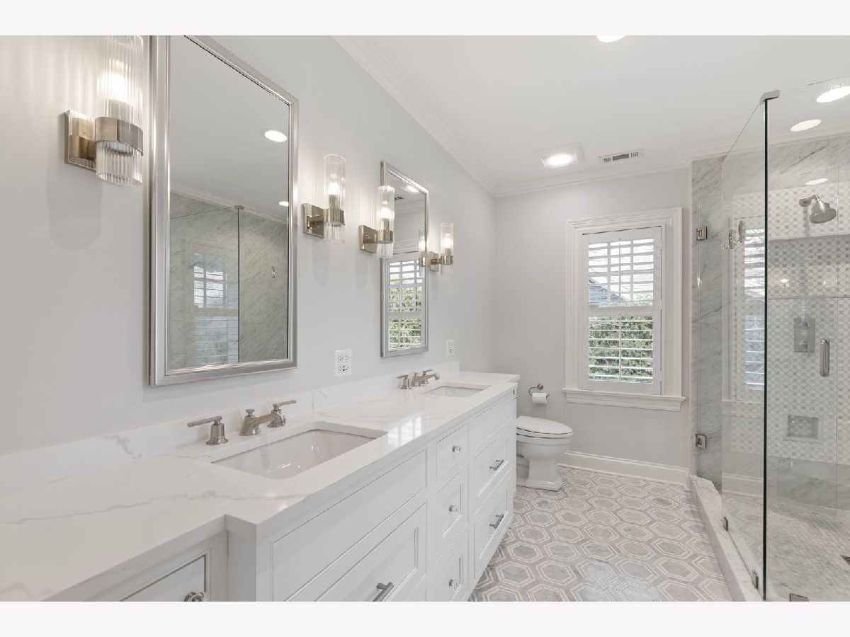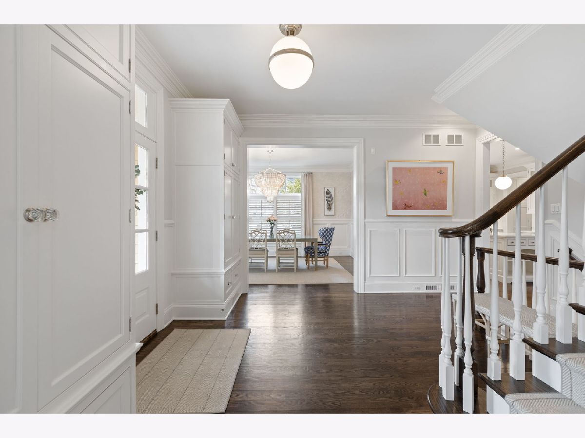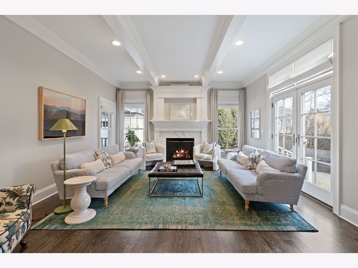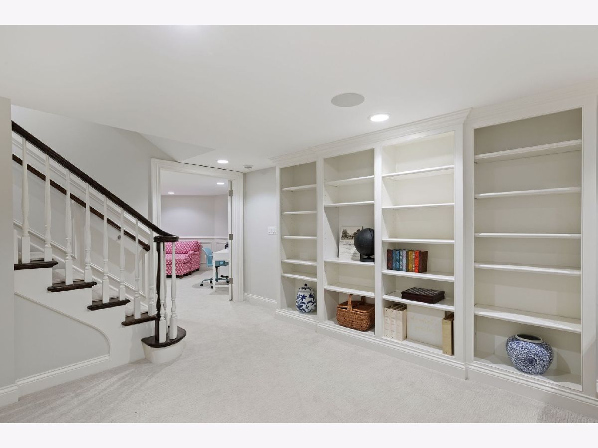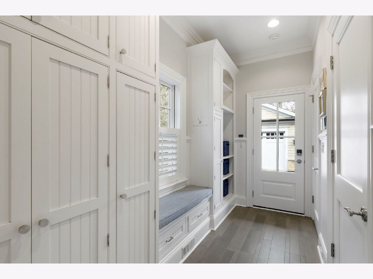 Crafted in 2006 by the Goebeler Company and designed by Lake Forest Landmark Development, this New England shingle-style home carries the character of a historic property with modern amenities. Inside, timeless architectural details anchor the interiors including 10-ft. ceilings, wainscoting, crown molding, tray ceilings, intricate woodwork, hardwood floors, and built-ins. A welcoming front porch introduces you to a spacious formal entry with European closets. To the right, an octagon-shaped living room features a gas fireplace and built in cabinet for games or a dry bar. To the left, a large dining room with Cole & Sons wallpaper and beaded chandelier set the scene. Pass through to the gourmet all white kitchen with Subzero and Thermador appliances, farmhouse sink, quartz countertops, a large kitchen island, and space for a breakfast table. The kitchen leads to a sunny family room, and both rooms feature French doors to the patio with gas Weber grill. A mudroom with beadboard, slate tile and floor to ceiling cabinetry includes convenient access to the driveway and side yard, a powder bath, and laundry room. The upstairs primary suite doubles as a sanctuary with a fireplace, large walk-in closet, and a spa-inspired bath with heated floors, walk-in shower, dual vanities, and soaking tub, all meant to evoke calm. Three additional bedrooms and two baths are upstairs. The finished basement adds 1,602 square feet and includes a large rec space, flexible office or den with a fireplace, exercise room, plus a private fifth bedroom with full bath and steam shower-perfect for guests, in-laws, or au pair. Modern systems include a standby generator, two-system HVAC, insulated 2-car detached garage. A picture-perfect setting in East Lake Bluff, only a few blocks from downtown, the Metra, and Lake Michigan. Move-in ready and enjoy it from day one.