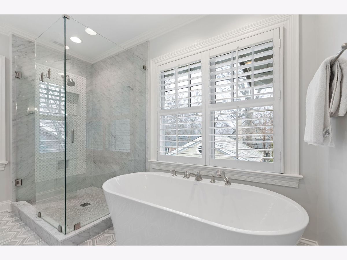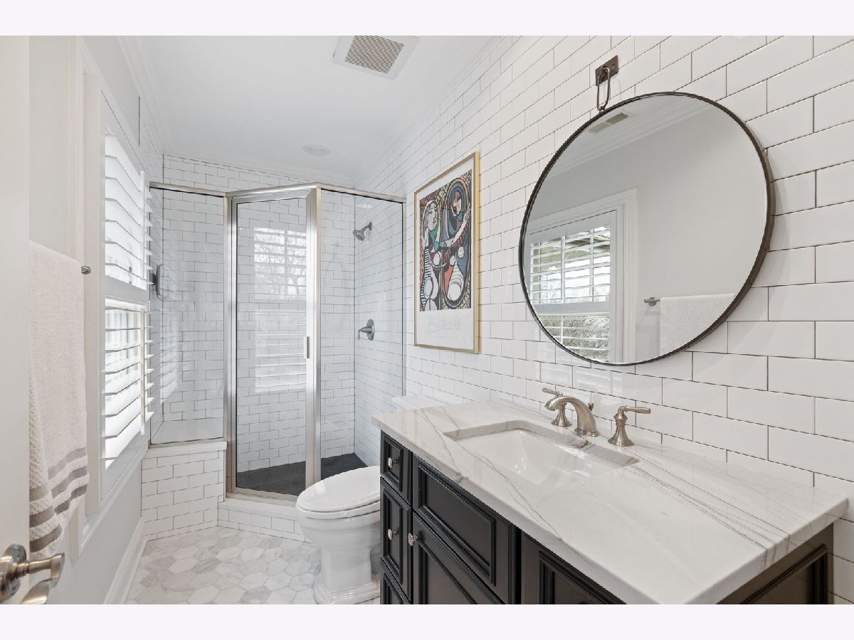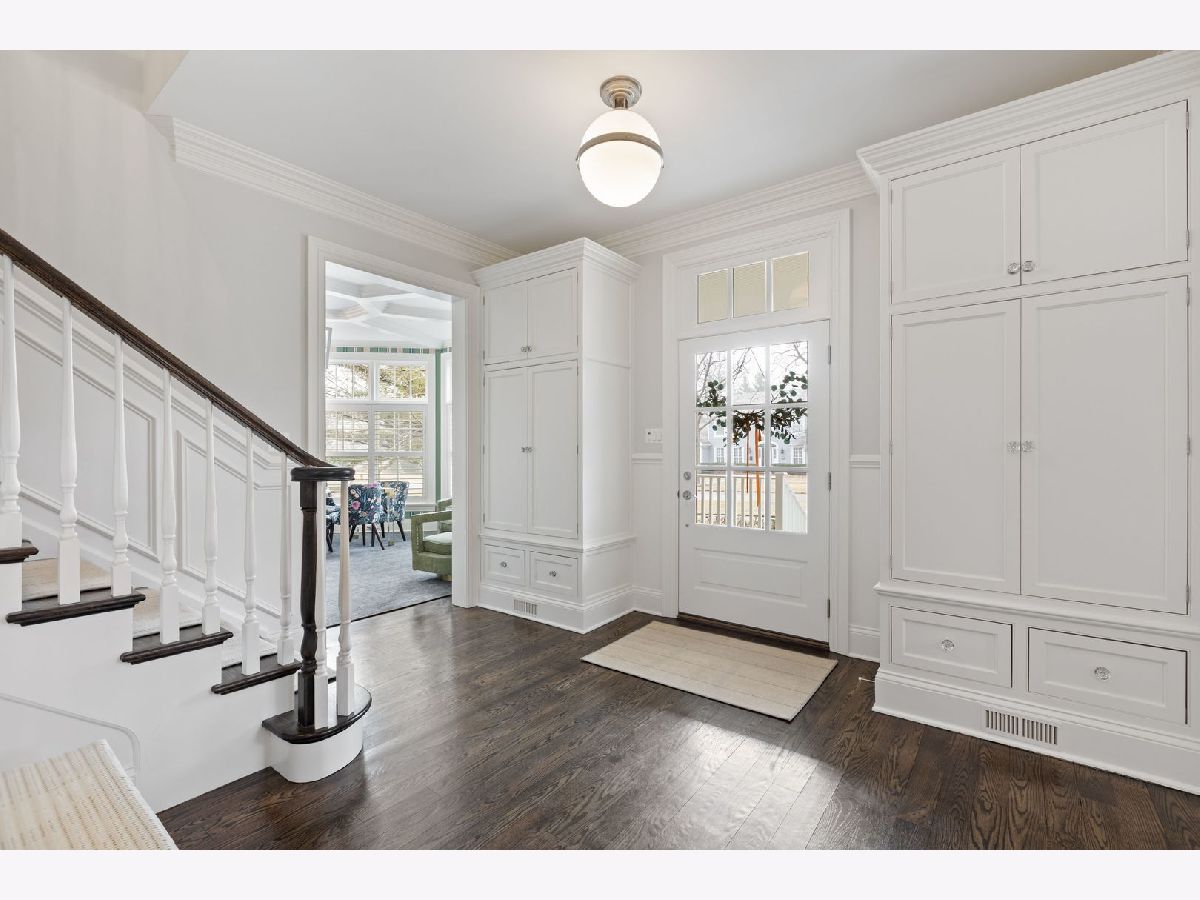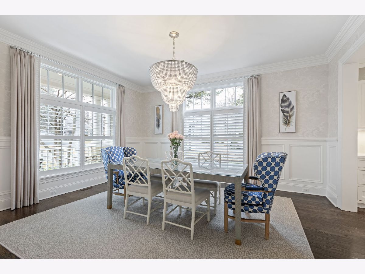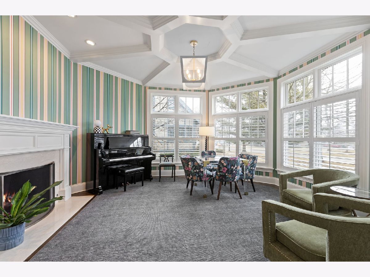 Crafted in 2006 by the Goebeler Company and designed by Lake Forest Landmark Development, this New England shingle-style home carries the character of a historic property with modern amenities. Inside, timeless architectural details anchor the interiors including 10-ft. ceilings, wainscoting, crown molding, tray ceilings, intricate woodwork, hardwood floors, and built-ins. A welcoming front porch introduces you to a spacious formal entry with European closets. To the right, an octagon-shaped living room features a gas fireplace and built in cabinet for games or a dry bar. To the left, a large dining room with Cole & Sons wallpaper and beaded chandelier set the scene. Pass through to the gourmet all white kitchen with Subzero and Thermador appliances, farmhouse sink, quartz countertops, a large kitchen island, and space for a breakfast table. The kitchen leads to a sunny family room, and both rooms feature French doors to the patio with gas Weber grill. A mudroom with beadboard, slate tile and floor to ceiling cabinetry includes convenient access to the driveway and side yard, a powder bath, and laundry room. The upstairs primary suite doubles as a sanctuary with a fireplace, large walk-in closet, and a spa-inspired bath with heated floors, walk-in shower, dual vanities, and soaking tub, all meant to evoke calm. Three additional bedrooms and two baths are upstairs. The finished basement adds 1,602 square feet and includes a large rec space, flexible office or den with a fireplace, exercise room, plus a private fifth bedroom with full bath and steam shower-perfect for guests, in-laws, or au pair. Modern systems include a standby generator, two-system HVAC, insulated 2-car detached garage. A picture-perfect setting in East Lake Bluff, only a few blocks from downtown, the Metra, and Lake Michigan. Move-in ready and enjoy it from day one.