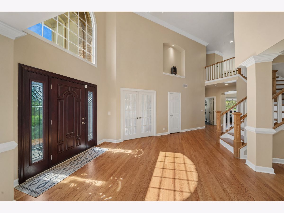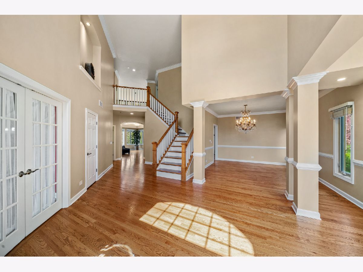 Your forever home is here! This handsome property is located in the prestigious golf community of Stonebridge. The premium lot is open on two sides. The front of the property lies directly across from a playground. Serene views of the idyllic pond are on the north side of the home. The captivating architecture greets you when you enter the home. Inside, oversized windows flood the interior with natural light. Warm hardwood floors run throughout the first floor. Crisp white trim, crown molding and chair rail accent the neutral wall color. The family room is a sight to behold with a two story ceiling. Large floor to ceiling windows on two sides allow nature to come right in. A gas fireplace is perfect for cold winter evenings. The modern kitchen has white cabinets, sleek granite, stainless steel appliances and a custom tile backsplash. The patio door allows access to the private backyard and expansive deck. The breakfast room is perfect for morning coffee. The first floor living space also includes a living room with a dramatic Palladian window, separate dining room and den with French doors for privacy. Upstairs, the private master suite is accented by a coffered ceiling. The large bath has a dual sinks, whirlpool tub and separate shower and water closet for added privacy. The double walk in closets provides ample storage. The hall bath has a dual trough sink separate water closet and large skylight that floods the space with light. The generous sized linen closet provides much needed storage. There are three additional well proportioned bedrooms, one with a walk in closet!. The full basement awaits your refinishing touches. This home is the perfect blend, of style, interior finishes and location. Located in sought after Naperville 204 schools. Close proximity to shopping and transportation. Meticulously maintained and neat as a pin. This property will not disappoint. Updates: 2025-Exterior repainted, new refrigerator 2023-All new door hardware, single garage door, garage access door, seven casement windows replaced 2022-All new interior paint, all new light switches and outlets, new LED can lights 2020-New double garage door