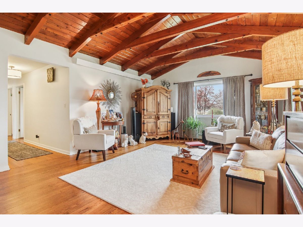 Charming Ranch home blends warmth and character, offering an inviting lifestyle in a highly sought-after Northfield location. From the moment you enter, the home captivates with a stunning vaulted wood ceiling in the living room, creating a dramatic yet welcoming focal point filled with natural light. Natural hardwood flooring flows throughout the family room, hallway, and two bedrooms, enhancing the home's seamless and sophisticated feel. The residence offers two full bathrooms, including a convenient Jack-and-Jill layout, designed for both functionality and privacy. The kitchen showcases Italian tile flooring, stainless steel appliances, cherry wood cabinetry, and granite countertops, complemented by recessed lighting and an abundance of windows that fill the space with natural light-perfect for both everyday living and entertaining. The unfinished basement offers exceptional potential, featuring a half bath and dedicated laundry area, providing the opportunity to expand and customize to your needs. Step outside to enjoy a fully fenced yard and a welcoming front patio, ideal for relaxing or entertaining. Timeless charm and an unbeatable Northfield location-this is a home that truly stands out.