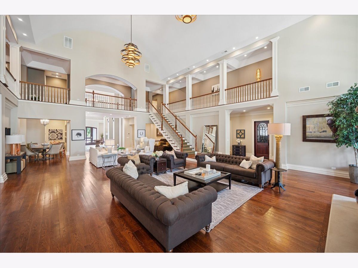 Tucked behind a private drive on one of Northbrook's most coveted streets, The Bridlewood Estate is a statement of timeless luxury and architectural mastery. Sitting on 2.2 acres of manicured grounds, this residence redefines what it means to live grandly on the North Shore. The stone facade and paver motor court create a magnificent arrival, while inside, a soaring 23-foot great room with floor-to-ceiling windows sets the tone-airy, dramatic, and unforgettable. Every detail was crafted to blend elegance with endurance: thick masonry walls, concrete subfloors, and commercial-grade systems ensure this home is built to last for generations. Designed for both grand entertaining and comfortable living, the main level flows effortlessly from one extraordinary space to the next. The chef's kitchen dazzles with custom cabinetry, a massive center island, stone countertops, and professional-grade appliances. A sun-filled breakfast room opens to the yard, while the family room-with a full wet bar-invites relaxed gatherings. A richly appointed office, vaulted playroom, and impressive home theater elevate daily living. For ultimate convenience, a private elevator services all three levels. Upstairs, the primary suite is a serene retreat with its own sitting area, double-sided fireplace, and private terrace overlooking the estate's lush grounds. The spa-inspired bath offers a ceiling-fill soaking tub, a steam shower with multiple heads and digital controls, and a walk-in closet that feels more like a boutique. Five additional bedroom suites, a loft lounge with a large deck, and a second laundry room complete the upper level. Outdoor living is nothing short of resort-style. Multiple terraces and patios extend to a screened porch with a fireplace, and an extraordinary entertaining pavilion anchors the backyard-complete with an outdoor kitchen, soaring wood-beam canopy, and dramatic stone fireplace. Surrounded by mature landscaping and complete privacy, this is the kind of setting that feels worlds away, yet is just minutes from downtown Northbrook and Glenbrook North High School. Equal parts craftsmanship, comfort, and sophistication, The Bridlewood Estate is more than a home-it's a private sanctuary designed to inspire awe at every turn.