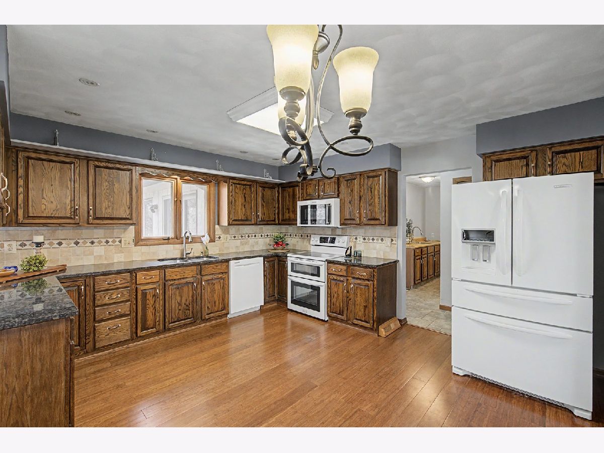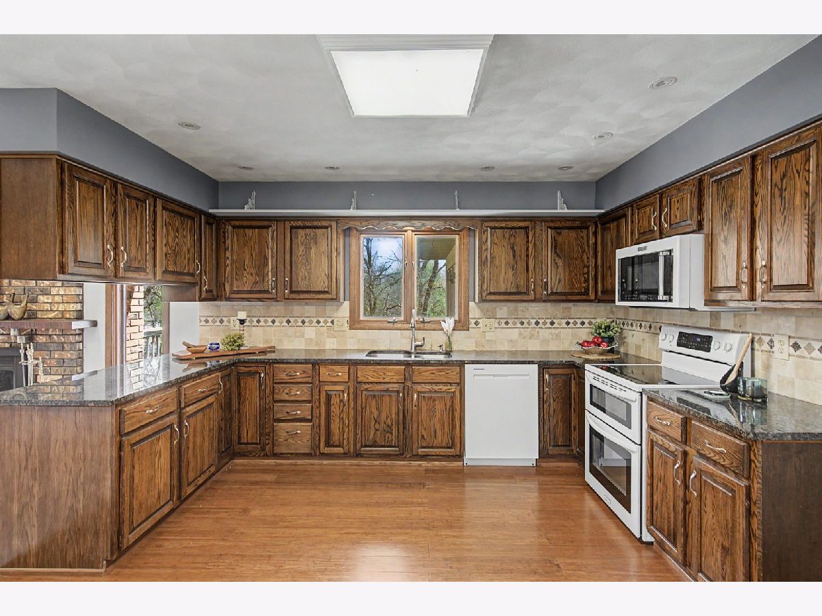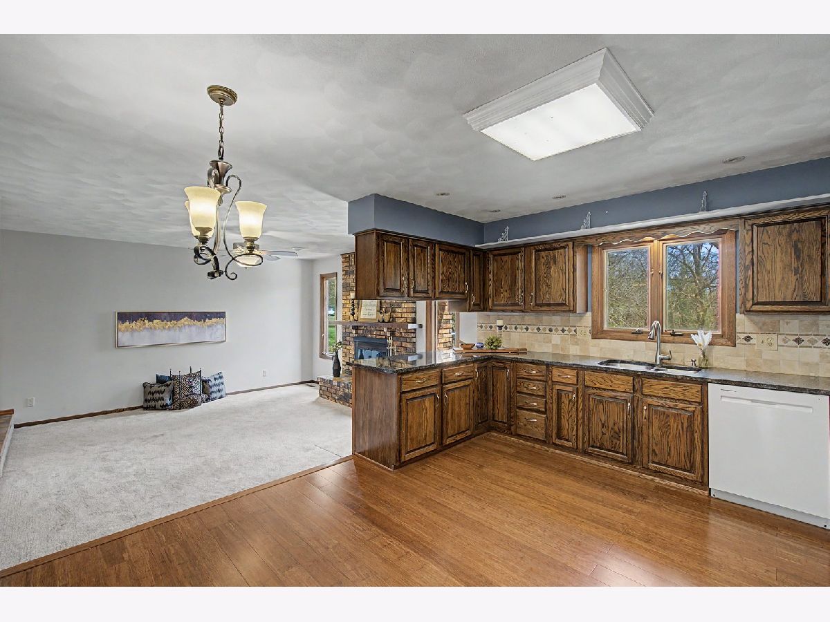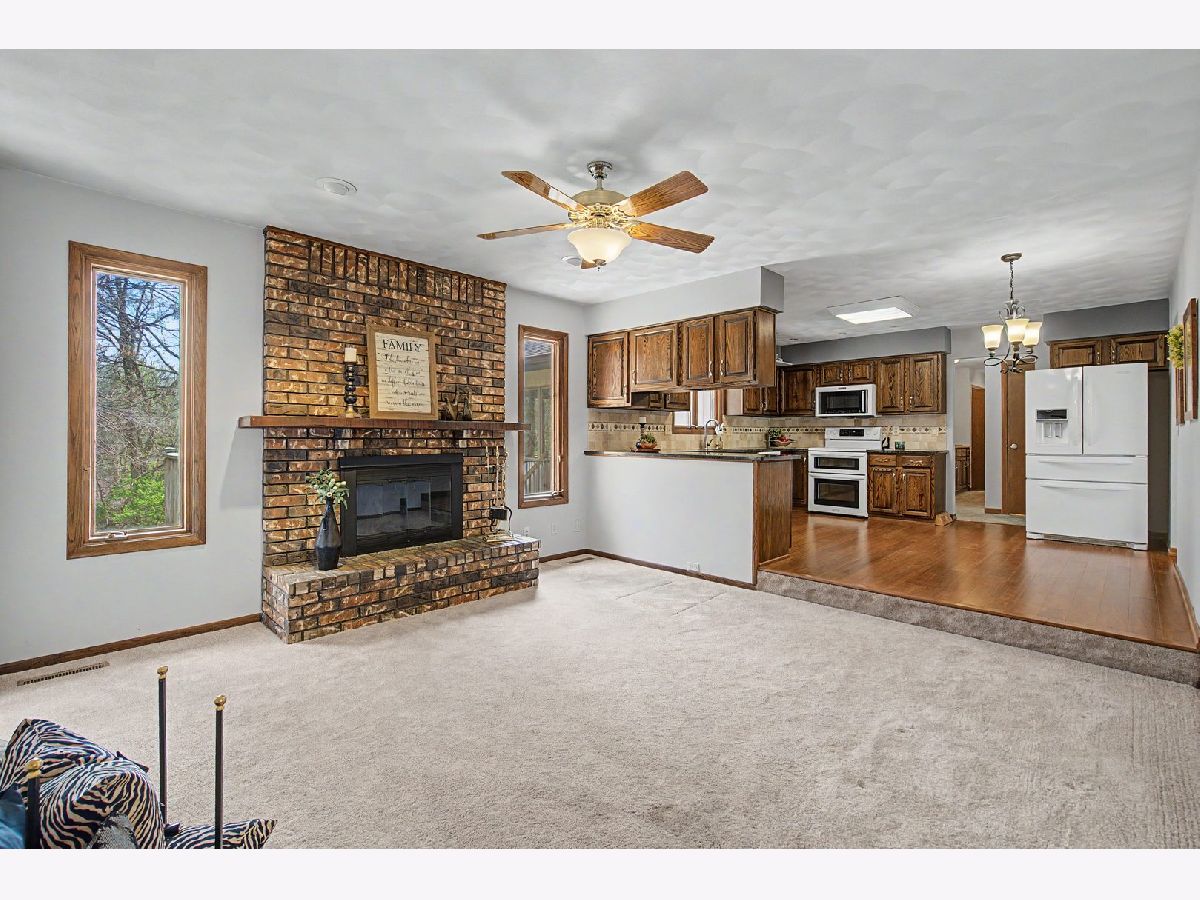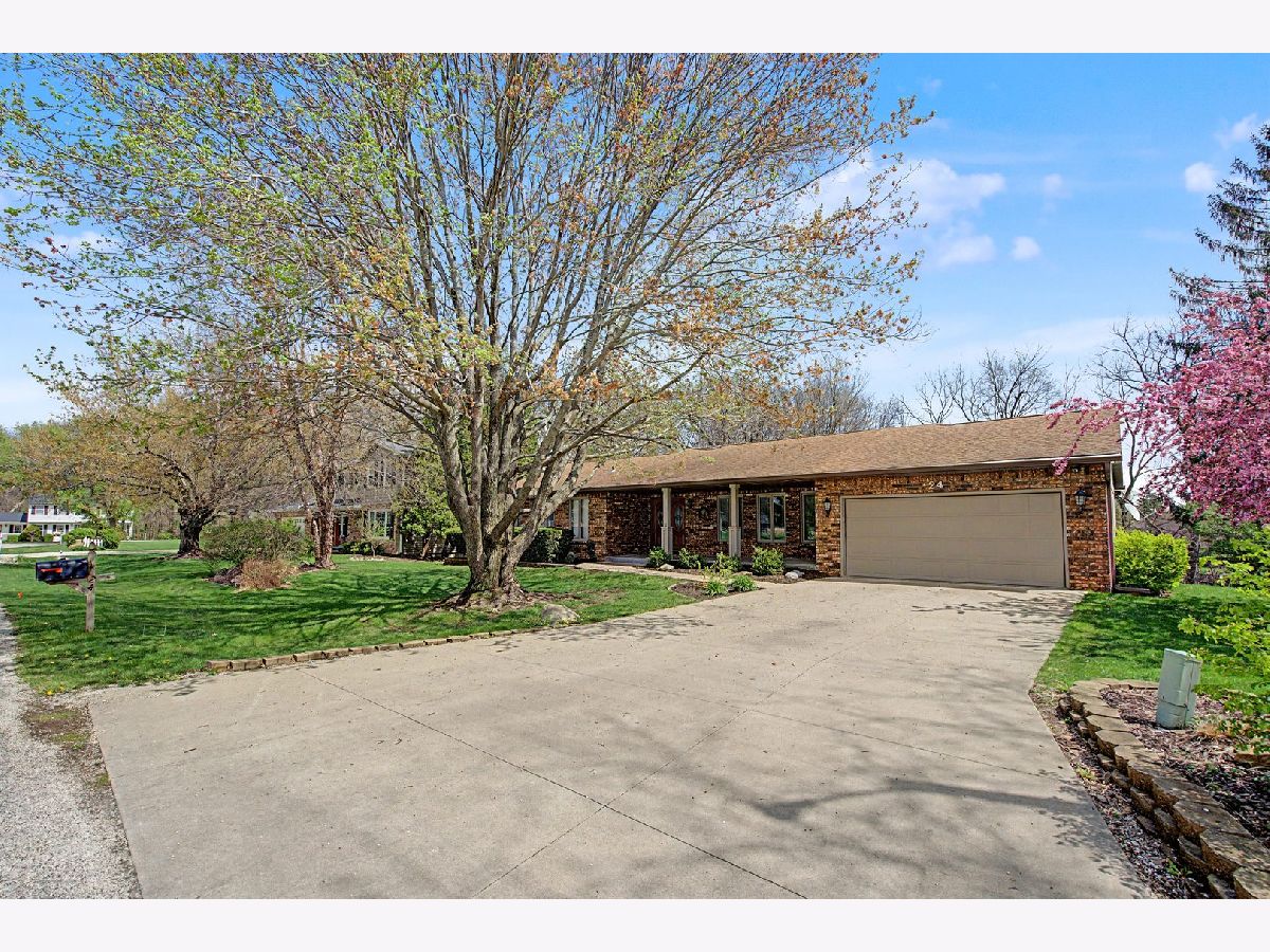 Nestled on a quiet cul-de-sac, this well-maintained brick and cedar ranch sits on a beautiful .41- acre lot with a wooded ravine backdrop, offering both privacy and scenic views. Inside, you'll find a spacious and inviting layout featuring two fireplaces and a large great room addition built within the last decade, complete with built-in cabinetry and a wet sink-perfect for entertaining. Room addition cooling and heating is the picture wall mount above the wet sink. Per seller's family, it works amazing! The kitchen boasts granite countertops and opens to the family room. Hardwood bamboo flooring in Kitchen and front LR/DR combo. A designer recommended using the family room for your formal dining room and use the front room for your family room.... either way, they both work! Expansive windows throughout the home bring in natural light and showcase the stunning surroundings. Step outside to the attached 19x19 deck to extend your gatherings into the outdoors. The partially finished walk-out basement includes a second fireplace in a partially finished rec area connected to a utility/workroom with French doors leading to the backyard. The primary bedroom features a walk-in tiled shower, while the main-level laundry room with extra counter space and a sink. All appliances staying with the home, a community well (fee in agent remarks), furnace and A/C (2010), roof (2016), and a new water heater (October 2024). The water softener is rented through Culligan. This solid, thoughtfully cared-for home offers comfort, space, and a truly beautiful setting-ready for its next owner to enjoy. Buyer's and Buyer's agent to verify MLS information.