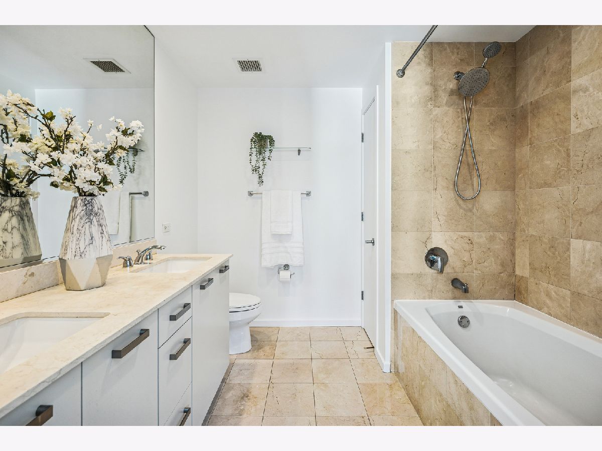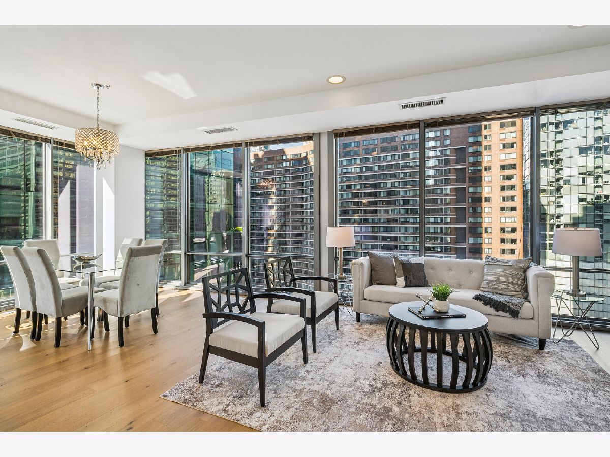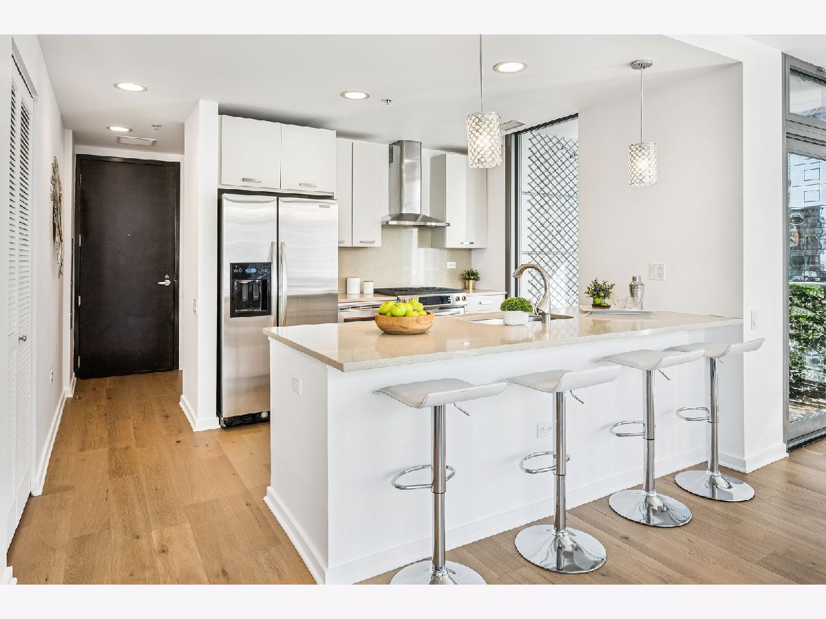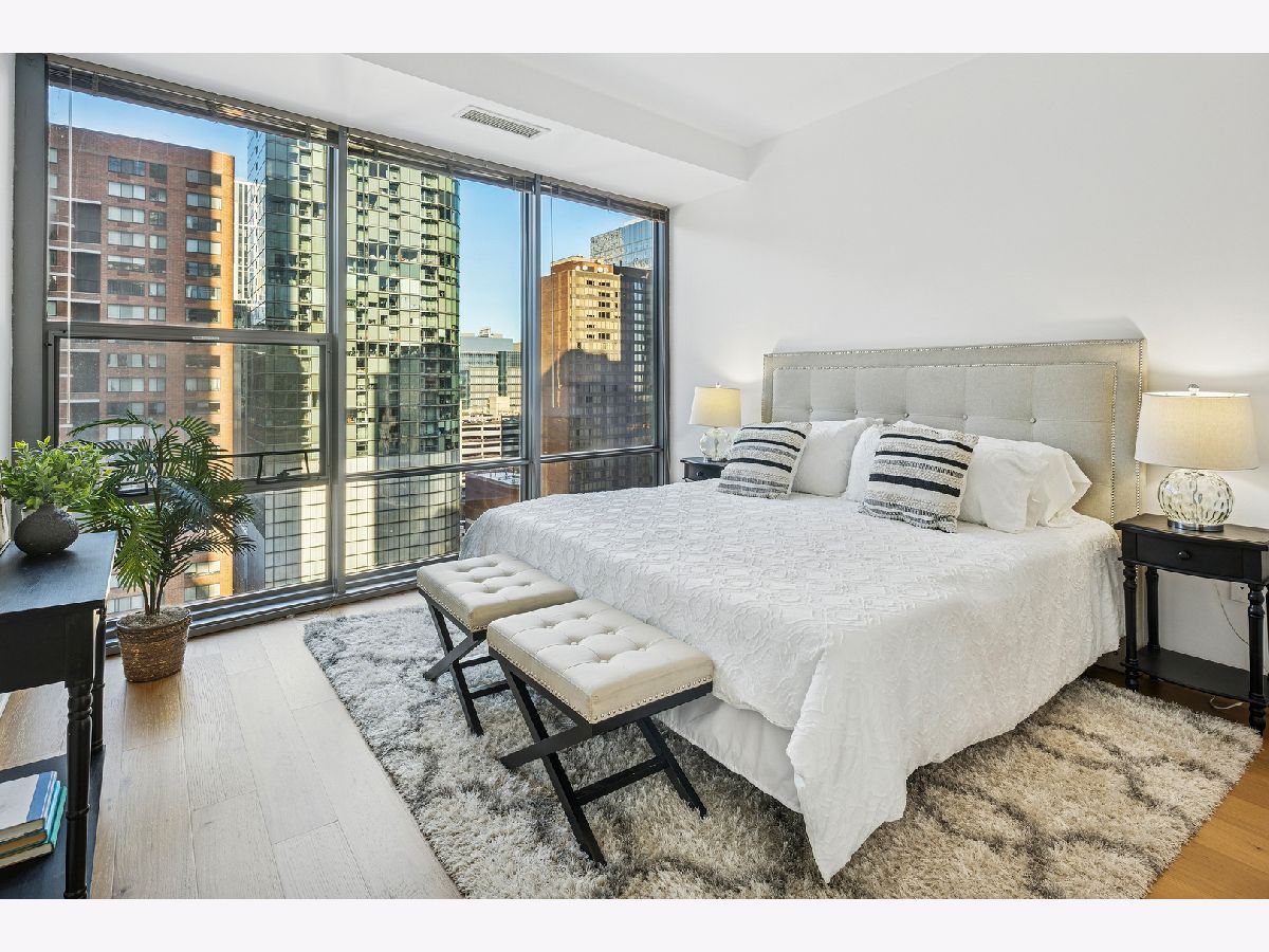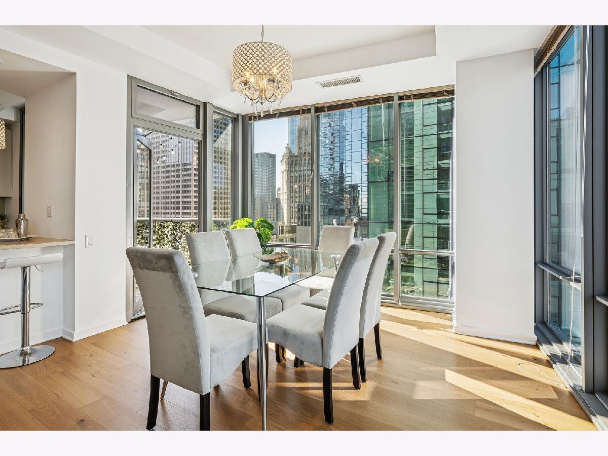 An exceptional CORNER Streeterville residence offering style, light, and an unbeatable downtown location. This thoughtfully designed one-bedroom, one-and-a-half bath home spans approximately 1,025SF and is flooded with natural light from striking floor-to-ceiling NORTH-facing windows. Brand-new sleek wide-plank engineered hardwood flooring flows seamlessly throughout the open living spaces, creating a warm, refined aesthetic. The sleek, modern kitchen is both beautiful and functional, featuring quartz countertops, a full-height backsplash, oversized undermount sink, gas range with hood, and newly refreshed CREAM cabinetry-perfect for everyday living and entertaining. The spacious bedroom serves as a true retreat with a large walk-in closet, while a dedicated work-from-home niche with built-in shelving and data connectivity adds flexibility and convenience to the main living space. Additional highlights include in-unit washer/dryer and a well-appointed powder room ideal for guests and rare in a one bed. Step outside to your private west-facing balcony and take in iconic city views-an ideal backdrop for sunset cityscapes. Located in a full-amenity building with deeded parking available for an extra $30k. This home delivers elevated urban living in one of Chicago's most desirable and highly walkable neighborhoods. Building amenities include a 24-hour doorman, state-of-the-art fitness center, outdoor pool and terrace, party room, movie theater, dog run, on-site management, and more. Storage locker included. Just steps from Navy Pier, Lake Michigan, the Riverwalk, boat slips, coffee shops, Michigan Avenue shopping, transit and world-class dining - this condo offers the very best of Chicago living. Now showing.