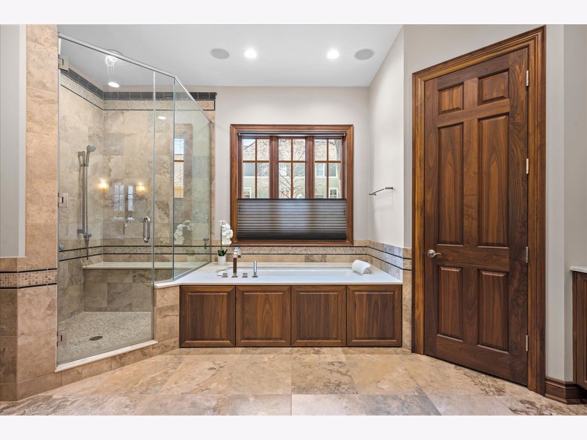 Stunning newer construction home in an unbeatable in-town location, just seconds from shops, dining, and everything you need. This beautifully designed residence features a sought-after first-floor primary suite complete with its own cozy fireplace. Exceptional curb appeal shines with a welcoming covered front porch finished in bluestone and limestone, leading into a dramatic two-story foyer. Inside, you'll find exquisite custom millwork, rich hardwood flooring, and abundant natural light from the home's ideal south-facing exposure. A private library/office offers the perfect space for working from home or relaxing with a book. The thoughtfully designed floor plan is ideal for both everyday living and entertaining, with a formal dining room that flows seamlessly into the inviting living room with fireplace, and a wet bar/butler's pantry for effortless hosting. The chef's kitchen is a true showstopper, featuring professional-grade appliances including a Wolf range/oven, oversized Sub-Zero refrigerator, stunning solid walnut cabinetry, and a spacious walk-in pantry. The adjoining breakfast area opens to a covered bluestone patio overlooking the beautifully landscaped yard with fire pit, play area, and plenty of room for outdoor entertaining. A convenient first-floor laundry room completes the main level. Upstairs, you'll find generously sized bedrooms, including one with an en-suite bath and ample closets. Two additional bedrooms are connected by a Jack-and-Jill bath, along with a recently finished bonus room accessed by a private staircase-ideal as a guest suite, in-law arrangement, or flex space. The finished lower level offers exceptional additional living space, including a large recreation area, exercise room or fifth bedroom, a full bath with steam shower, and a wine cellar. Additional highlights include radiant heat throughout the basement and garage, Marvin windows and an oversized three-car garage. Meticulously maintained and thoughtfully updated, this exceptional home truly has it all.