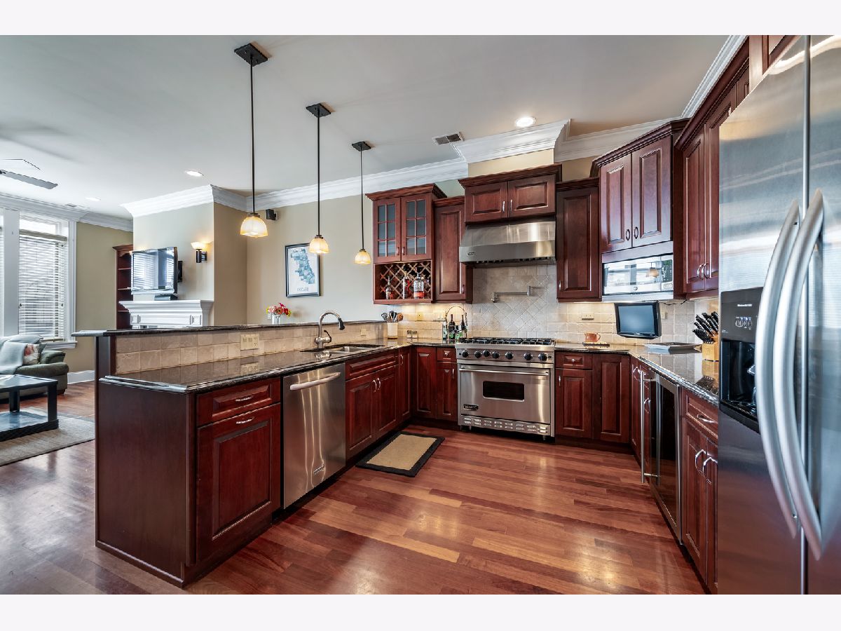 Welcome home to your perfect city retreat! Nestled in an intimate elevator building, this beautifully maintained Large 2-bedroom, 2-bathroom home with a balcony and 1-car garage effortlessly combines timeless elegance with modern comfort. Lightly used as an in-town retreat. Step inside to an open, south-facing, light-filled space featuring rich hardwood floors, 10-foot ceilings, a custom kitchen, and a marble fireplace in the living room. The chef's kitchen is a dream - complete with wood cabinetry, S/S appliances including a Viking range/oven & hood, oversized breakfast bar, wine refrigerator, generous counter space, pantry, and everything you need to entertain or whip up your favorite meal. The spacious primary bedroom has a spa bath with heated floors, double sinks, and a luxurious steam shower with body sprays. Enjoy morning coffee or evening wine on your private balcony, or head up to the expansive rooftop deck for skyline views. Good-sized 2nd bedroom with a large closet. Other features include surround sound throughout, abundant closets (plus a pantry), a full-size washer and dryer, and even three mounted TVs. The building itself is intimate and impeccably cared for, offering an elevator, garage parking, and low monthly assessments. Whether you're looking for your first home or a sophisticated in-town residence, this one truly has it all. Enjoy the ultimate Lincoln Park lifestyle! Just a short stroll to the Fullerton L station, Wrightwood Park, Lakeshore Athletic Club, Webster Place, Starbucks, and more-everything you need is right outside your door. Easy access to the highway, and this is in the Oscar Mayer School District! New roof coming soon. Can be furnished!