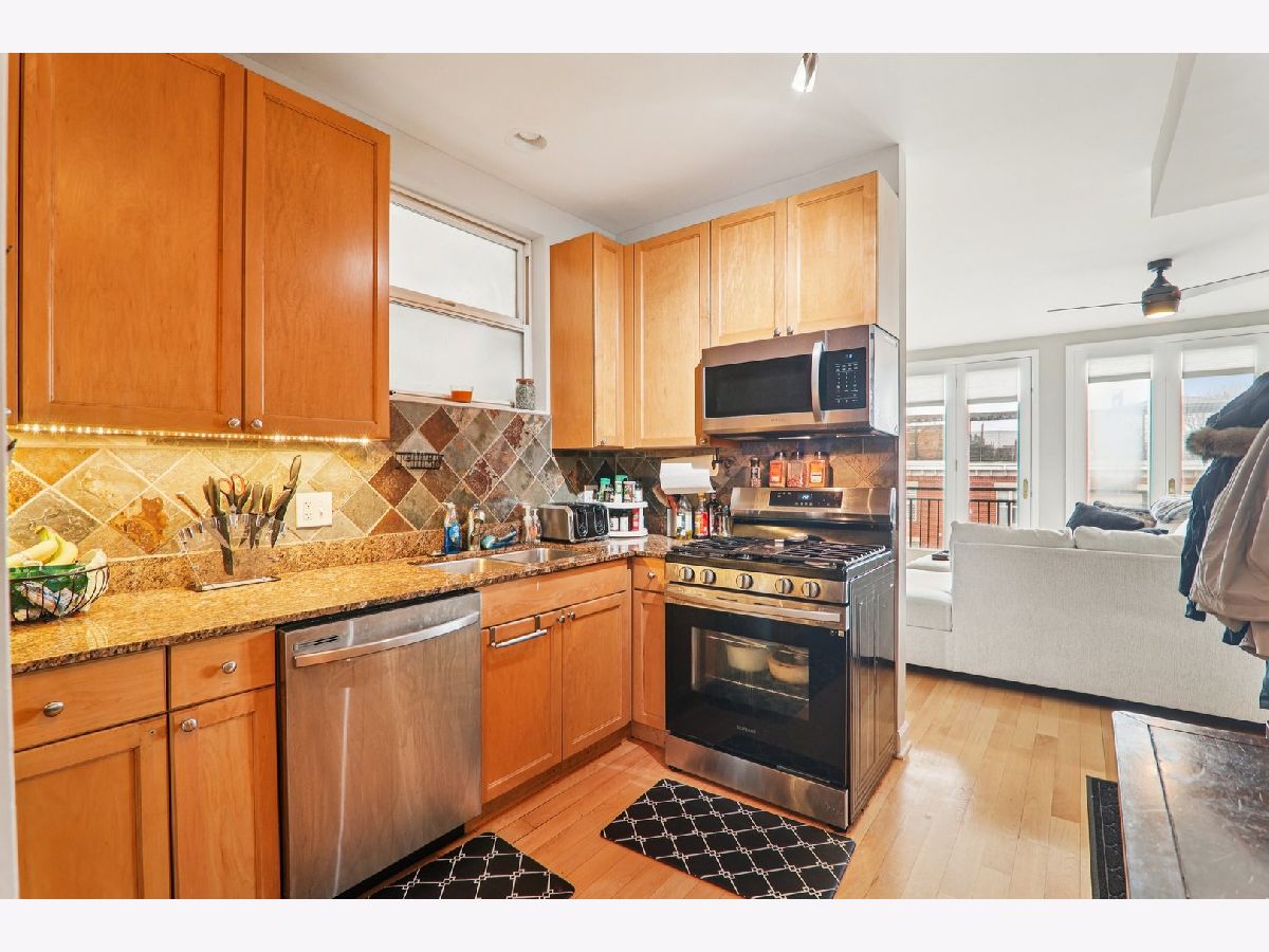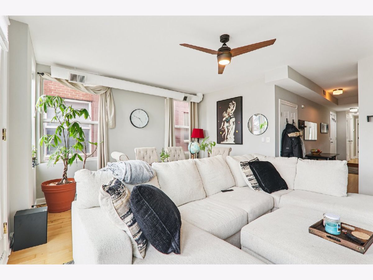 Beautifully updated 2-bedroom, 2-bath condo offering approximately 1,050 sq ft of modern living space in a prime Chicago location. This open-concept home features gleaming hardwood floors throughout, a spacious and functional layout, and abundant natural light. The contemporary kitchen is equipped with stainless steel appliances and flows seamlessly into the living and dining areas-perfect for entertaining. Both bedrooms are generously sized, with ample closet space, and the unit includes two full, updated bathrooms. Enjoy outdoor living on your private balcony, ideal for relaxing or morning coffee. Additional highlights include a brand new washer and dryer, new ceiling fans in all rooms, and modern finishes throughout. One exterior parking space is included for added convenience. Move-in ready and thoughtfully updated-this is city living at its best!