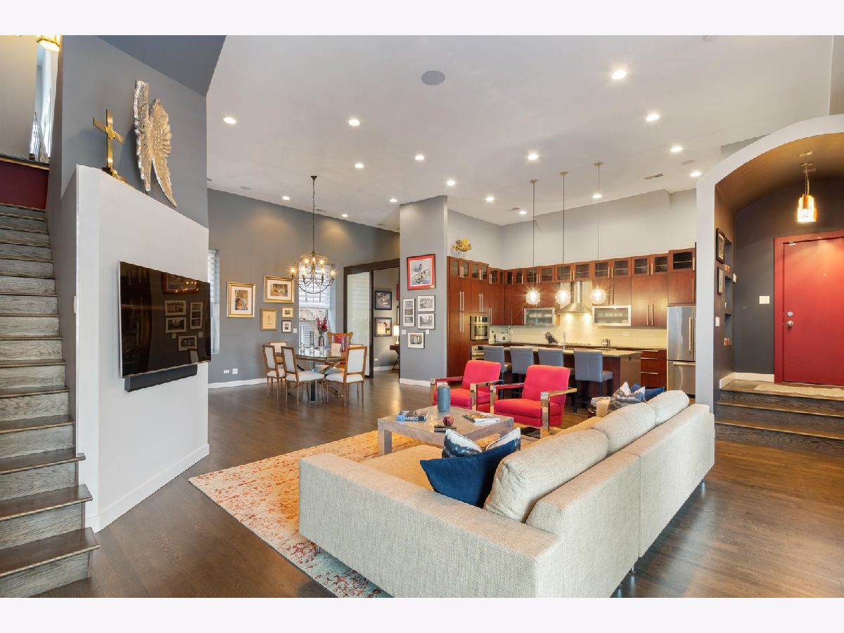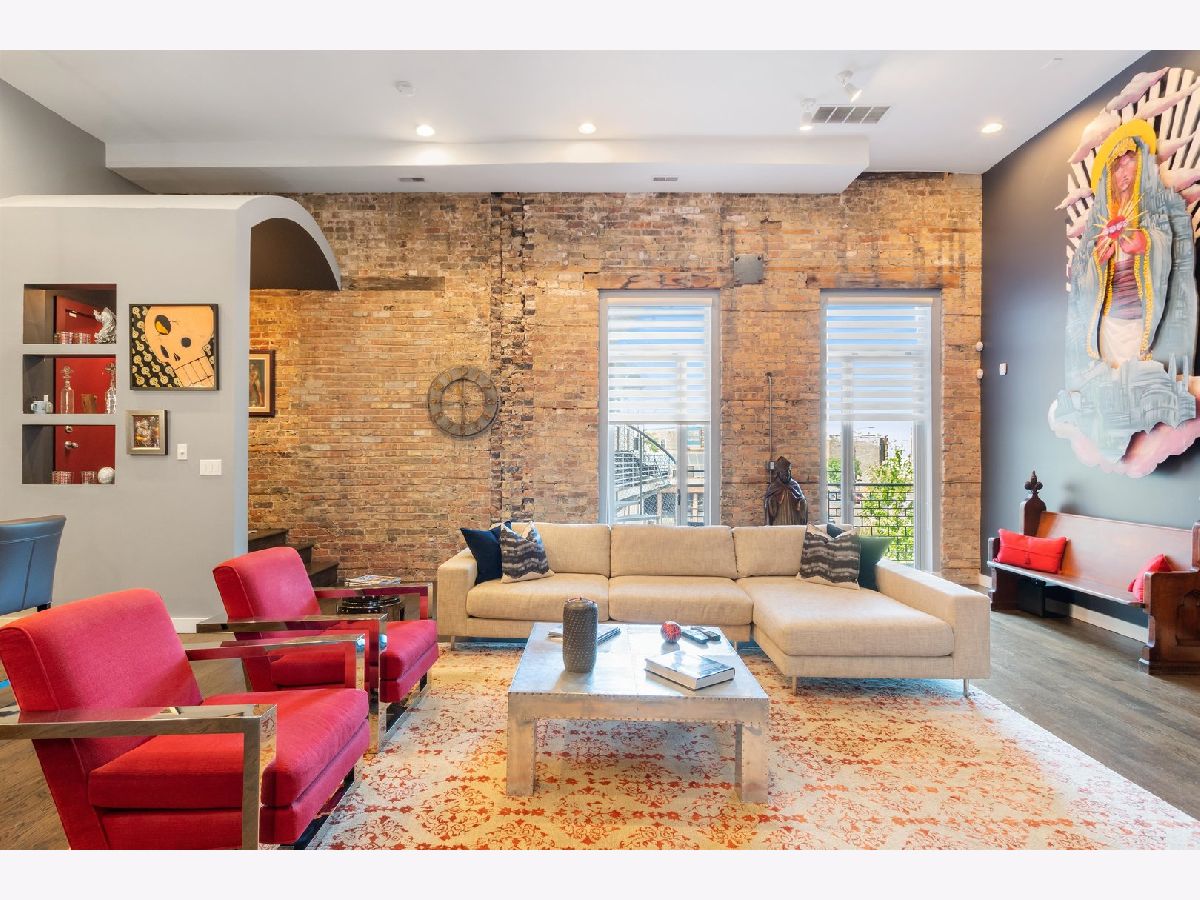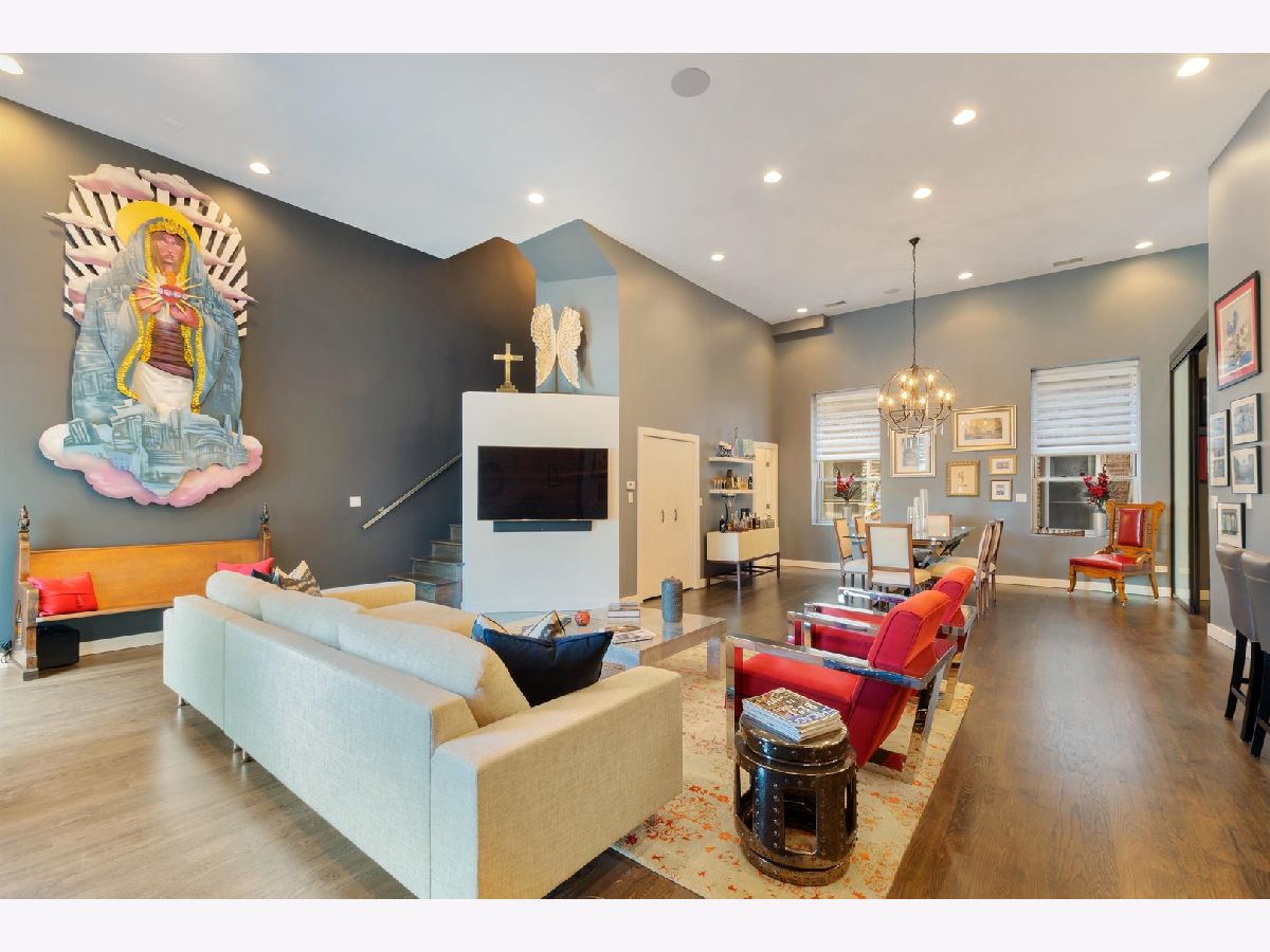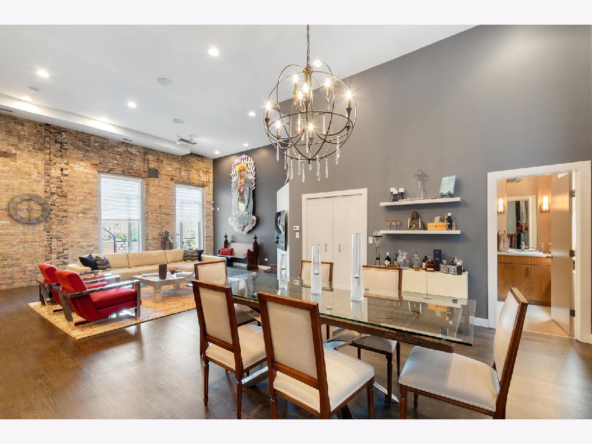 One of a kind, PENTHOUSE DUPLEX located in the Sanctuary Lofts Condominiums of Ukrainian Village. Originally a Church, rectory and school, this boutique elevator building, houses a community of 13 homes. Unit 2B includes 3 bedrooms, 3 full baths, 2 balconies and a PRIVATE 1500 SF ROOFTOP DECK, showcasing 360 views of the Chicago Skyline. Enter the home to a foyer that steps down to the gracious living opening up to oversized windows/doors, exposed brick & soaring ceiling heights. Clever reworking of walls of the previous 3rd bedroom, resulted in an open floor plan that creates a nice flow between the living room, dining room and kitchen. Tucked behind custom glass doors,is the office/3rd bedroom. The living room includes a full height wall perfect for art, and currently includes a beautiful piece from a local artist (included ). The closet behind the TV wall includes the AV equipment, that connects to ceiling speakers, and sound controls, throughout the entire home. Dining is an experience eating under a massive chandelier at a custom made dining table. The kitchen includes an abundance of cabinetry & counter space, plus an 8ft long island. A full bath includes an enclosed shower and heated floors. Access to a balcony completes this floor. The 2nd floor includes 2 enormously sized bedrooms, 2 baths, a laundry closet with side-by-side washer & dryer, and access to another balcony. The main bedroom suite is truly an oasis of space and beauty. The bedroom includes a king sized bed, full height glass door, Juliet balcony, and a professionally organized walk-in-closet. The bath entered through custom glass sliding doors, includes heated floors, a double bowl vanity, jetted tub and a water closet. An incredible shower includes a rain head at such a height, that makes it seem you are taking a shower in a waterfall! The second bedroom is also spacious and has a walk-in-closet. The 2nd bath is just as impressive, with its double bowl vanity and shower with an even higher "waterfall like" experience and hand-held sprays. Let's take the interior staircase to what your really need to see. Enter to the rooftop deck through the dog house that includes a wet bar and mini fridge. The deck includes its' own sound system, gas fire pit and gas, water & electric hookups. Step up to your own observation deck. Take a seat, relax and revel in the panoramic views of good ole' Chicago! Parking is assigned and is secured within an attached gated lot. This elevator building includes a shared workout room, an additional common rooftop deck, bike storage and a large separate storage room exclusive to the unit. Walking distance to schools. Steps to Division Street and Chicago Avenue where nightlife, restaurants and shopping is plentiful. Easy access to major expressways and public transportation (Blue Line stops at Western/Milwaukee/Armitage & Division/Ashland) . WOW... JUST WOW!