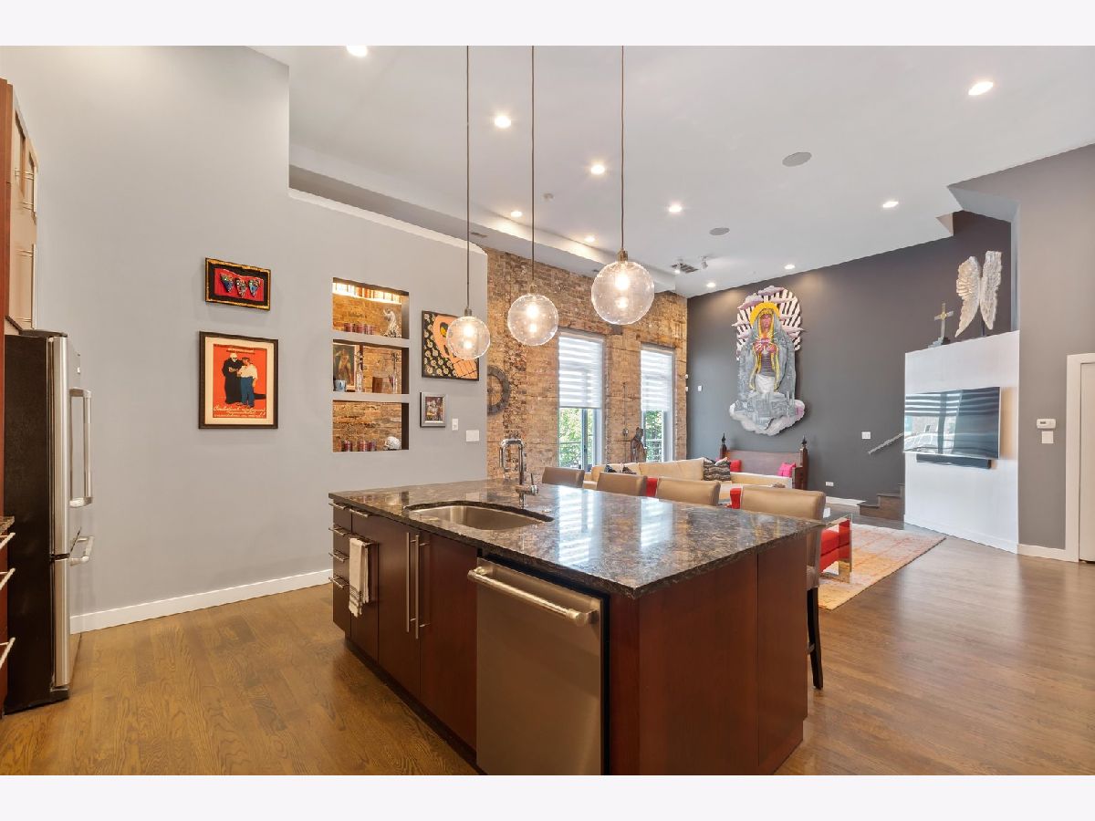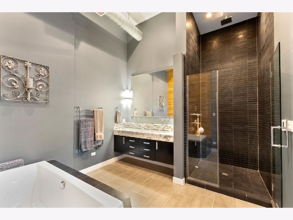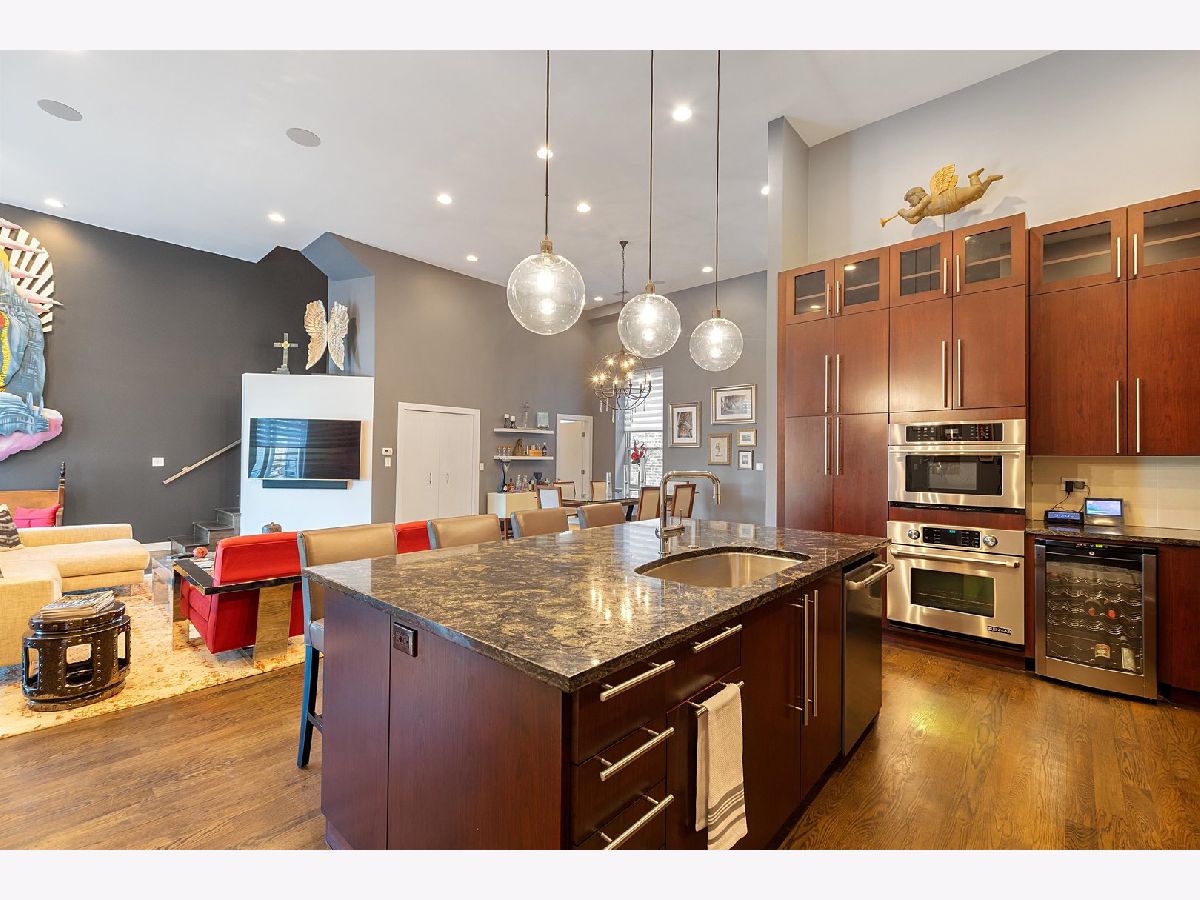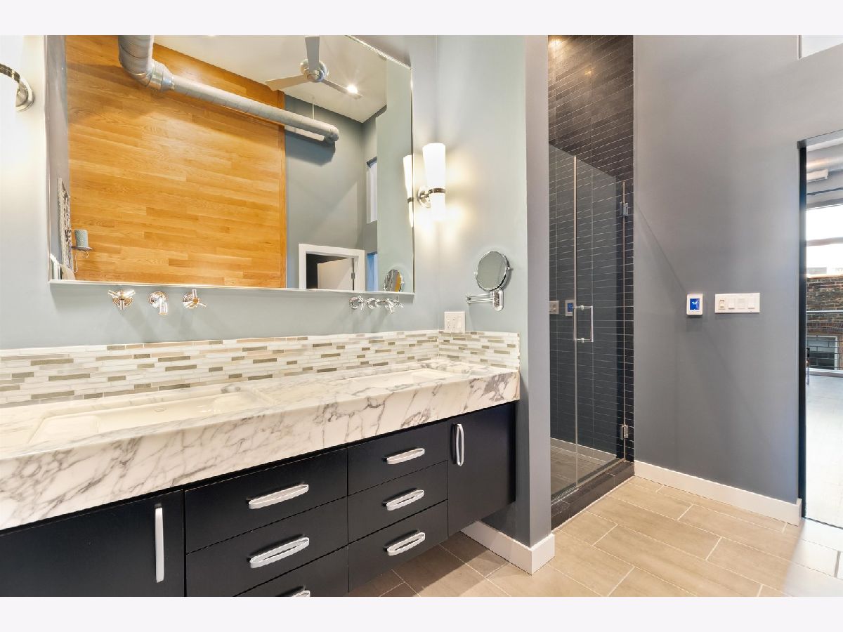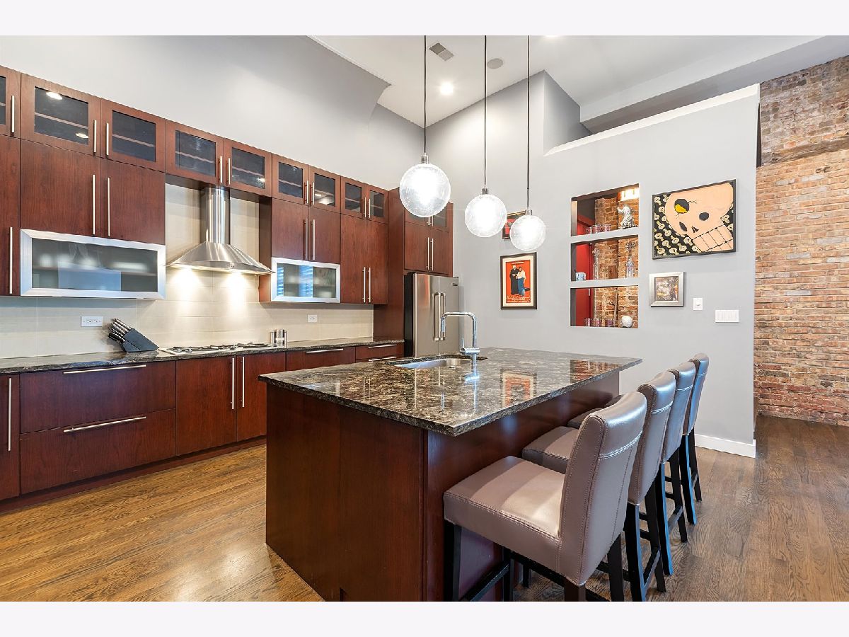 One of a kind, PENTHOUSE DUPLEX located in the Sanctuary Lofts Condominiums of Ukrainian Village. Originally a Church, rectory and school, this boutique elevator building, houses a community of 13 homes. Unit 2B includes 3 bedrooms, 3 full baths, 2 balconies and a PRIVATE 1500 SF ROOFTOP DECK, showcasing 360 views of the Chicago Skyline. Enter the home to a foyer that steps down to the gracious living opening up to oversized windows/doors, exposed brick & soaring ceiling heights. Clever reworking of walls of the previous 3rd bedroom, resulted in an open floor plan that creates a nice flow between the living room, dining room and kitchen. Tucked behind custom glass doors,is the office/3rd bedroom. The living room includes a full height wall perfect for art, and currently includes a beautiful piece from a local artist (included ). The closet behind the TV wall includes the AV equipment, that connects to ceiling speakers, and sound controls, throughout the entire home. Dining is an experience eating under a massive chandelier at a custom made dining table. The kitchen includes an abundance of cabinetry & counter space, plus an 8ft long island. A full bath includes an enclosed shower and heated floors. Access to a balcony completes this floor. The 2nd floor includes 2 enormously sized bedrooms, 2 baths, a laundry closet with side-by-side washer & dryer, and access to another balcony. The main bedroom suite is truly an oasis of space and beauty. The bedroom includes a king sized bed, full height glass door, Juliet balcony, and a professionally organized walk-in-closet. The bath entered through custom glass sliding doors, includes heated floors, a double bowl vanity, jetted tub and a water closet. An incredible shower includes a rain head at such a height, that makes it seem you are taking a shower in a waterfall! The second bedroom is also spacious and has a walk-in-closet. The 2nd bath is just as impressive, with its double bowl vanity and shower with an even higher "waterfall like" experience and hand-held sprays. Let's take the interior staircase to what your really need to see. Enter to the rooftop deck through the dog house that includes a wet bar and mini fridge. The deck includes its' own sound system, gas fire pit and gas, water & electric hookups. Step up to your own observation deck. Take a seat, relax and revel in the panoramic views of good ole' Chicago! Parking is assigned and is secured within an attached gated lot. This elevator building includes a shared workout room, an additional common rooftop deck, bike storage and a large separate storage room exclusive to the unit. Walking distance to schools. Steps to Division Street and Chicago Avenue where nightlife, restaurants and shopping is plentiful. Easy access to major expressways and public transportation (Blue Line stops at Western/Milwaukee/Armitage & Division/Ashland) . WOW... JUST WOW!